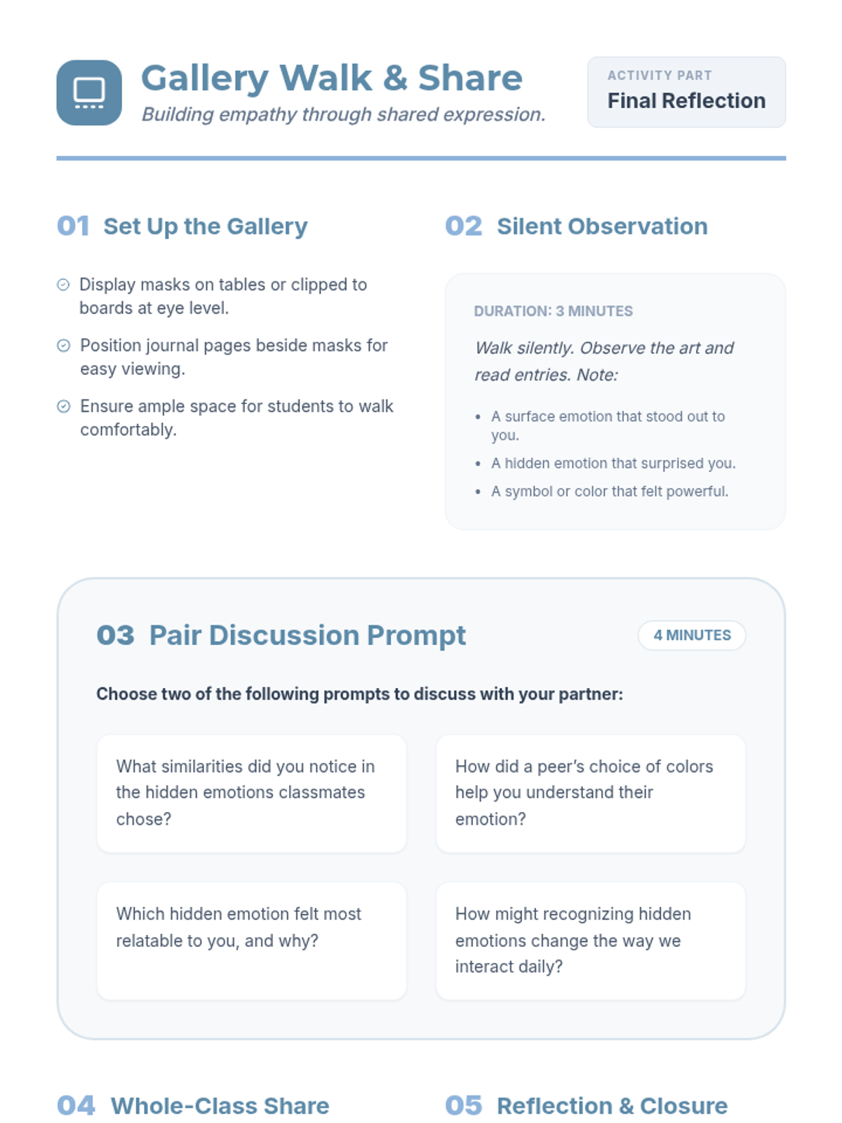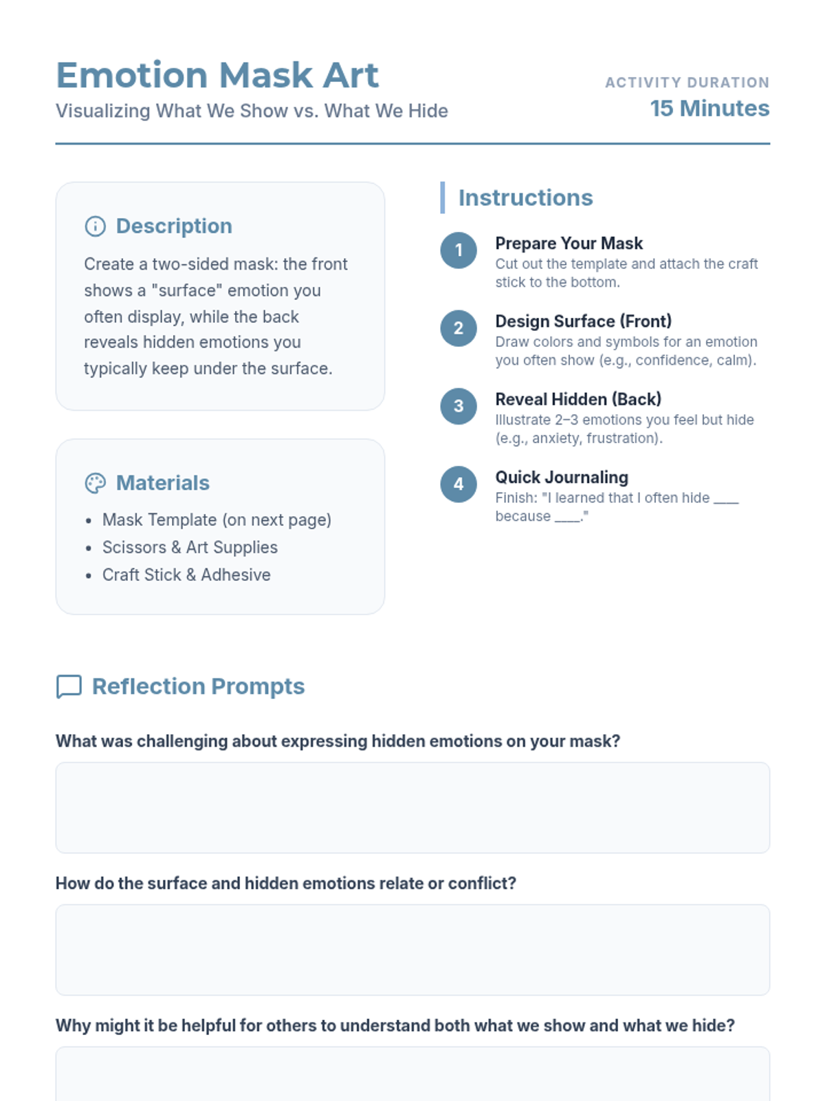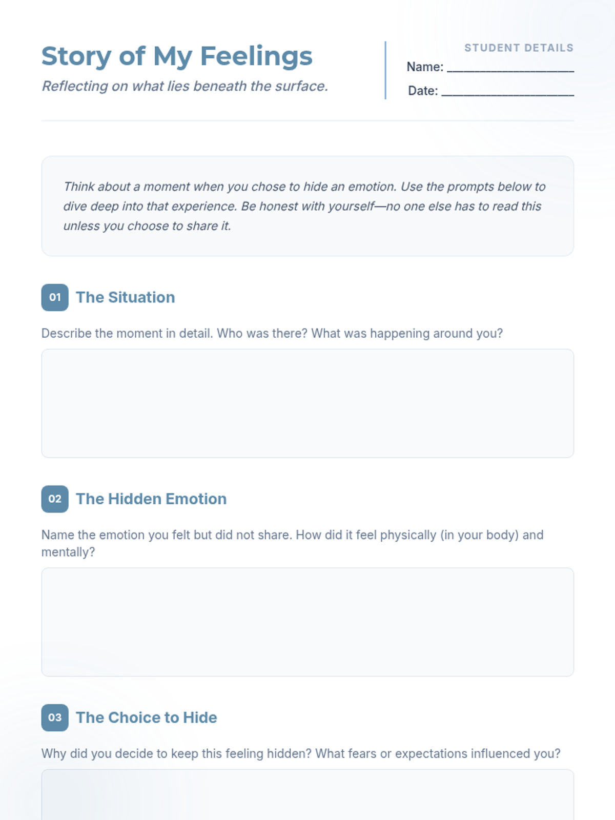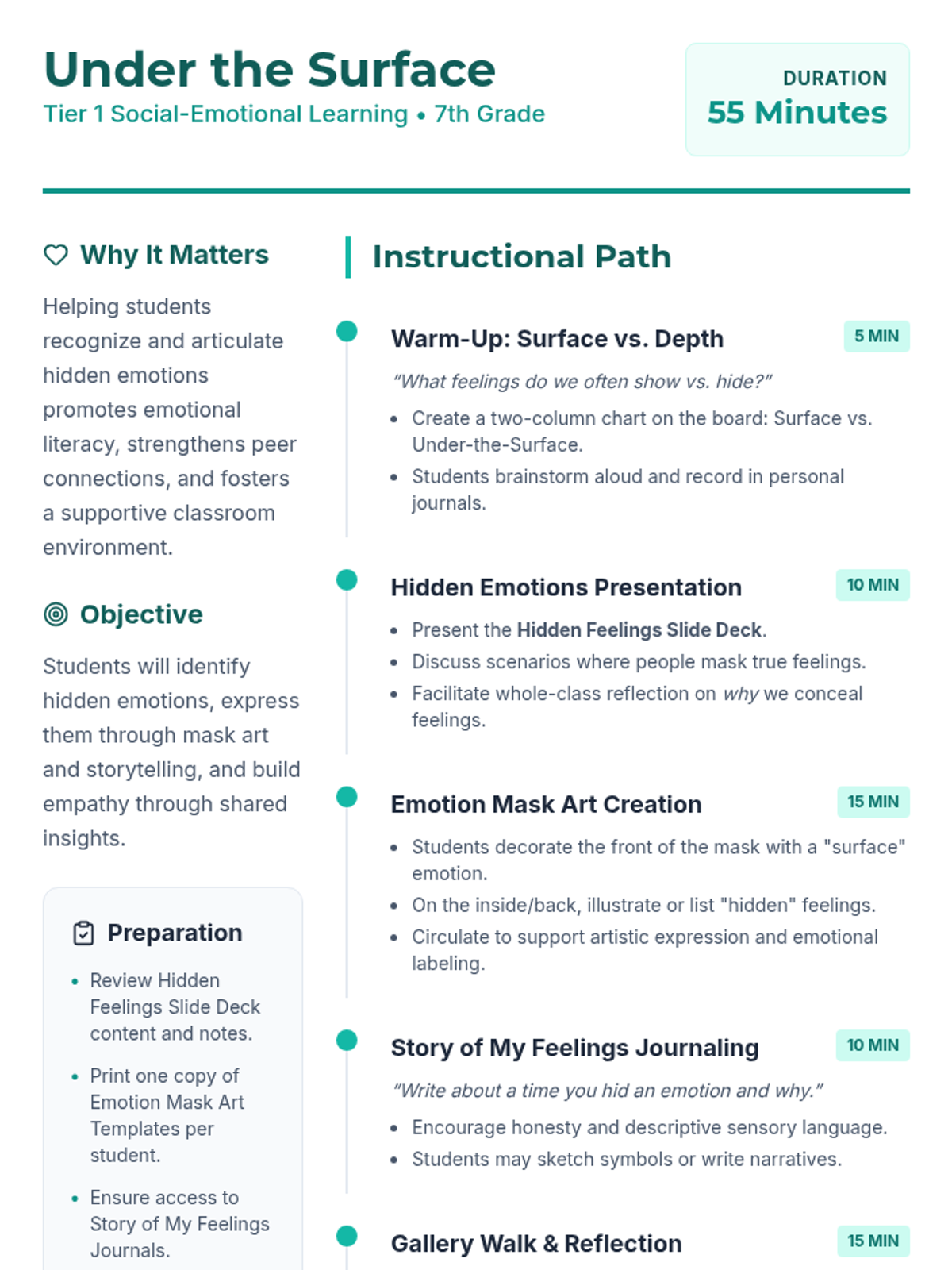 Students will explore hidden emotions through art and storytelling, fostering empathy and self-awareness in this 7th-grade Tier 1 social-emotional learning lesson.
