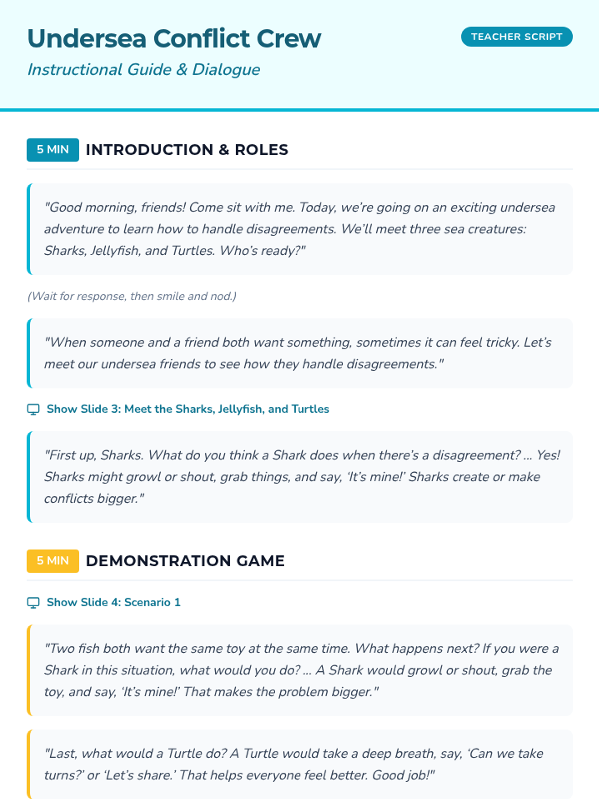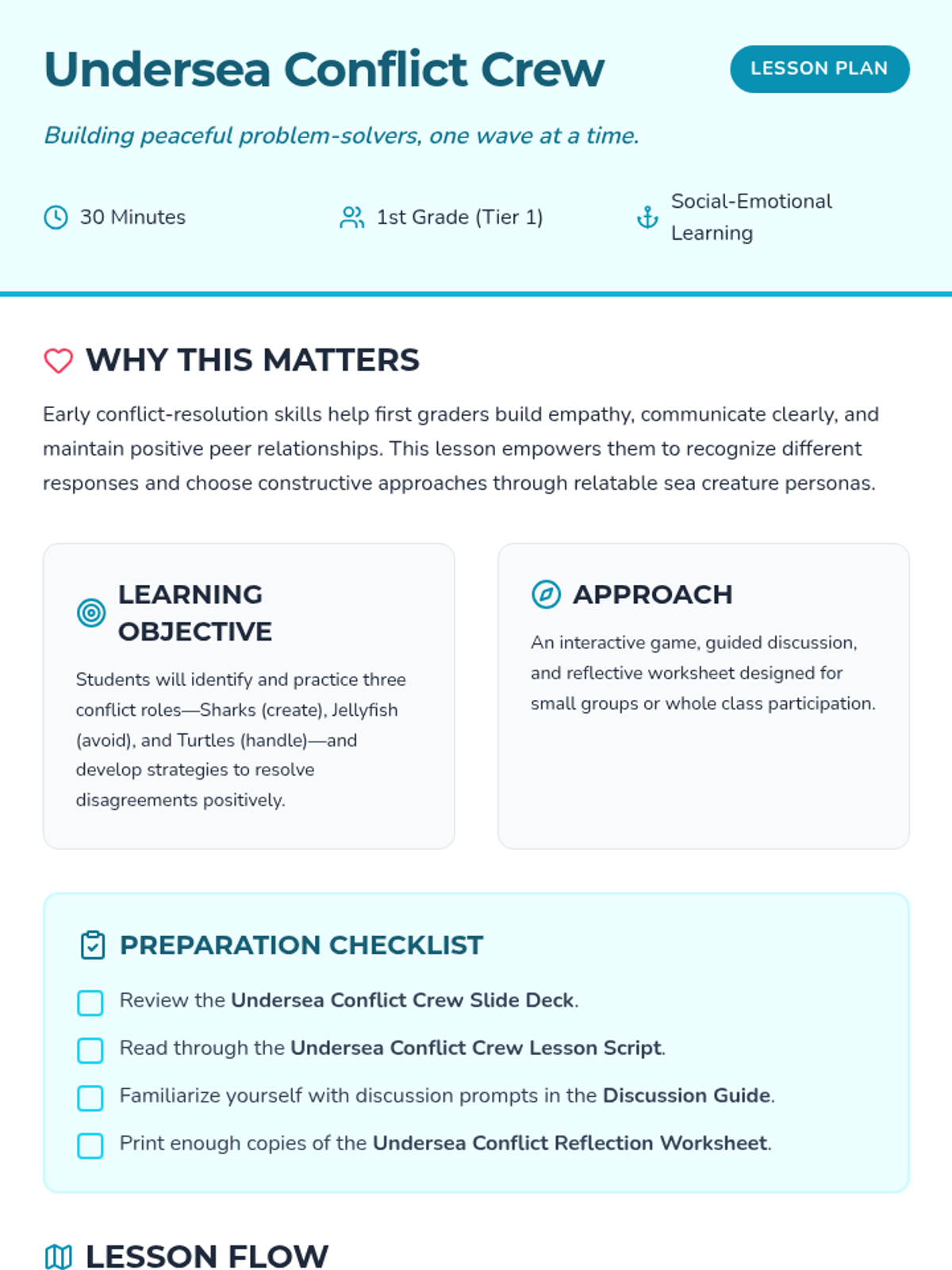 An engaging 30-minute Tier 1 counseling lesson for 1st graders using sea creature characters to teach conflict resolution styles and strategies.
