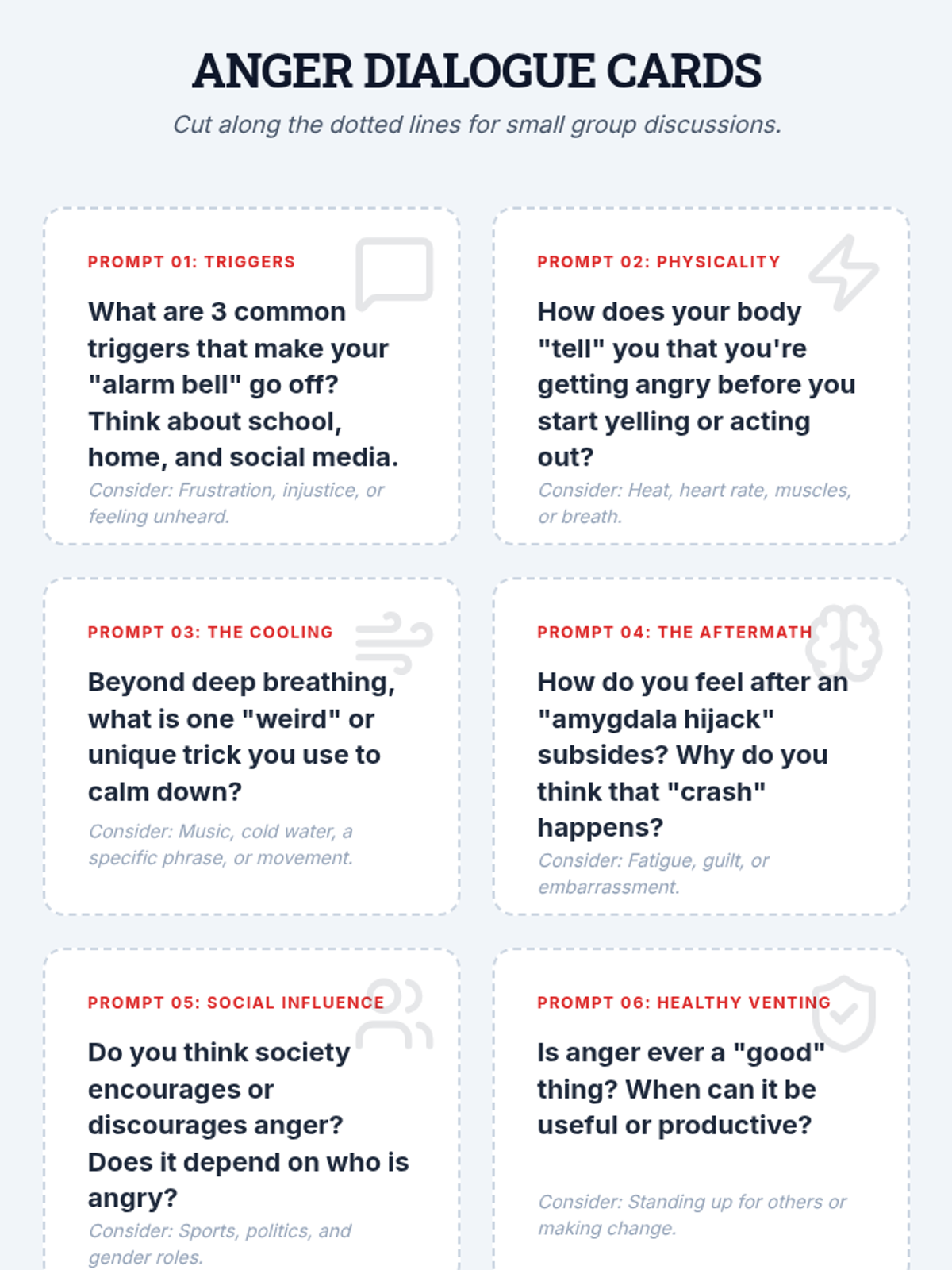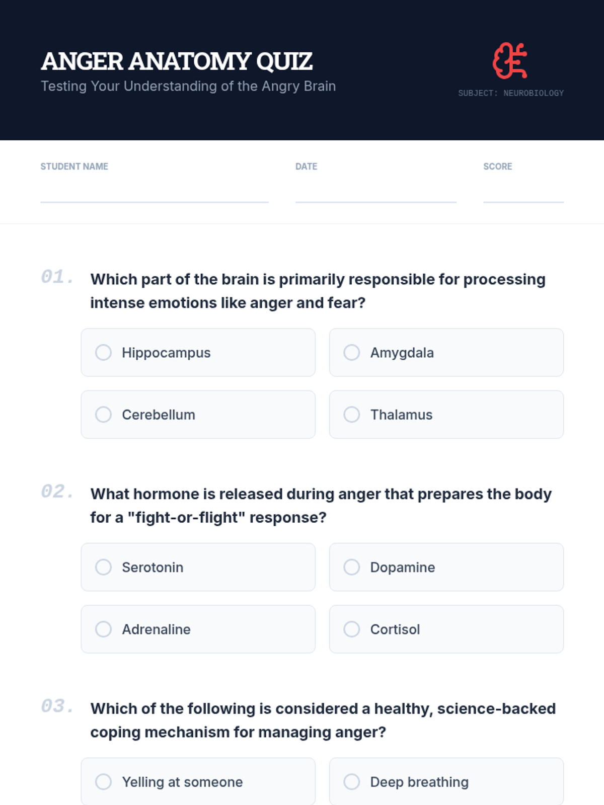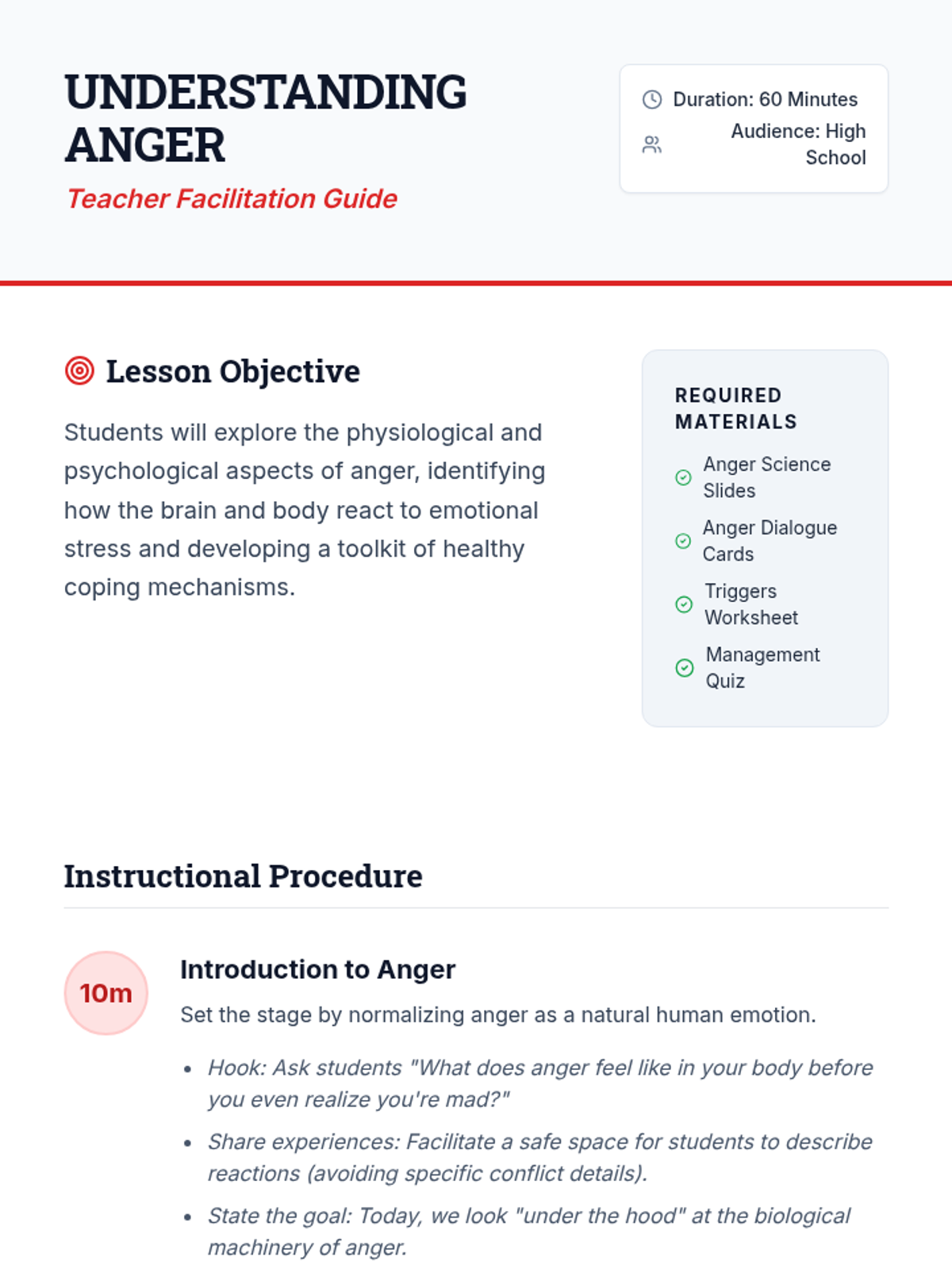 A comprehensive lesson exploring the physiological and psychological underpinnings of anger, focusing on the amygdala, adrenaline, and healthy coping mechanisms for high school students.