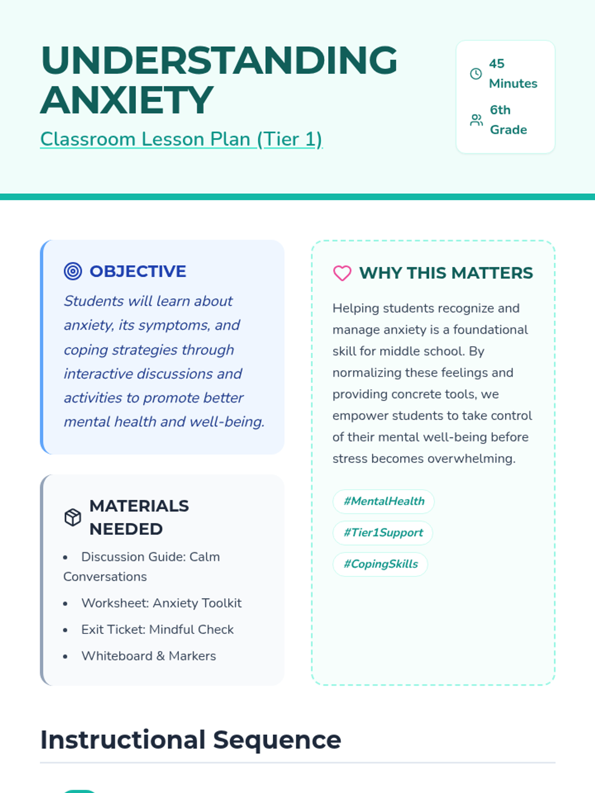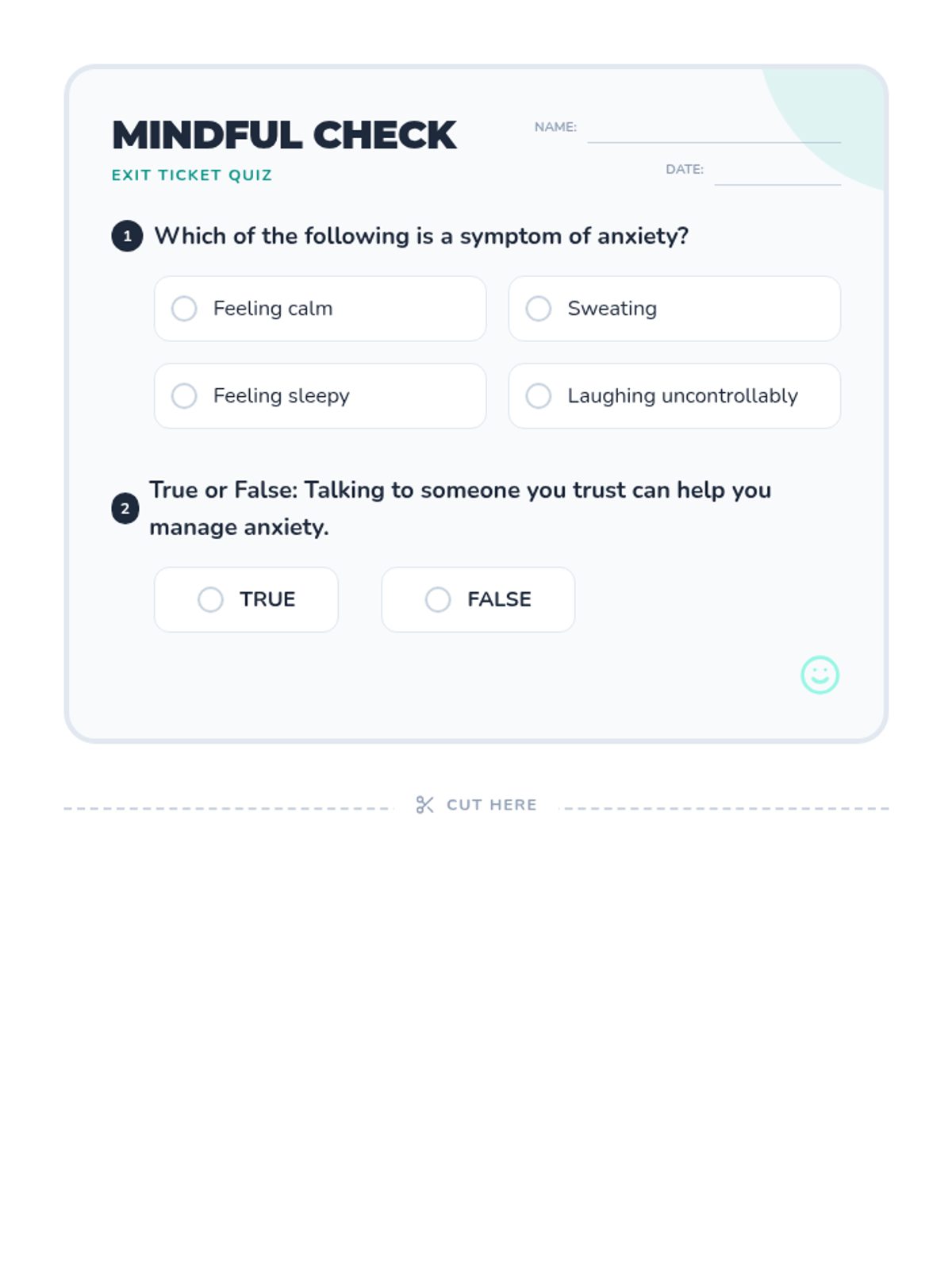 Students will learn about anxiety, its symptoms, and coping strategies through interactive discussions and activities to promote better mental health and well-being.