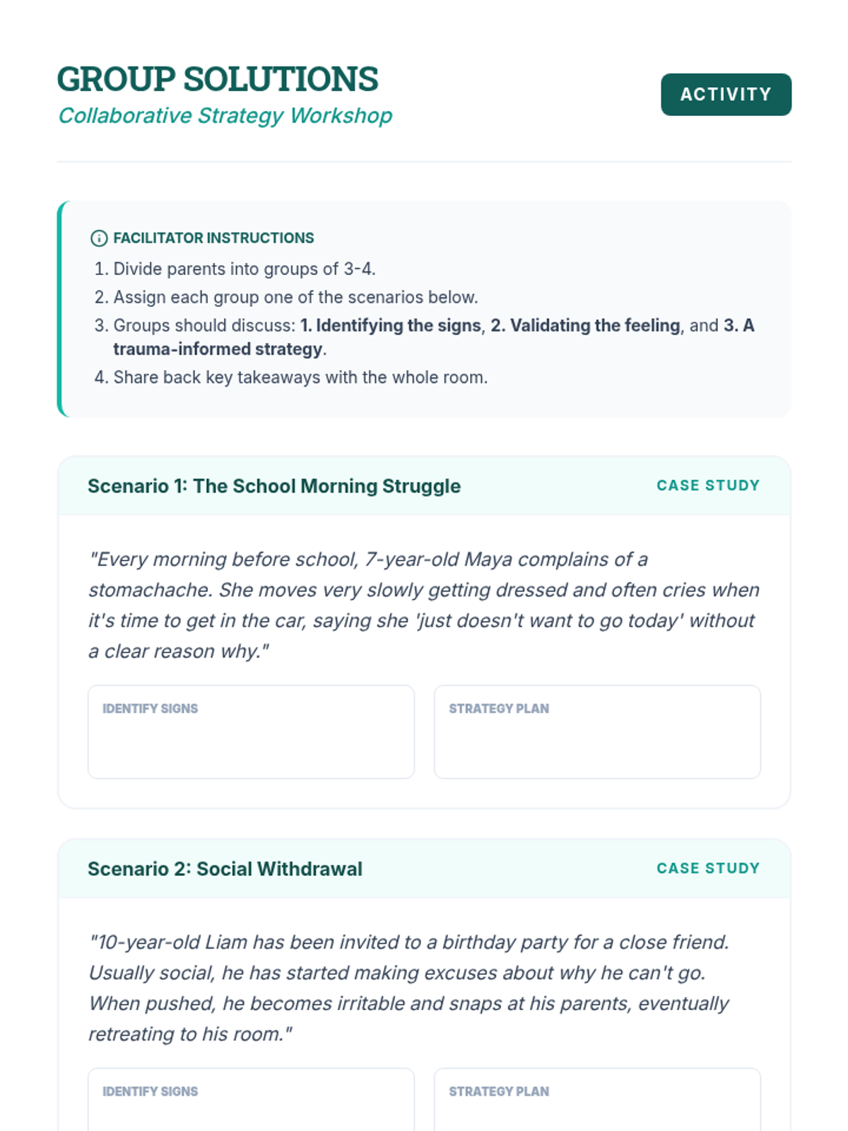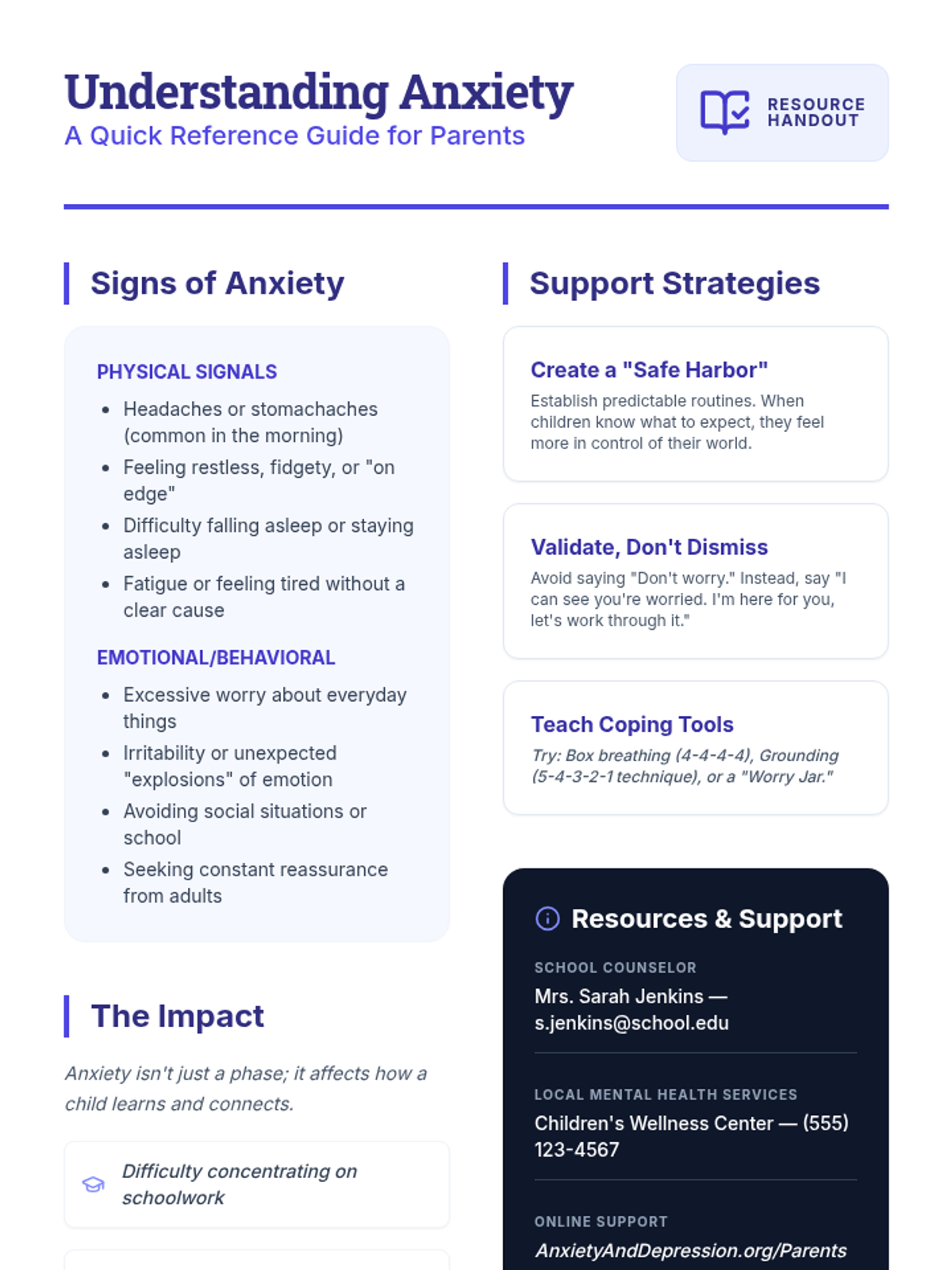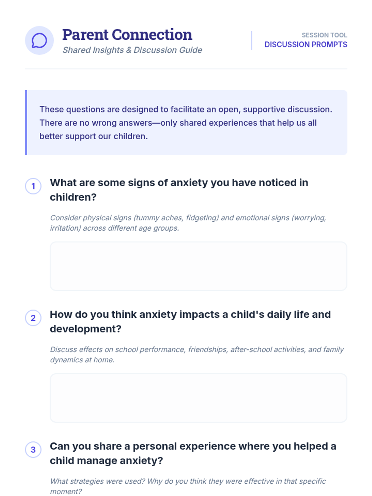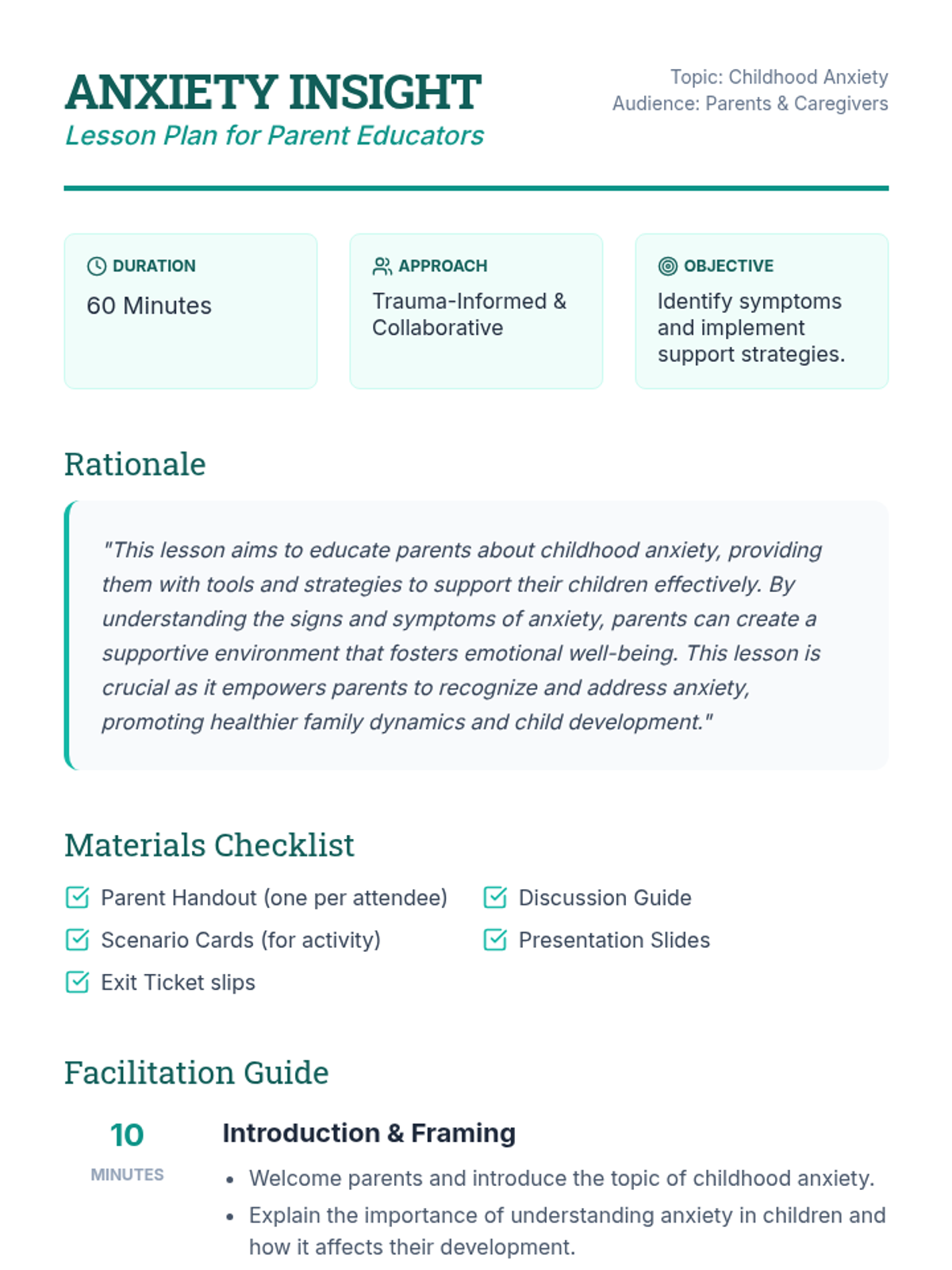 A comprehensive session for parents to understand the signs of childhood anxiety and learn trauma-informed strategies to support their children's emotional well-being.