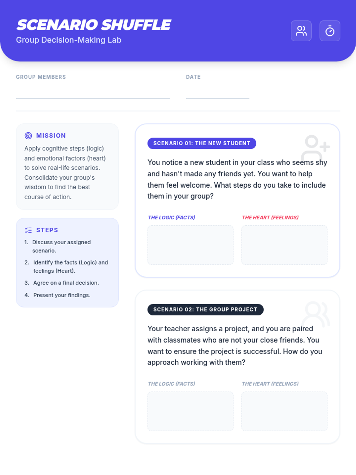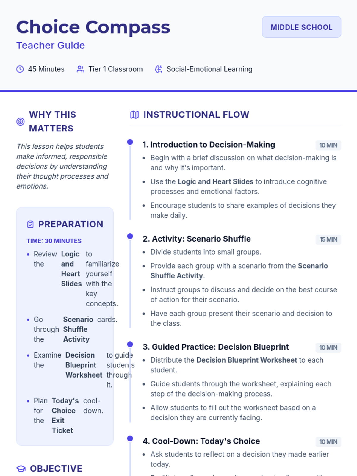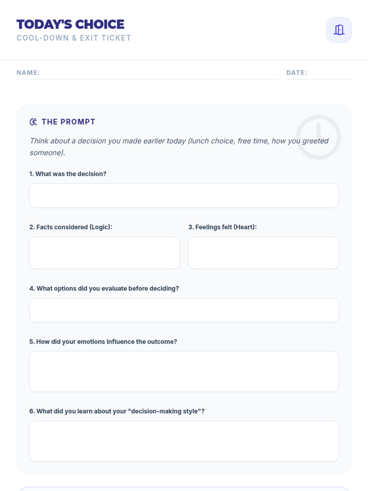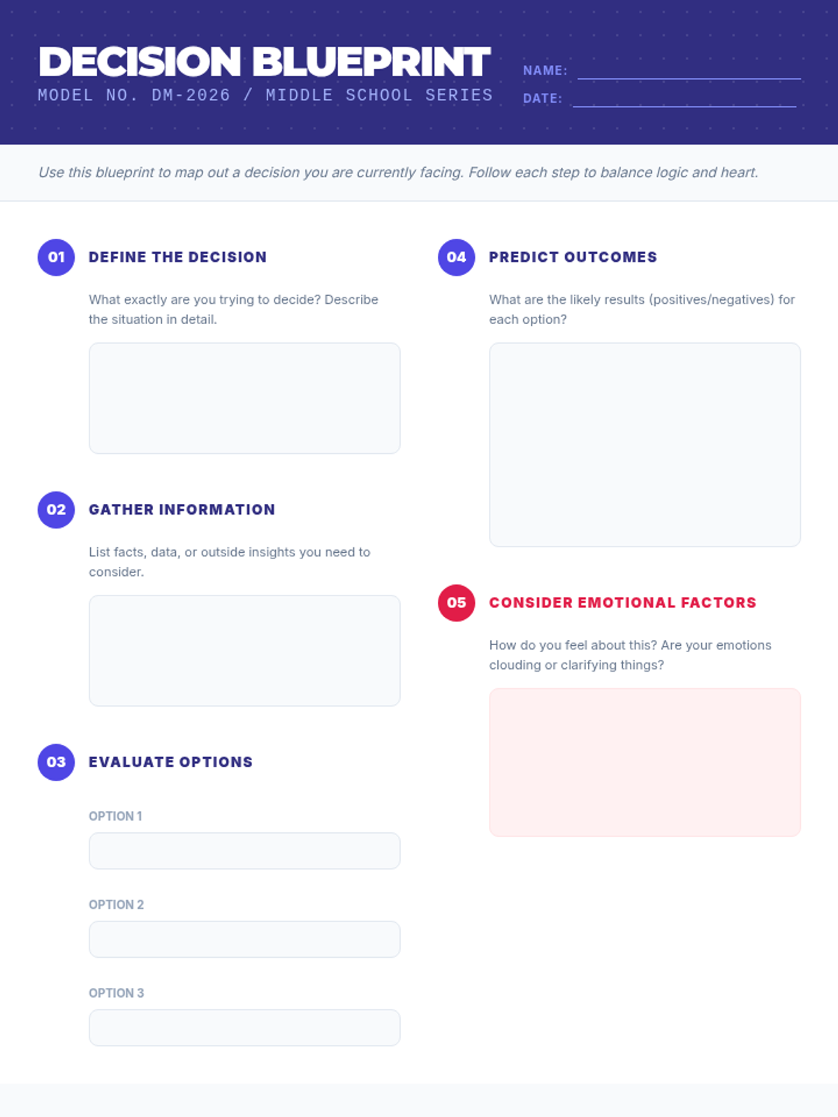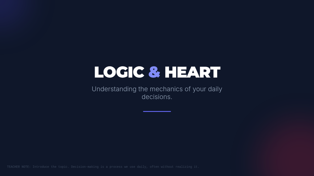 An introductory lesson on the fundamentals of decision-making, focusing on the cognitive processes and emotional factors involved. Students will explore how they gather information, evaluate options, and balance logic with emotion.