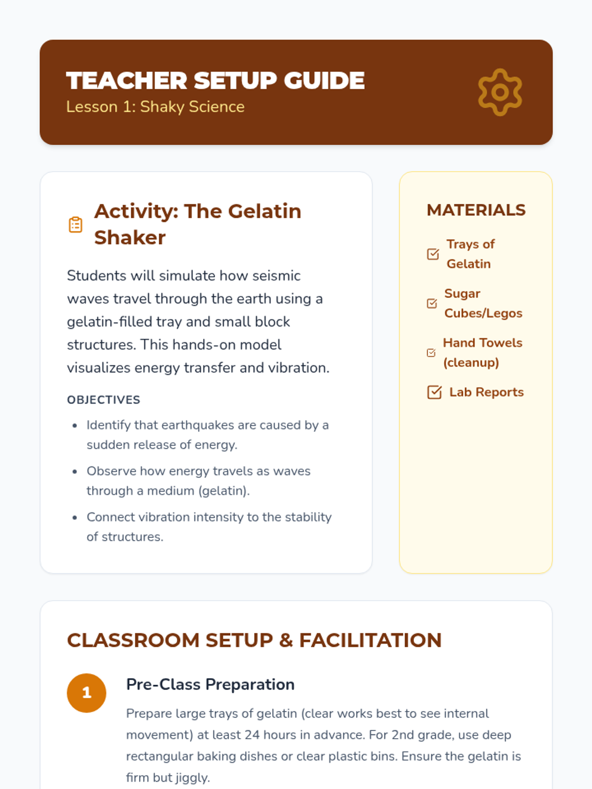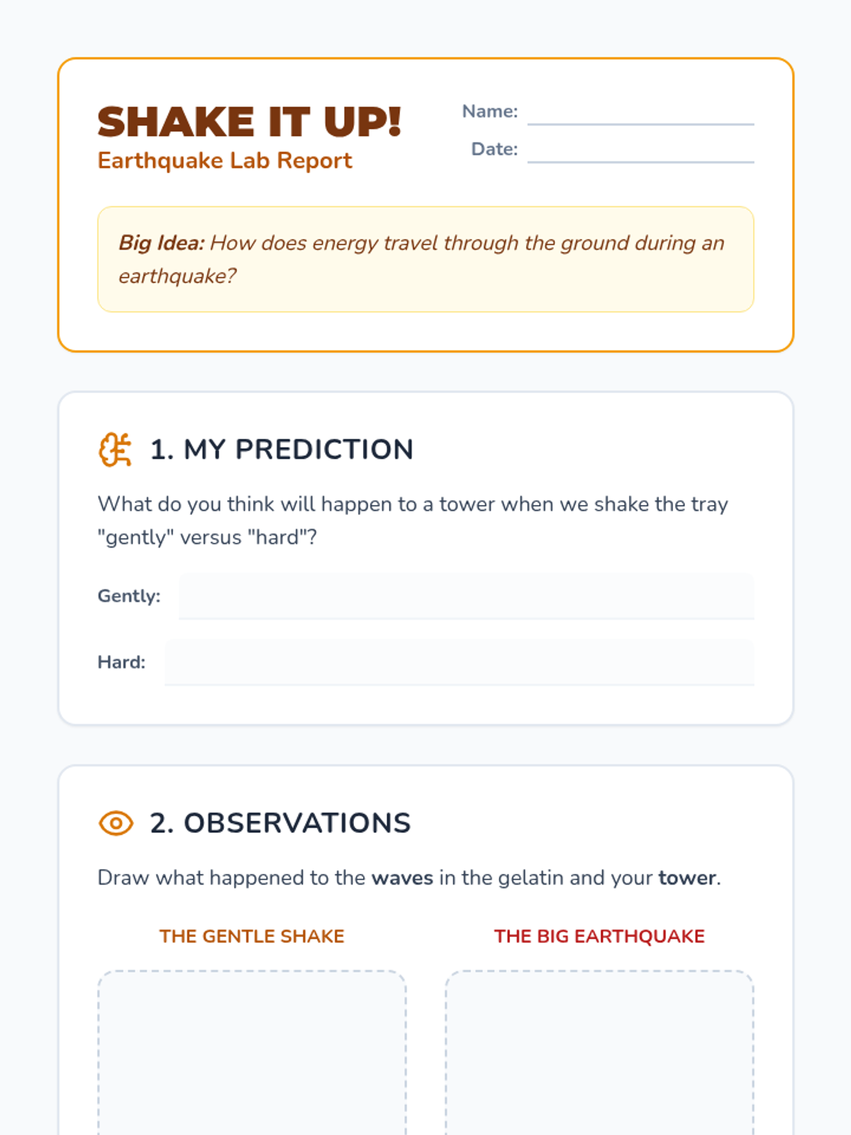 Students define earthquakes as a sudden release of energy causing the ground to shake through simulation and observation.