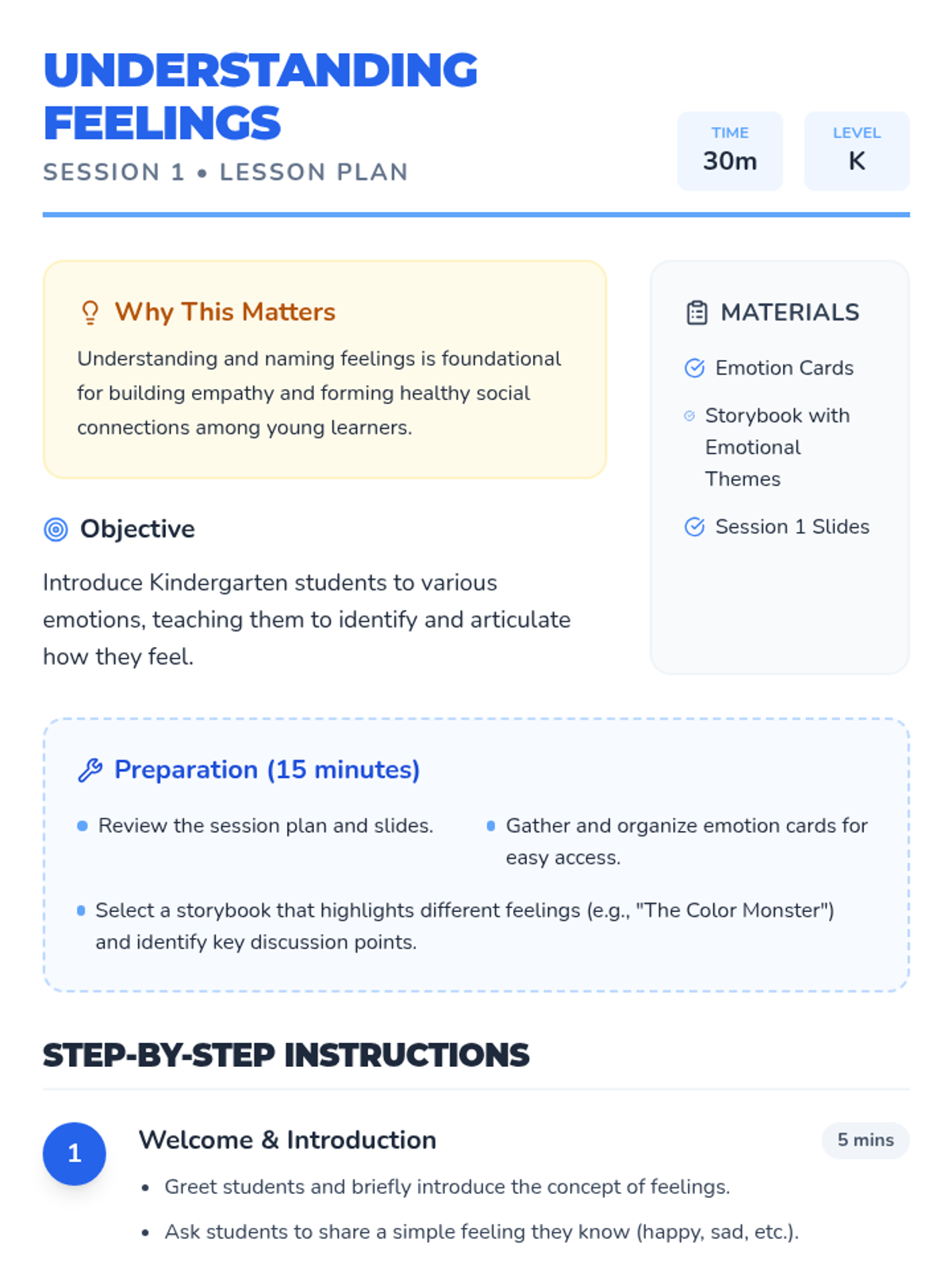 An introduction to identifying and naming basic emotions using storybooks and visual aids to build foundational empathy.