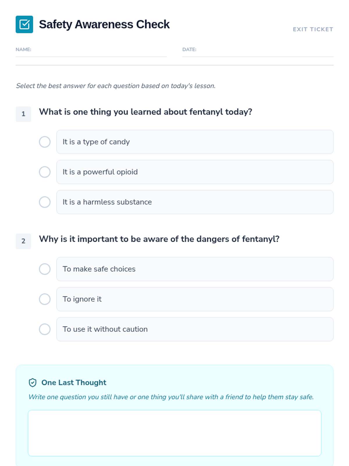 This lesson raises awareness about fentanyl, its effects, and the dangers associated with its use. Students explore the science of opioid addiction through video, collaborative discussion, and a game-based activity.