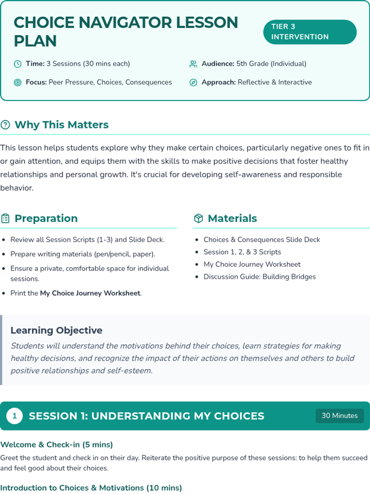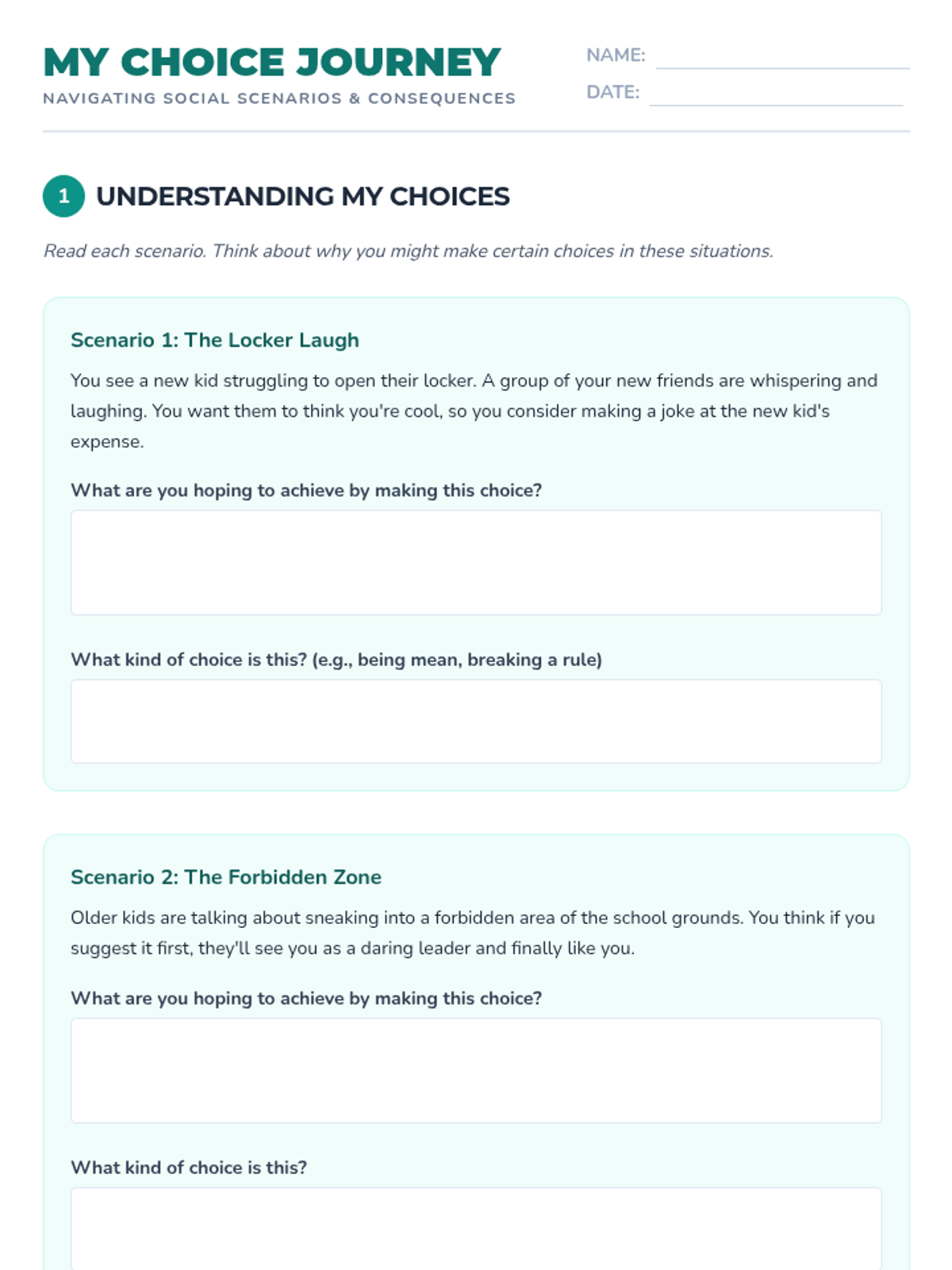 Introduces the motivations behind choices, exploring why students might act out or succumb to pressure to fit in.