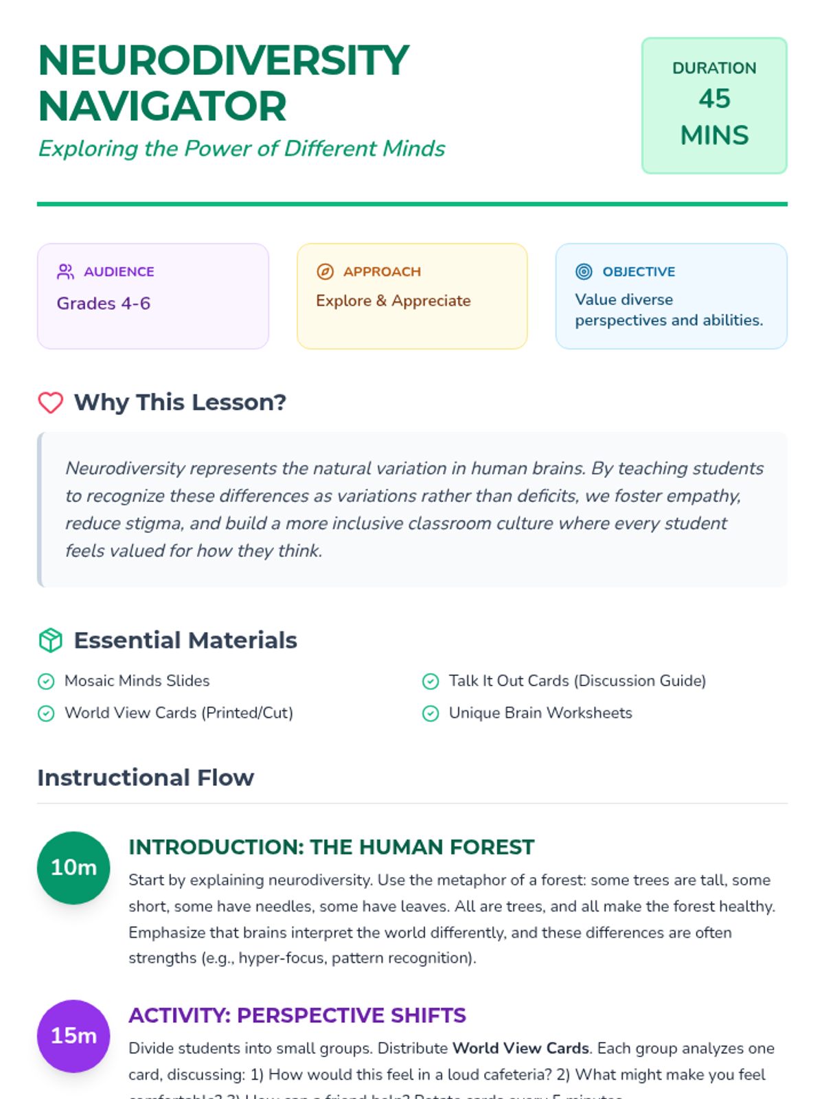 This lesson introduces students to neurodiversity, exploring different ways people experience and interact with the world through activities and discussion.