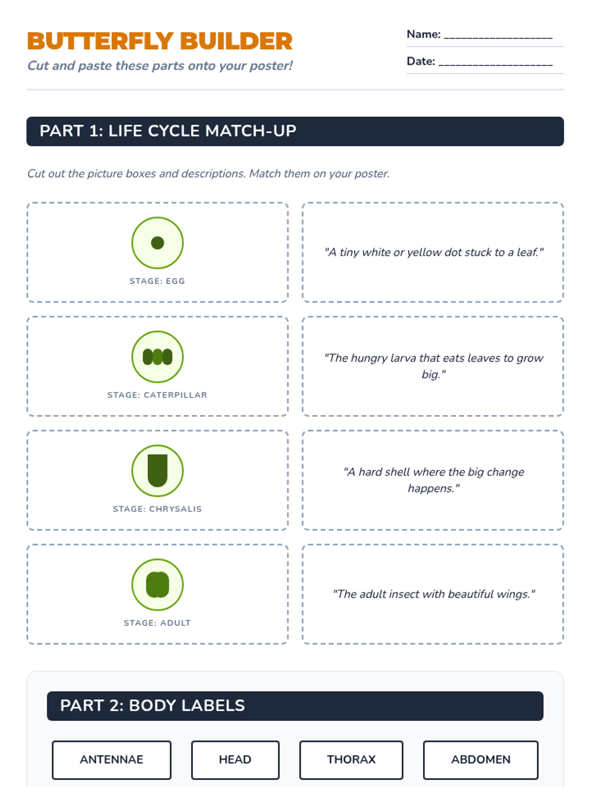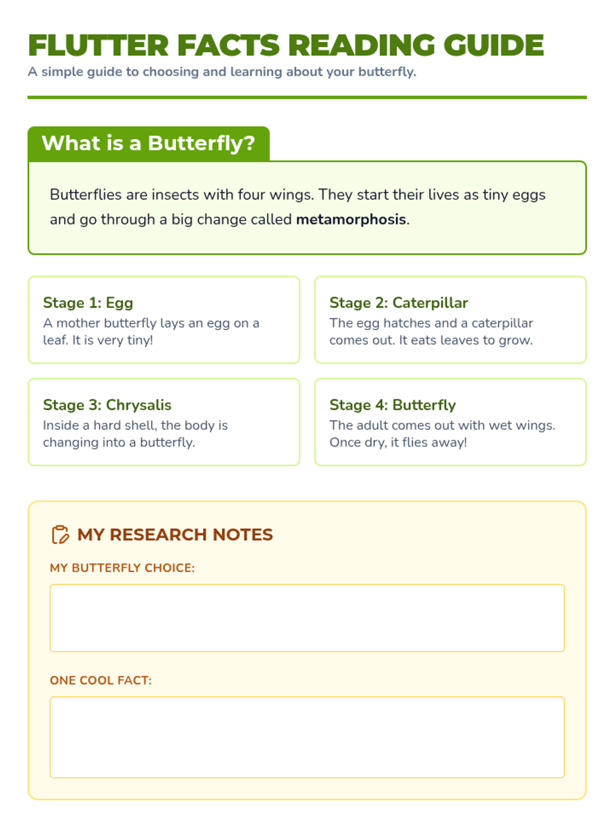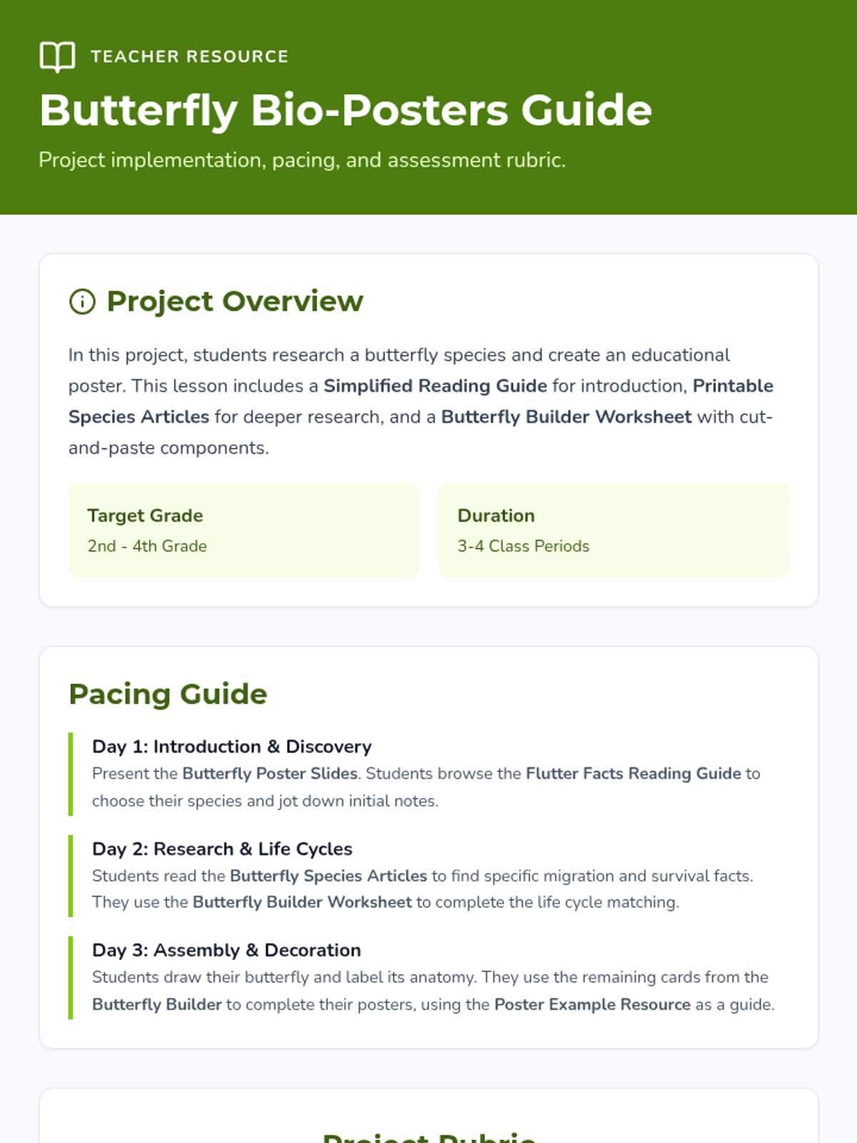 A creative science project where students research a butterfly species of their choice and design an informative poster. The lesson includes a simplified reading guide, cut-and-paste components, and a presentation to guide the project.