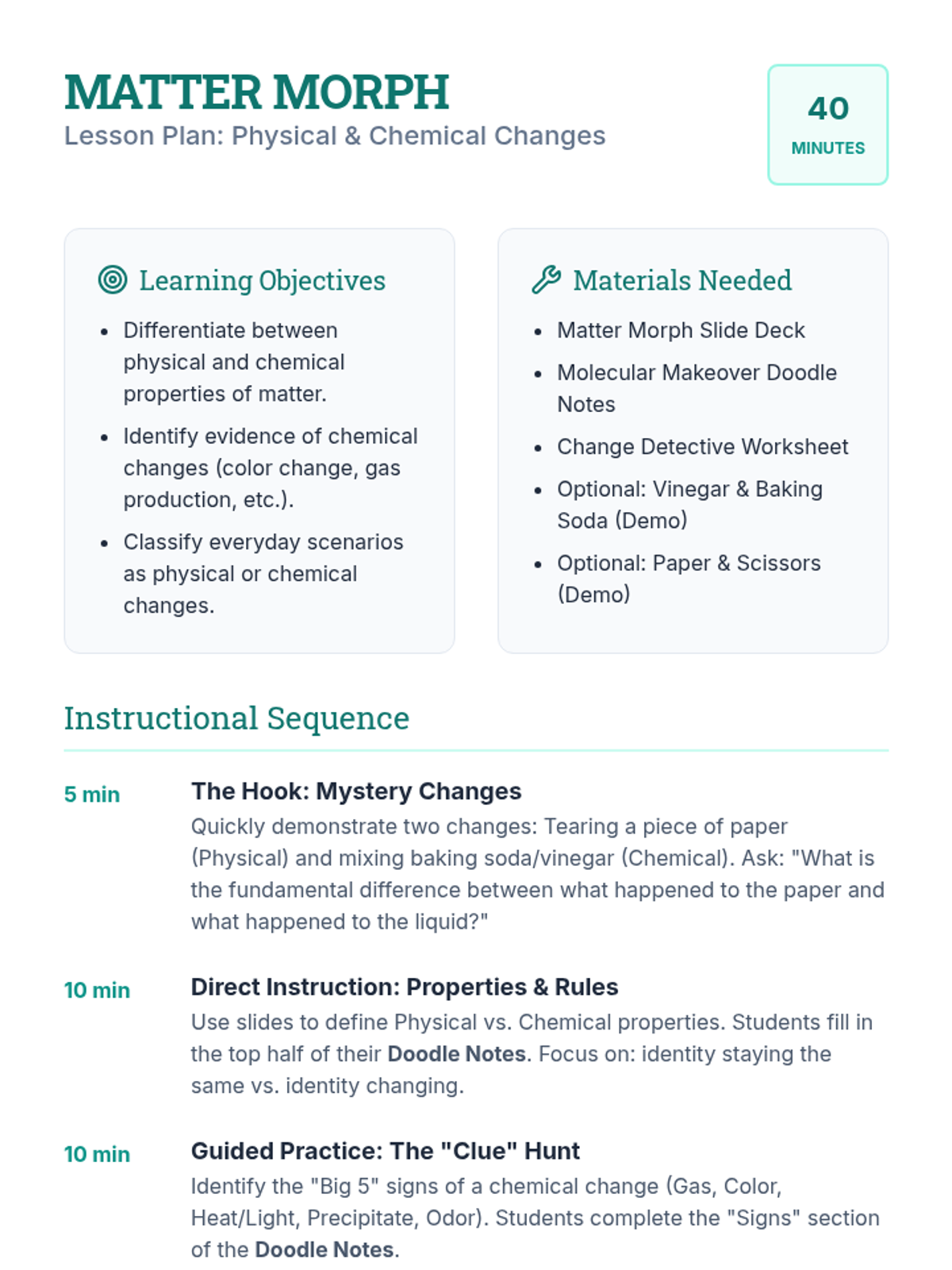 A comprehensive review of stoichiometry concepts including the law of conservation of mass, molar mass, mole ratios, limiting reactants, and percent yield. Includes instructional slides, a practice worksheet, and a realistic mock exam to prepare students for assessment.