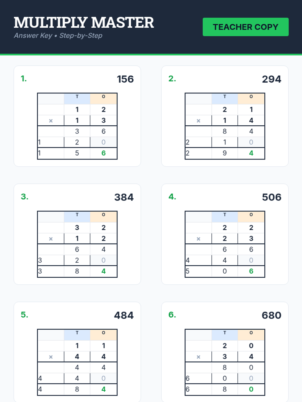 A focused lesson on mastering the 2-digit by 2-digit multiplication algorithm using a grid-based layout for organization.