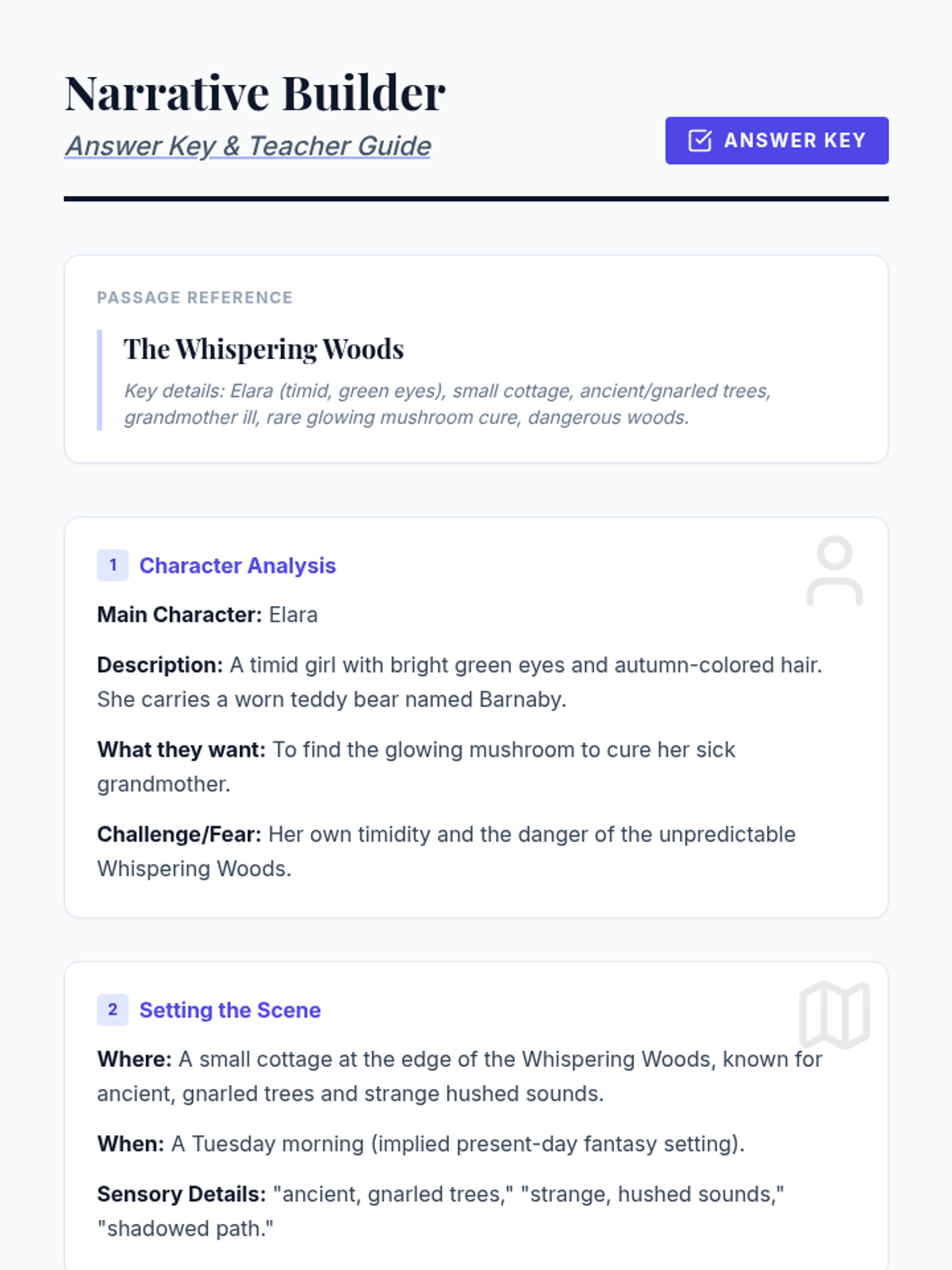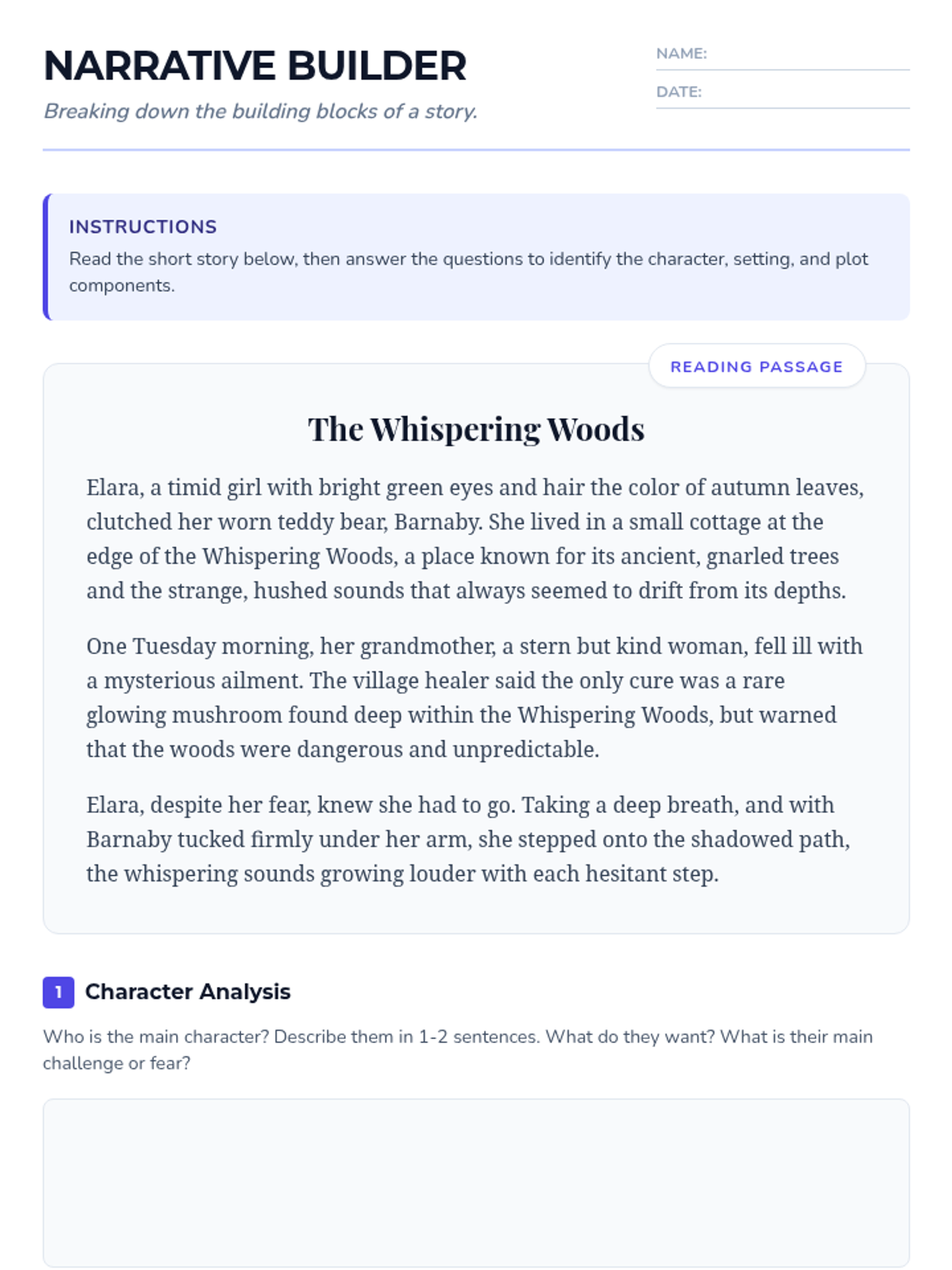 A 3-day intensive study of an original folktale, 'The Weaver of Whispers.' Students analyze character motivations, setting influences, and figurative language before creating their own original myth.
