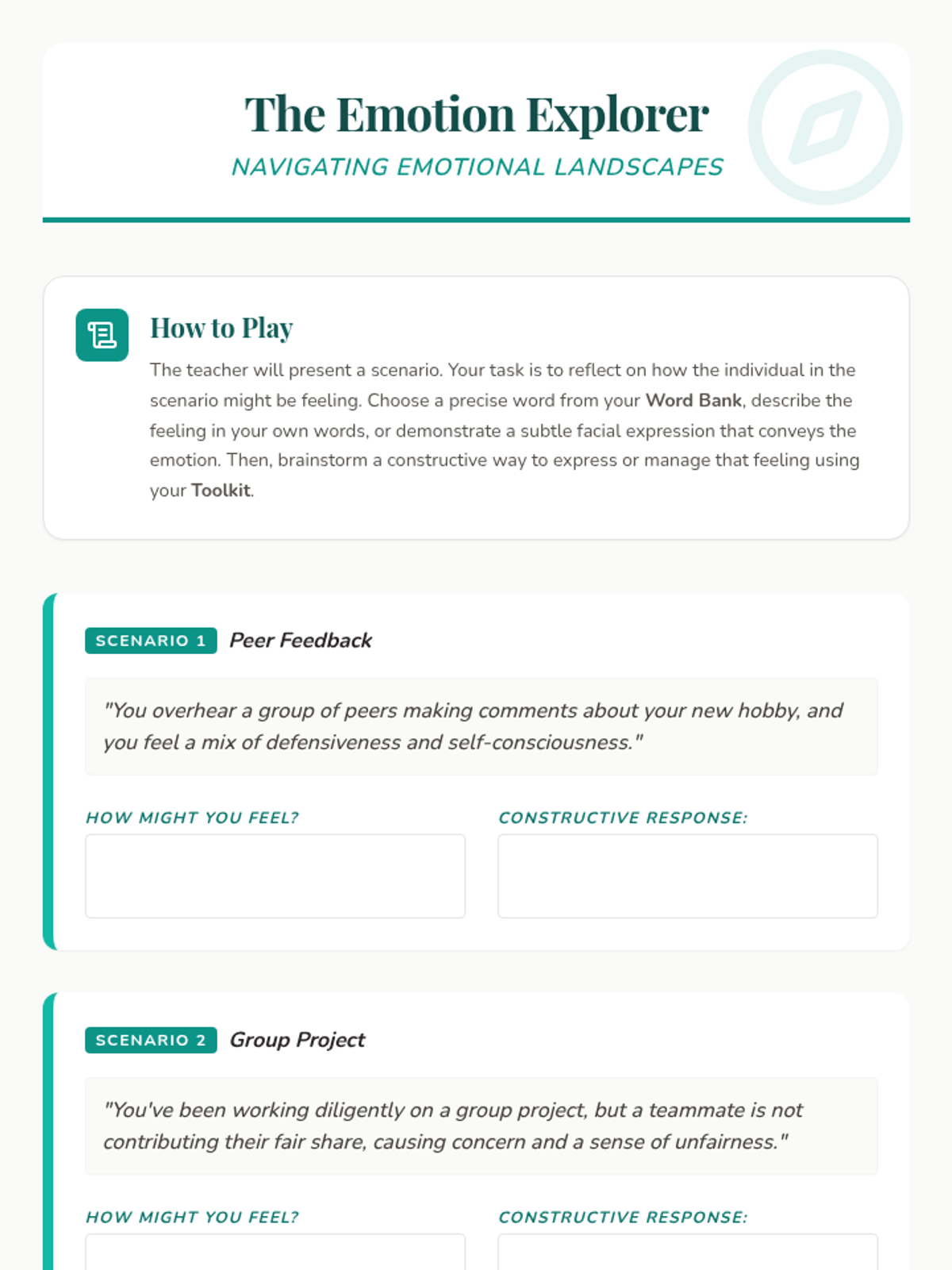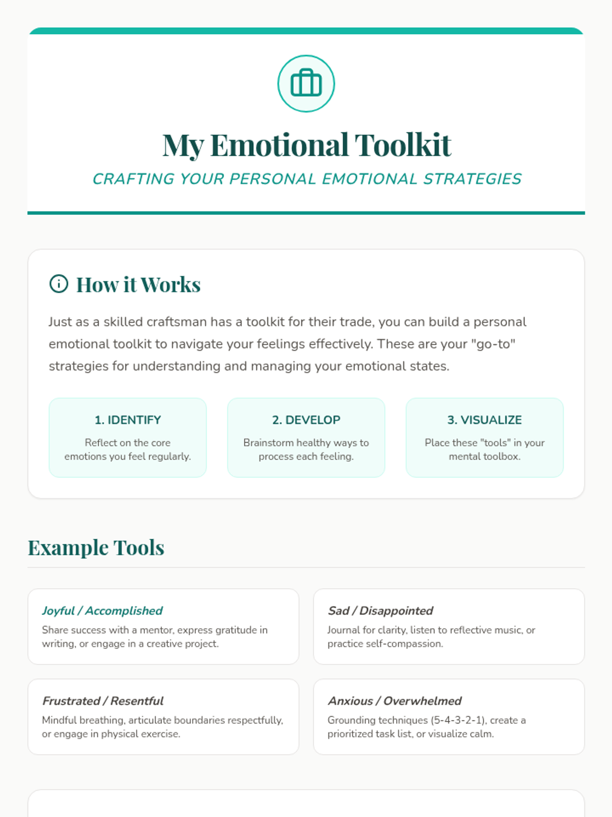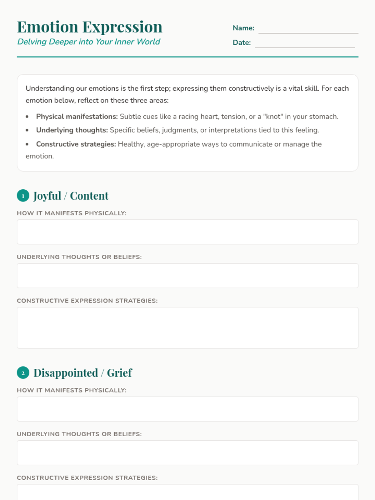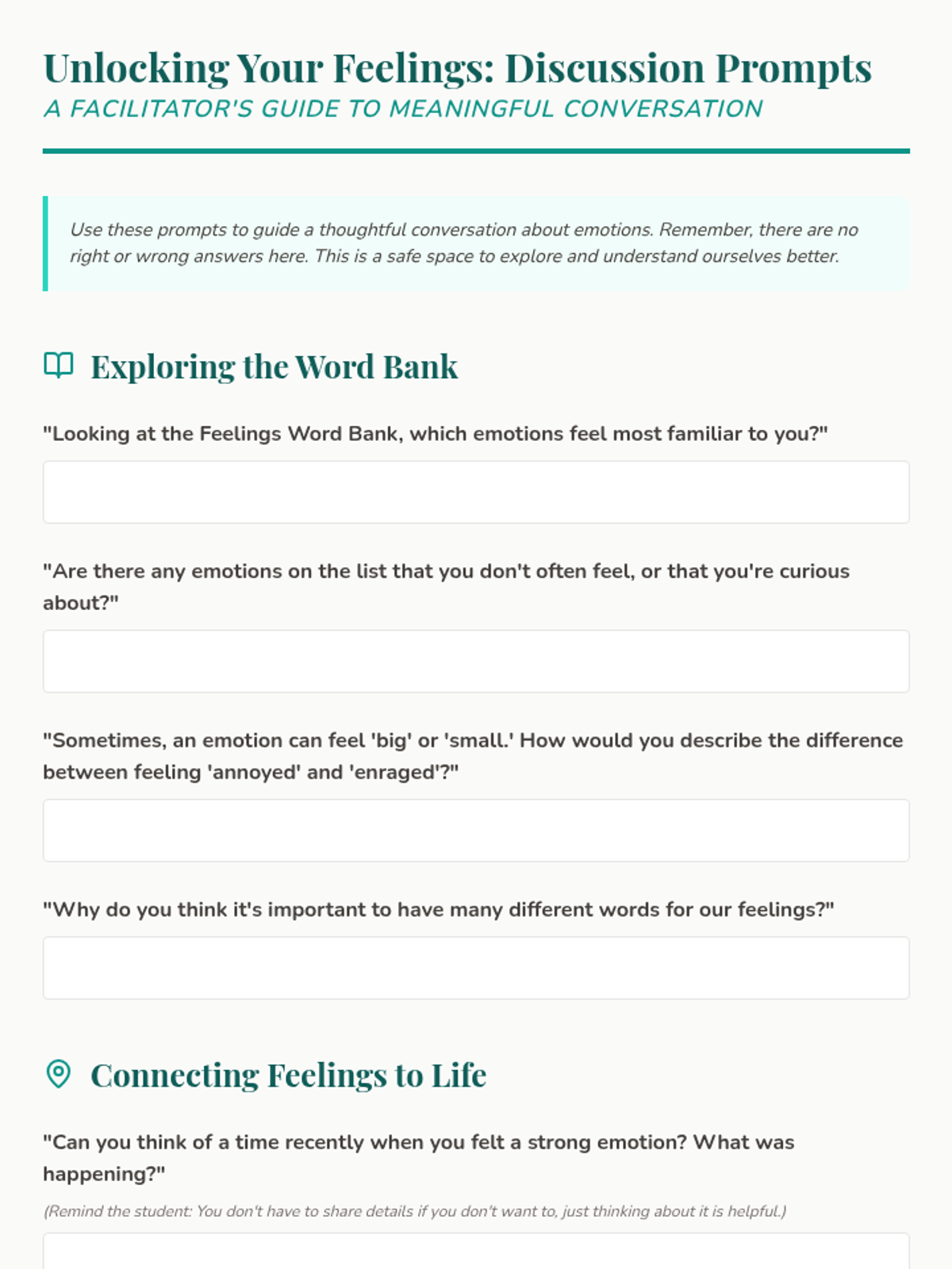 A specialized Tier 3 lesson for a 7th-grade student to build emotional literacy, vocabulary, and healthy expression strategies through personalized activities and guided reflection.