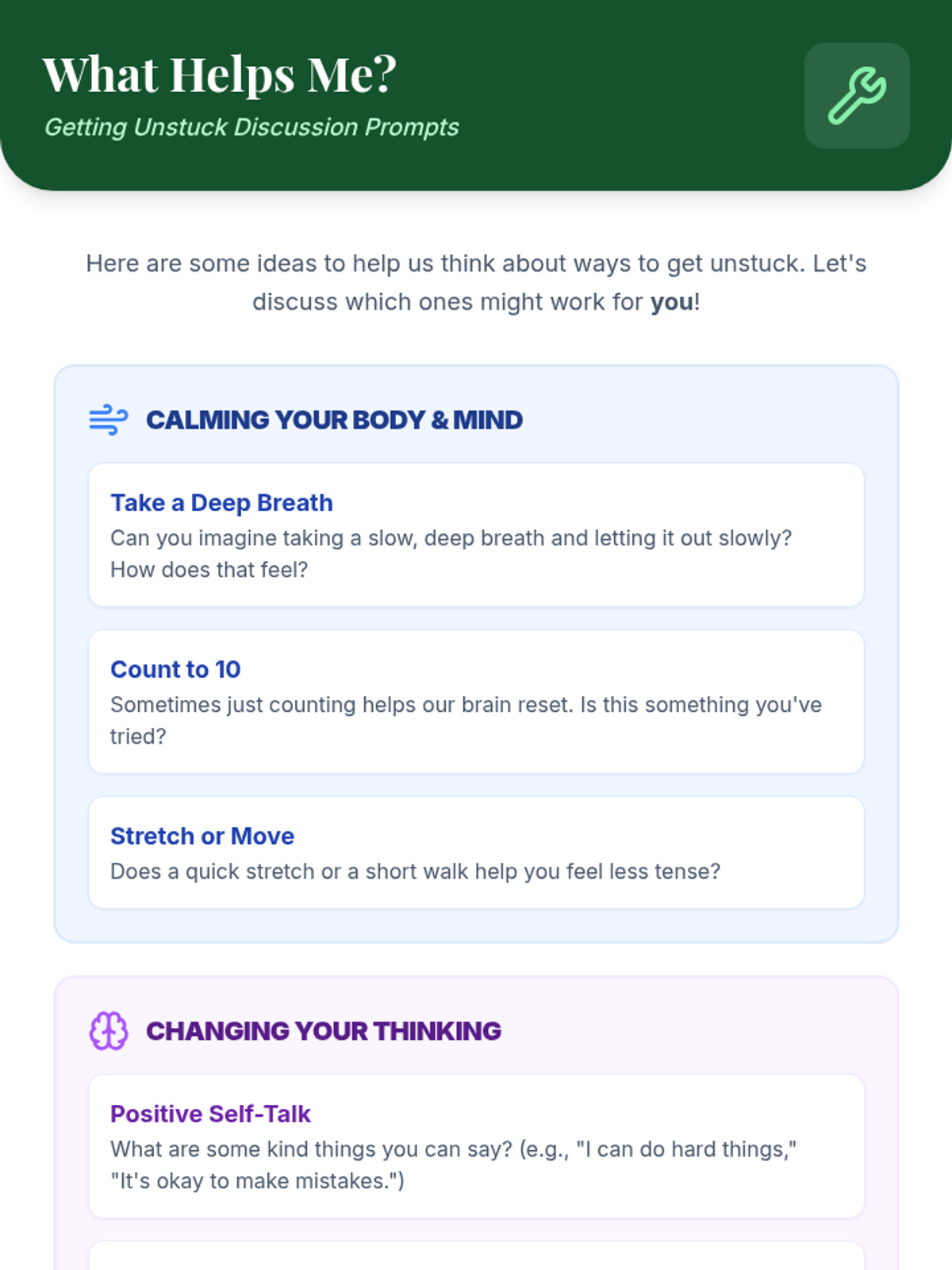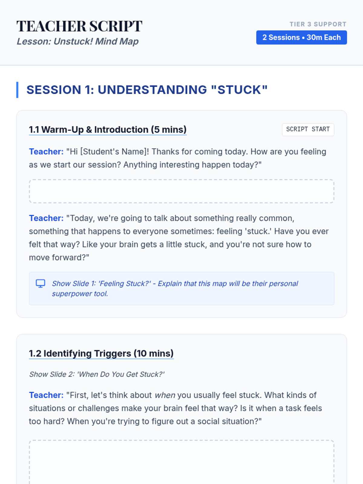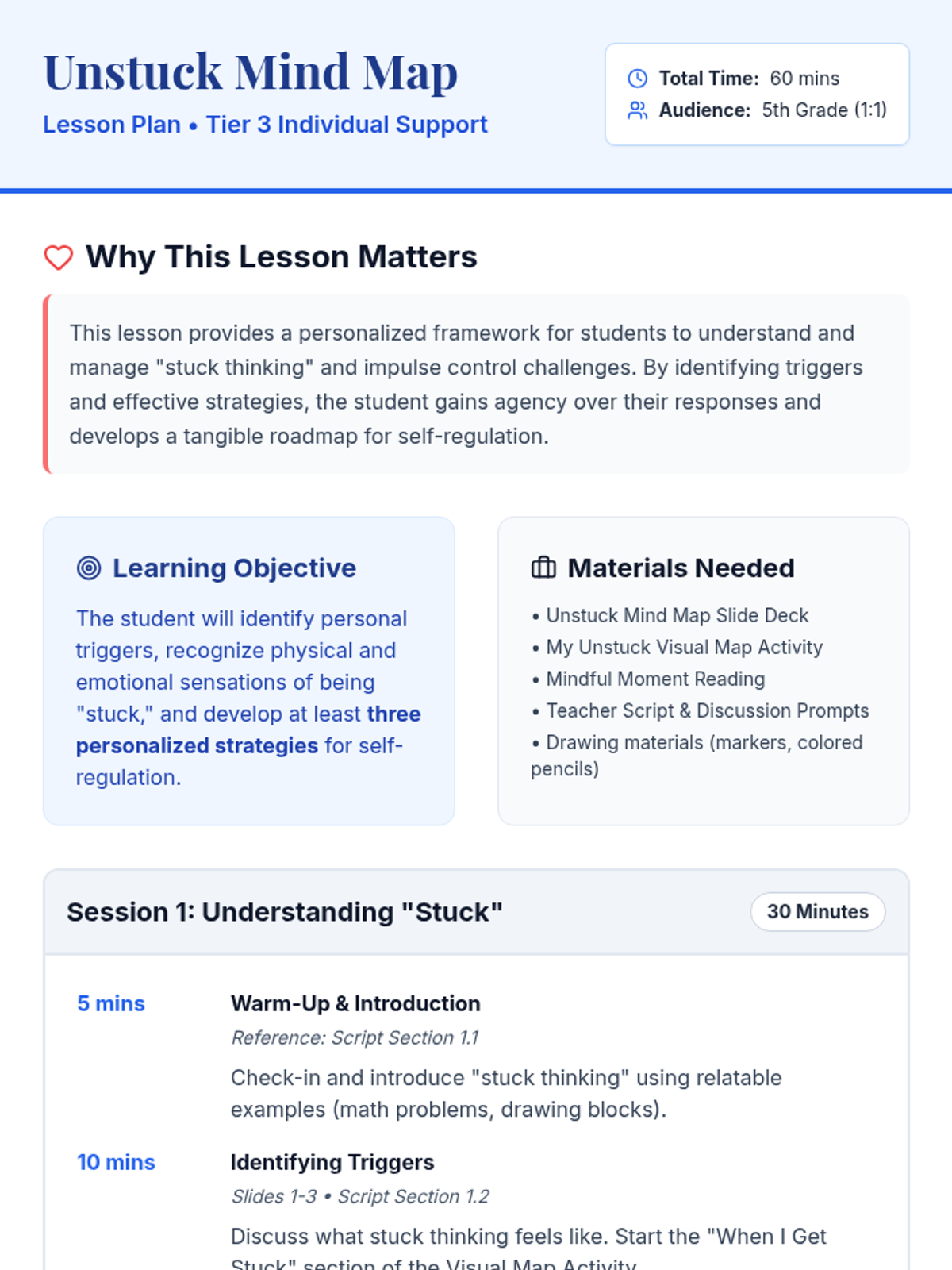 A two-part Tier 3 intervention for 5th graders to identify impulse control triggers and develop personalized coping strategies through visual mapping.