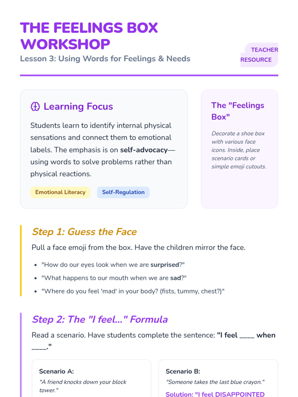 Focuses on identifying emotions and using 'I' statements to communicate feelings and needs clearly to friends.