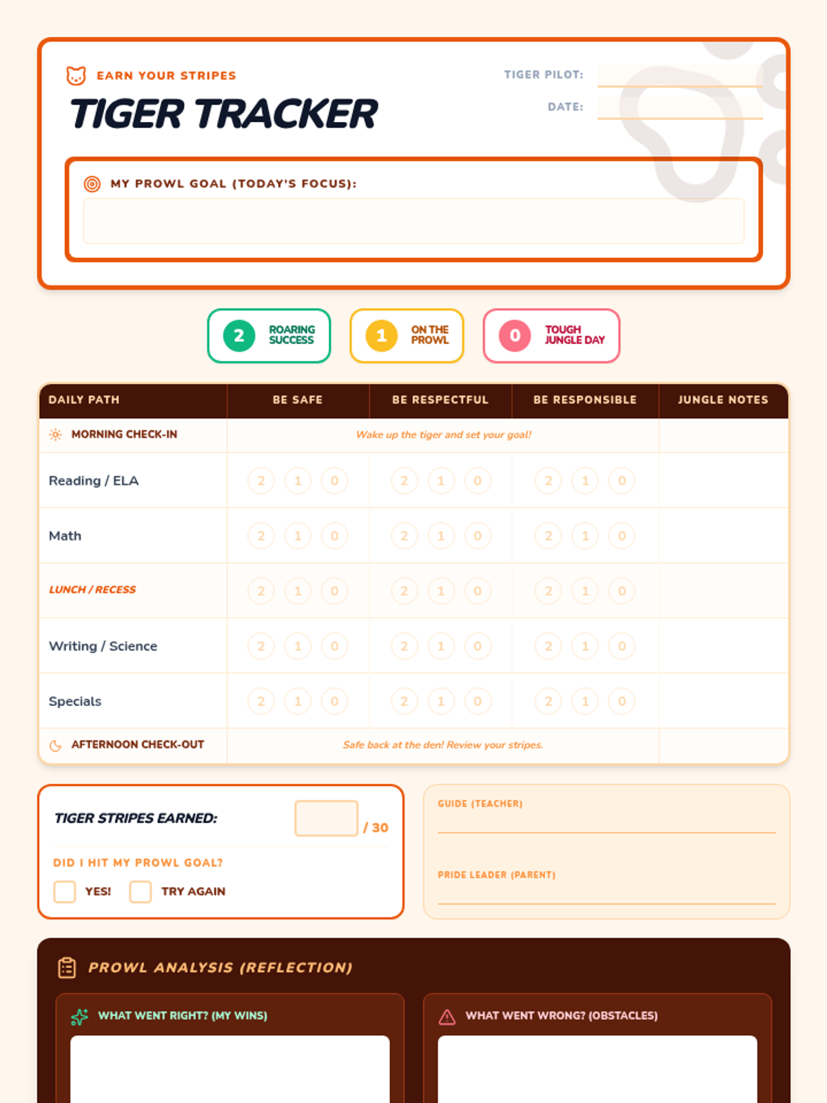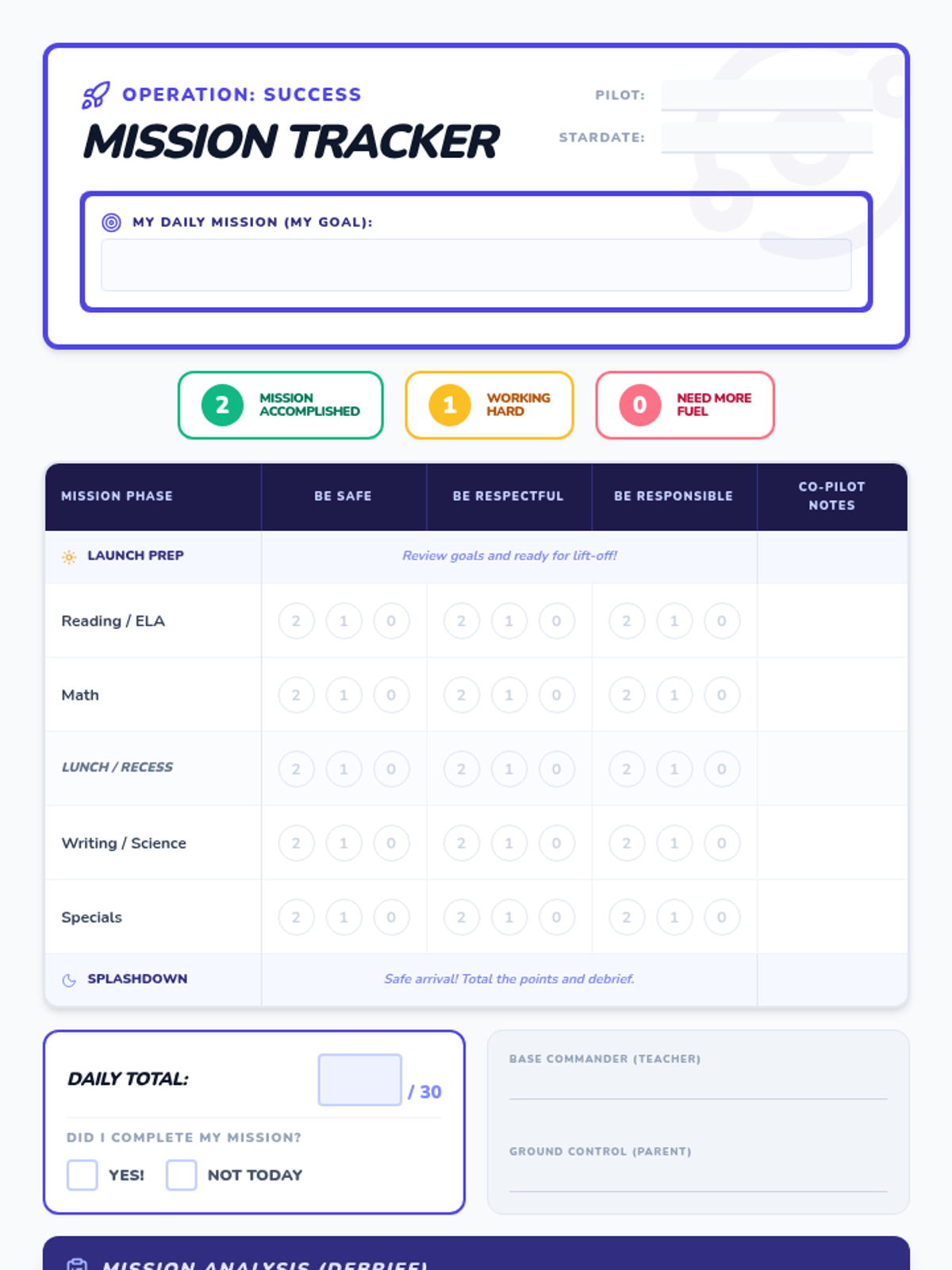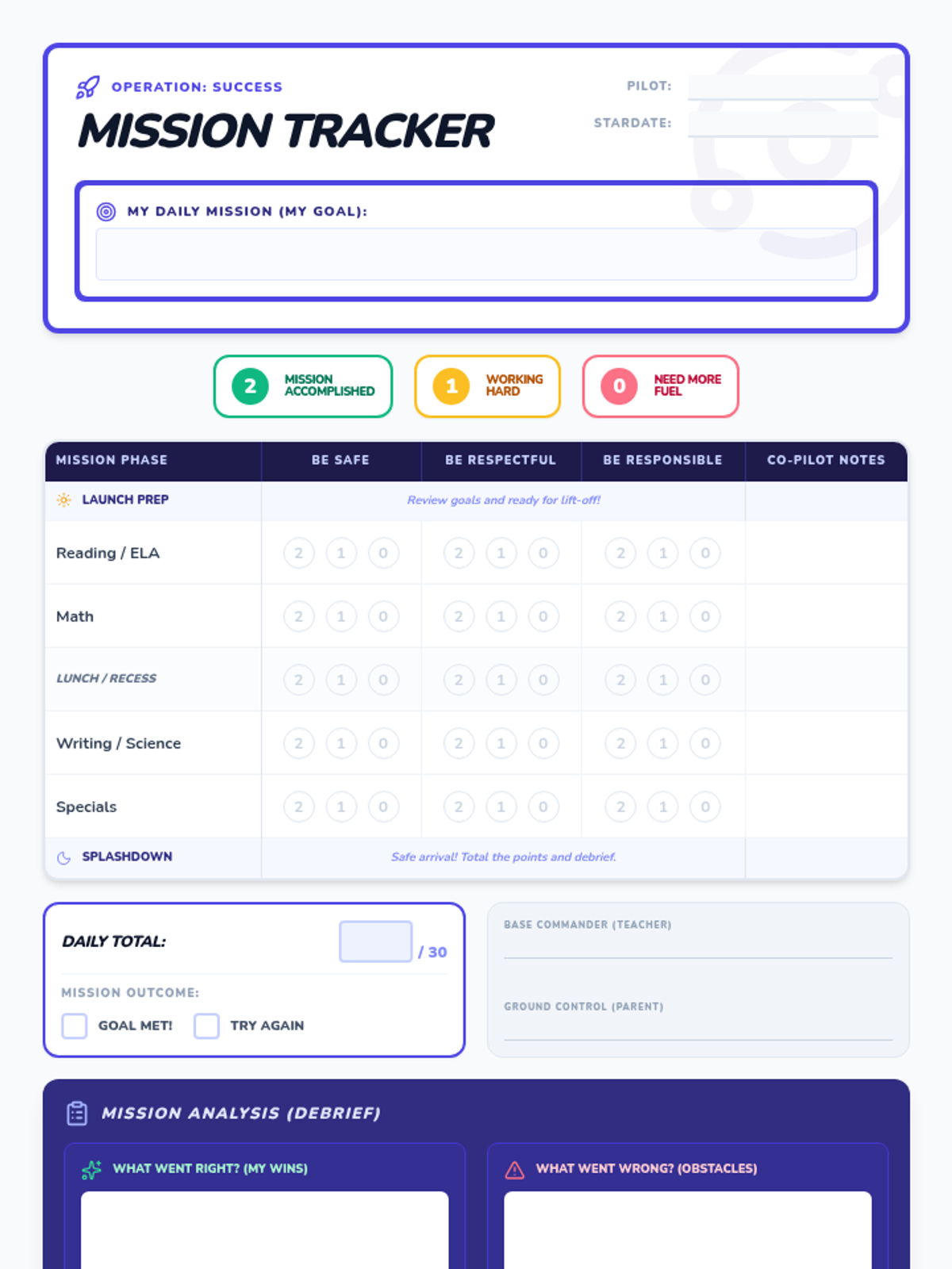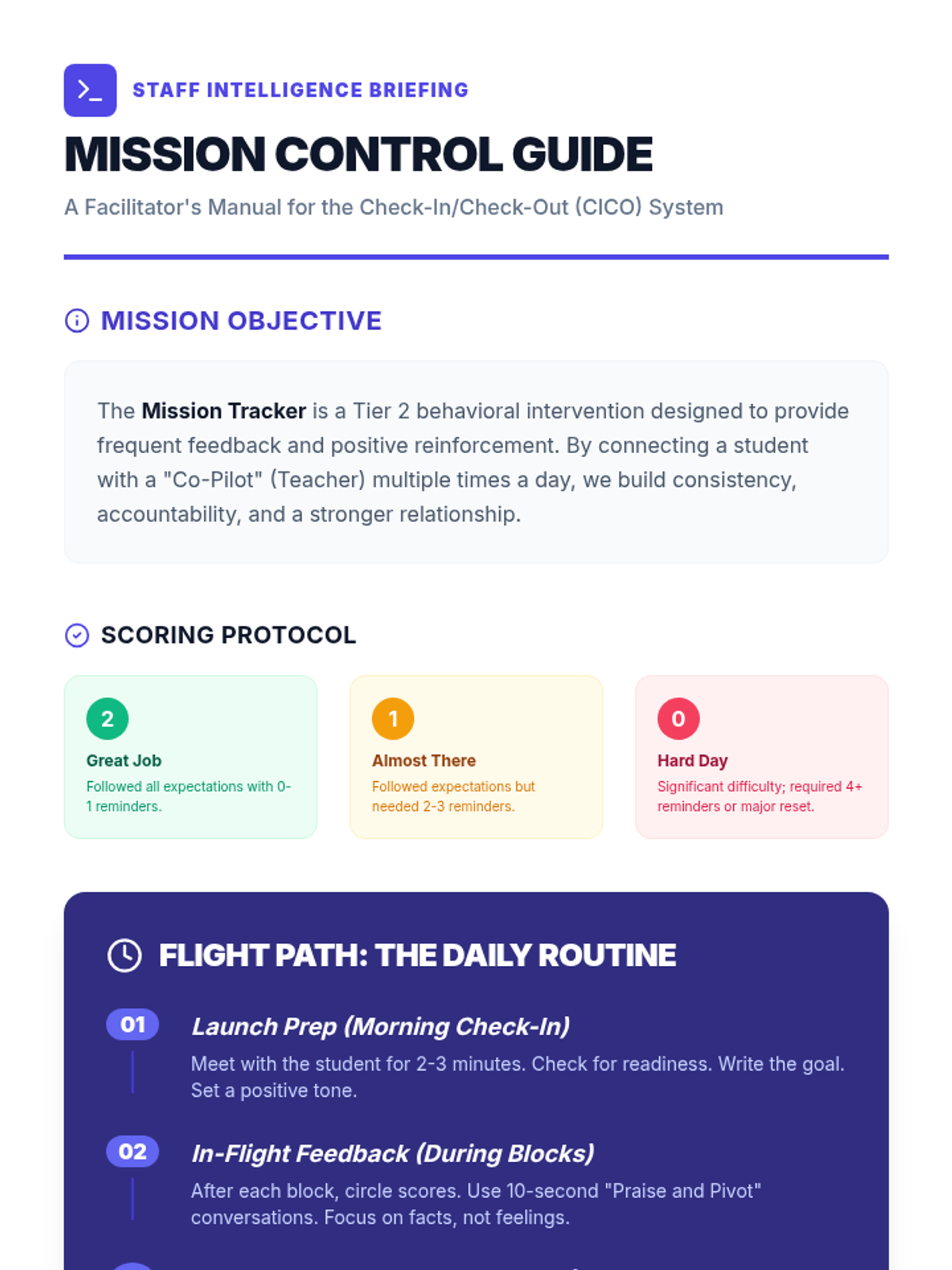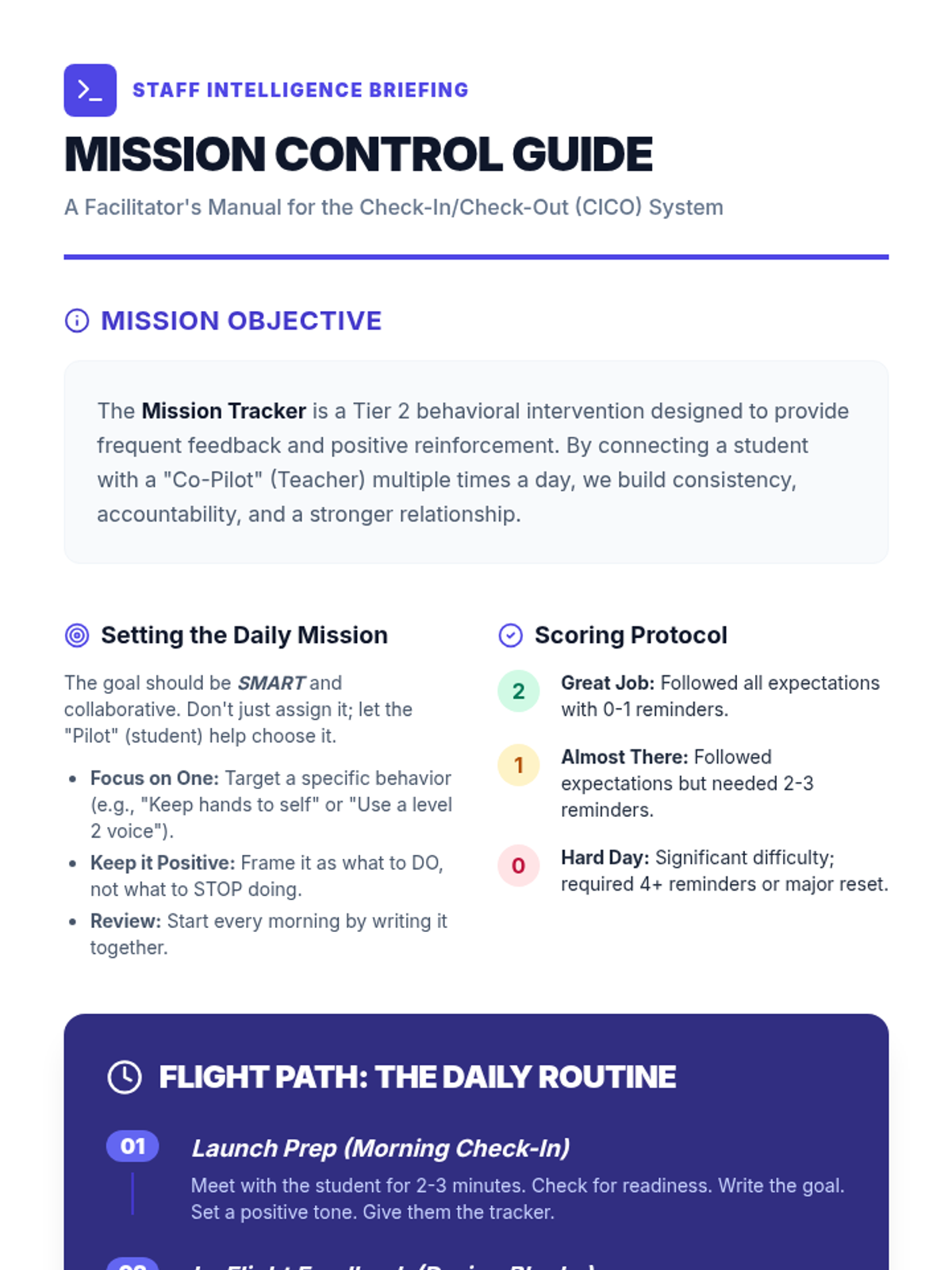A set of tools to support a student's daily behavioral goals through a consistent check-in/check-out system.