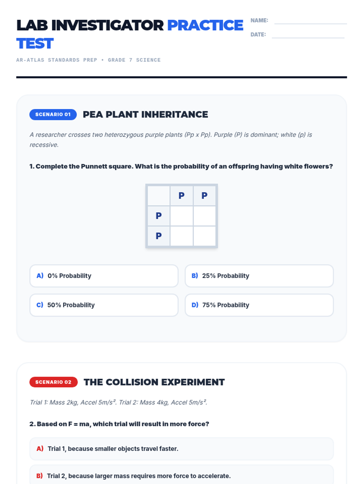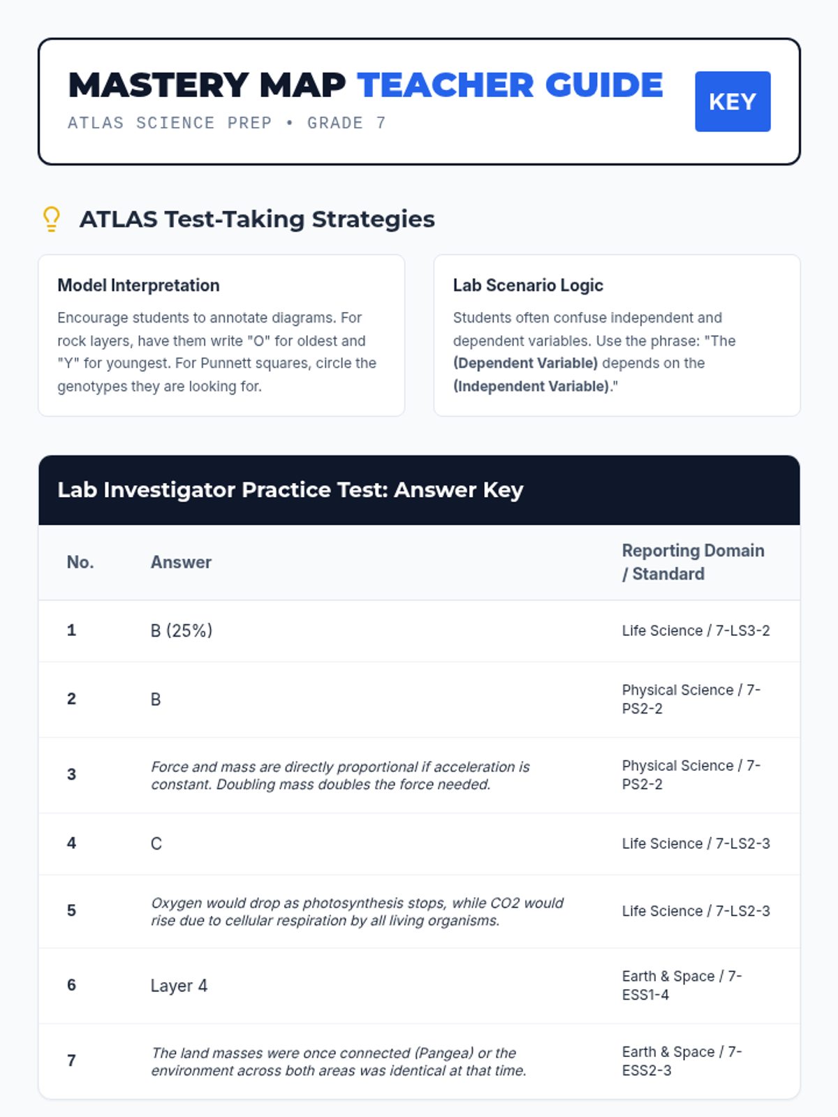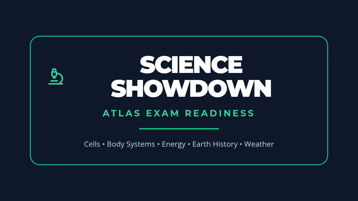 A comprehensive test preparation lesson for Grade 7 Science, specifically aligned to the Arkansas ATLAS assessment. It covers heredity, ecosystems, forces, and Earth's history through model-based reasoning and lab scenarios.