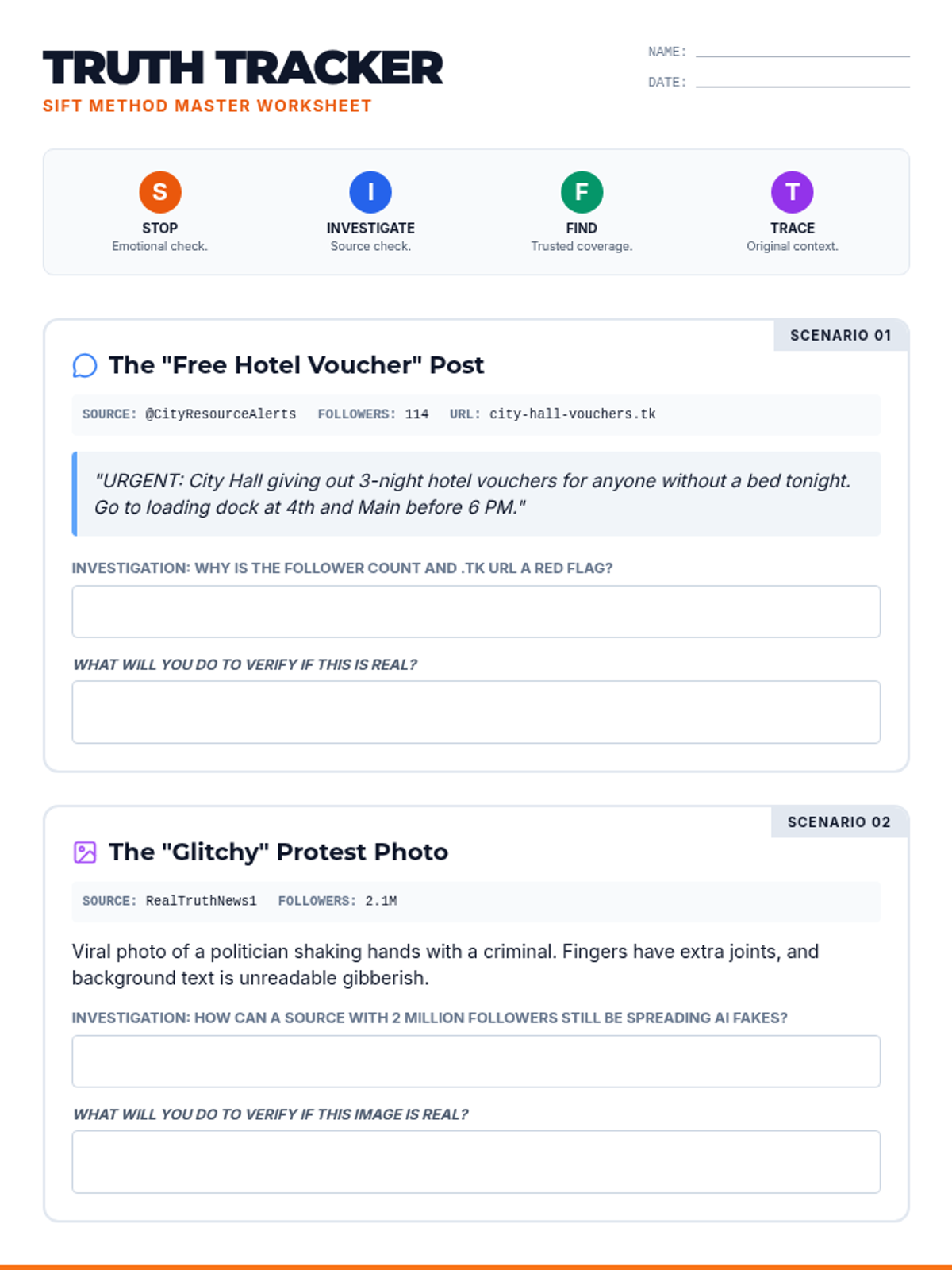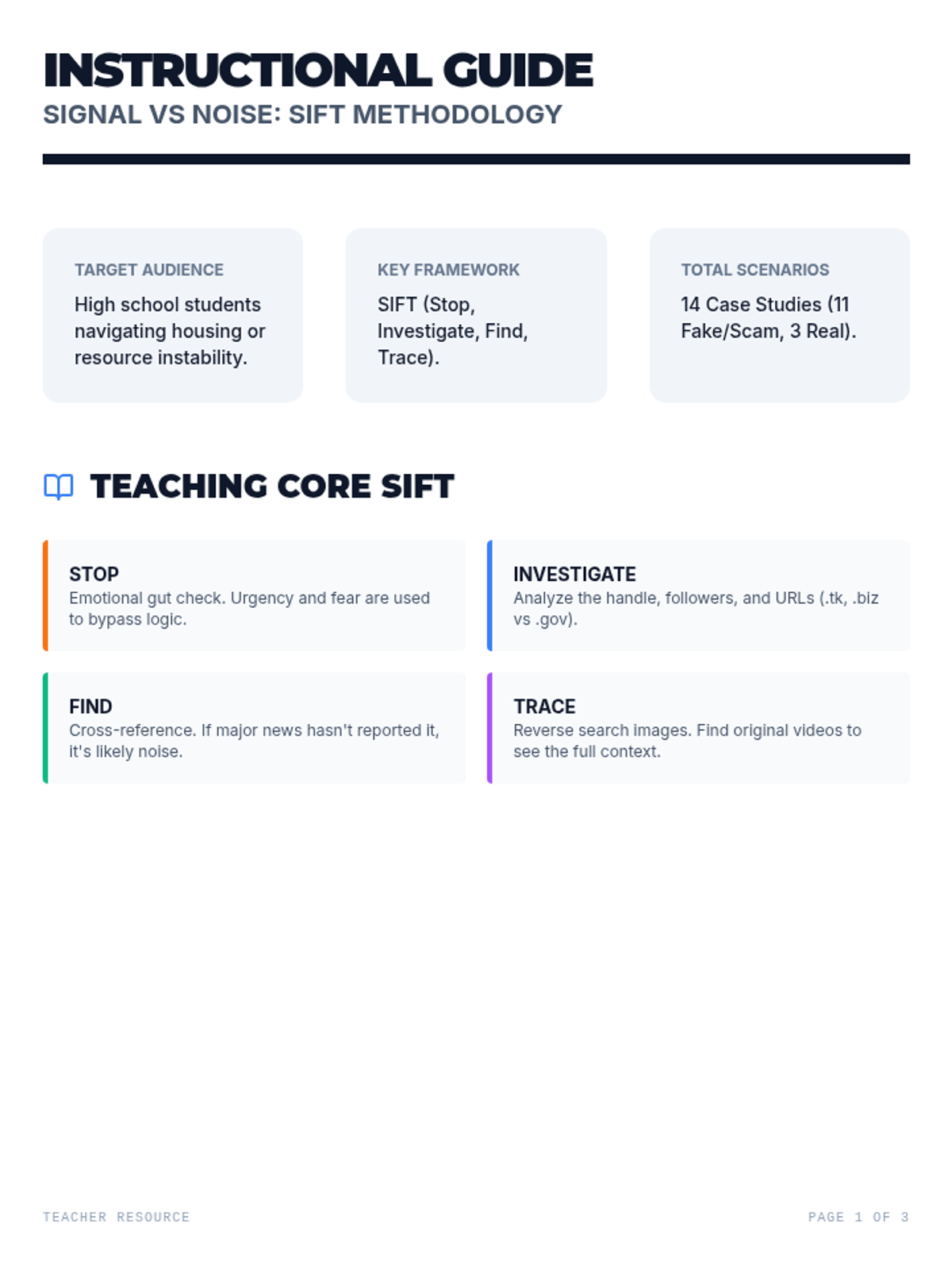 A lesson designed to empower high school students with the tools to navigate digital misinformation, focusing on the SIFT method, identifying emotional bias, and spotting sponsored content.