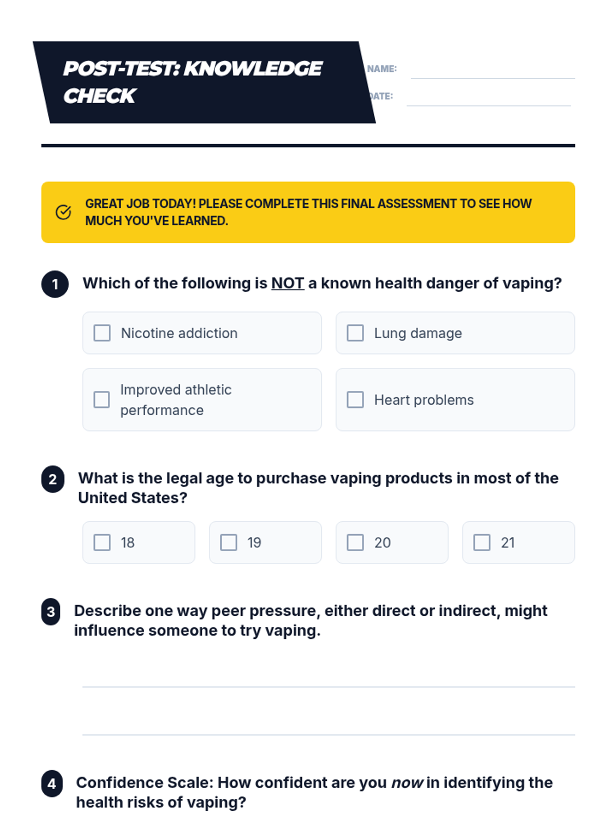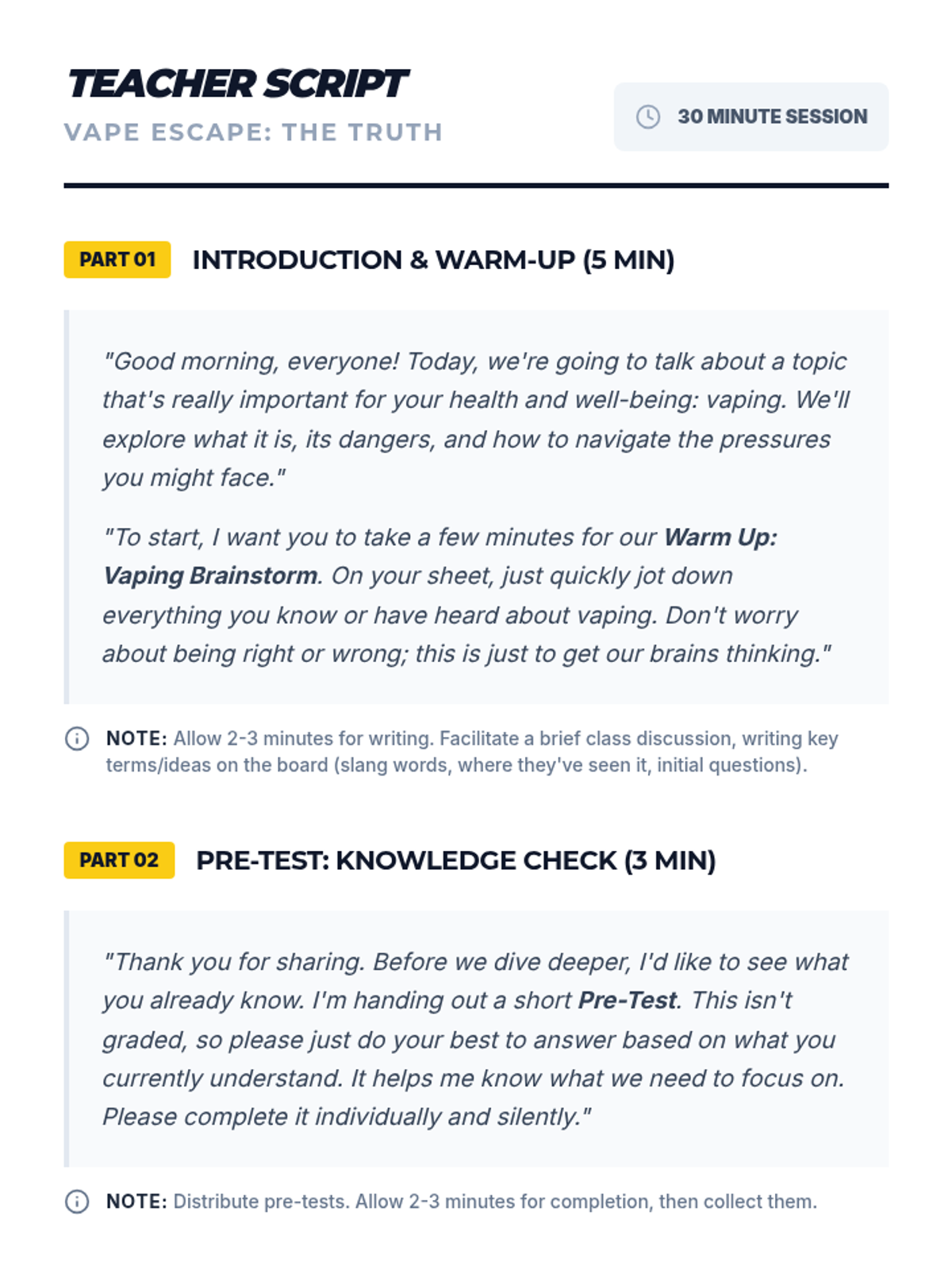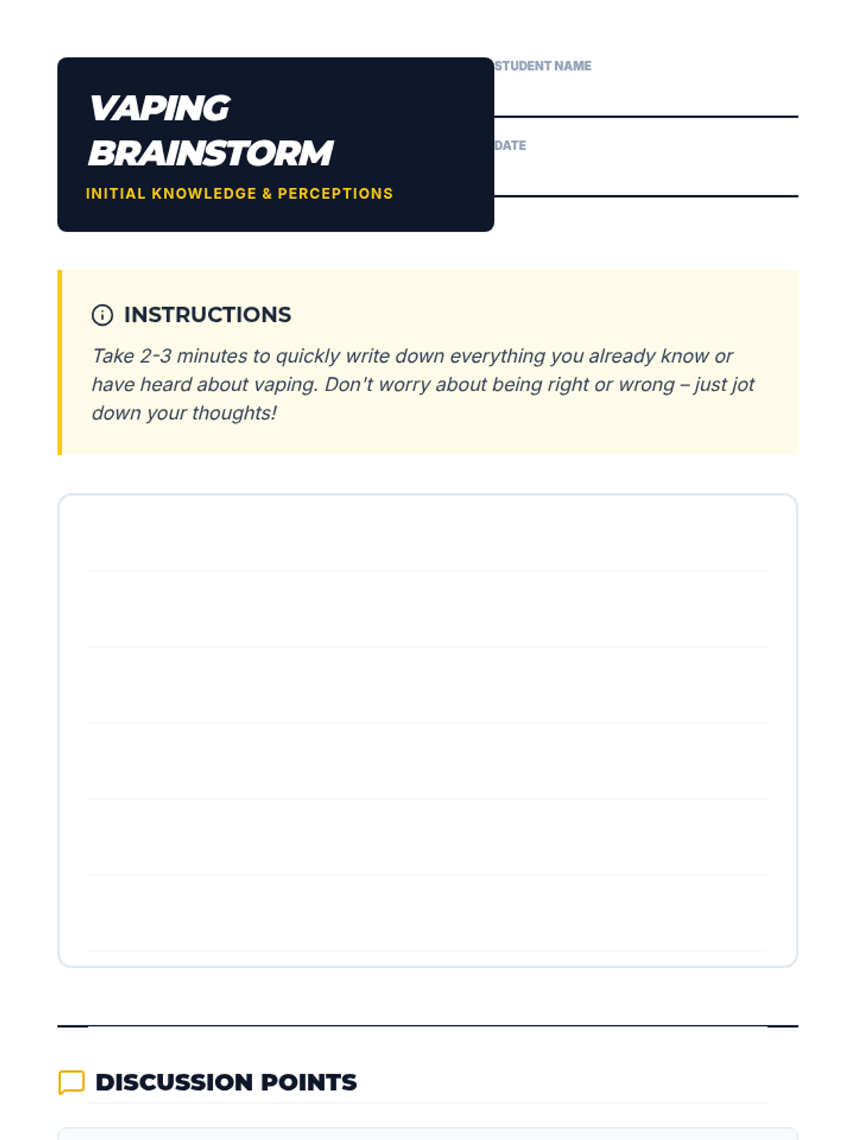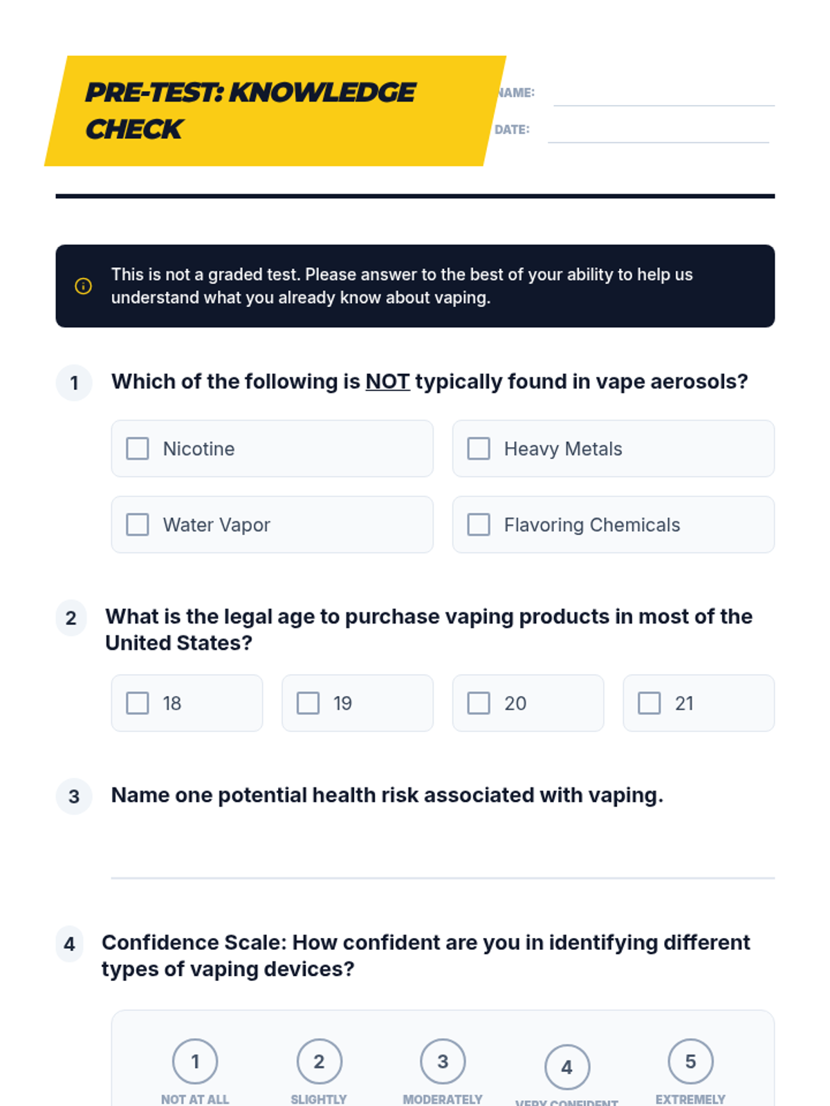 This lesson educates 9th-grade students on the serious dangers of vaping, the pressures of peer influence, the various types of vaping products, and the legal restrictions for youth under 21. It aims to equip students with crucial knowledge to make informed decisions regarding their health and well-being.