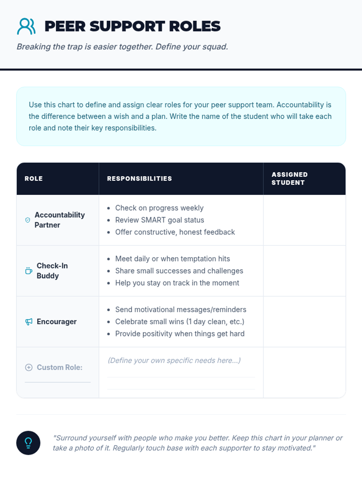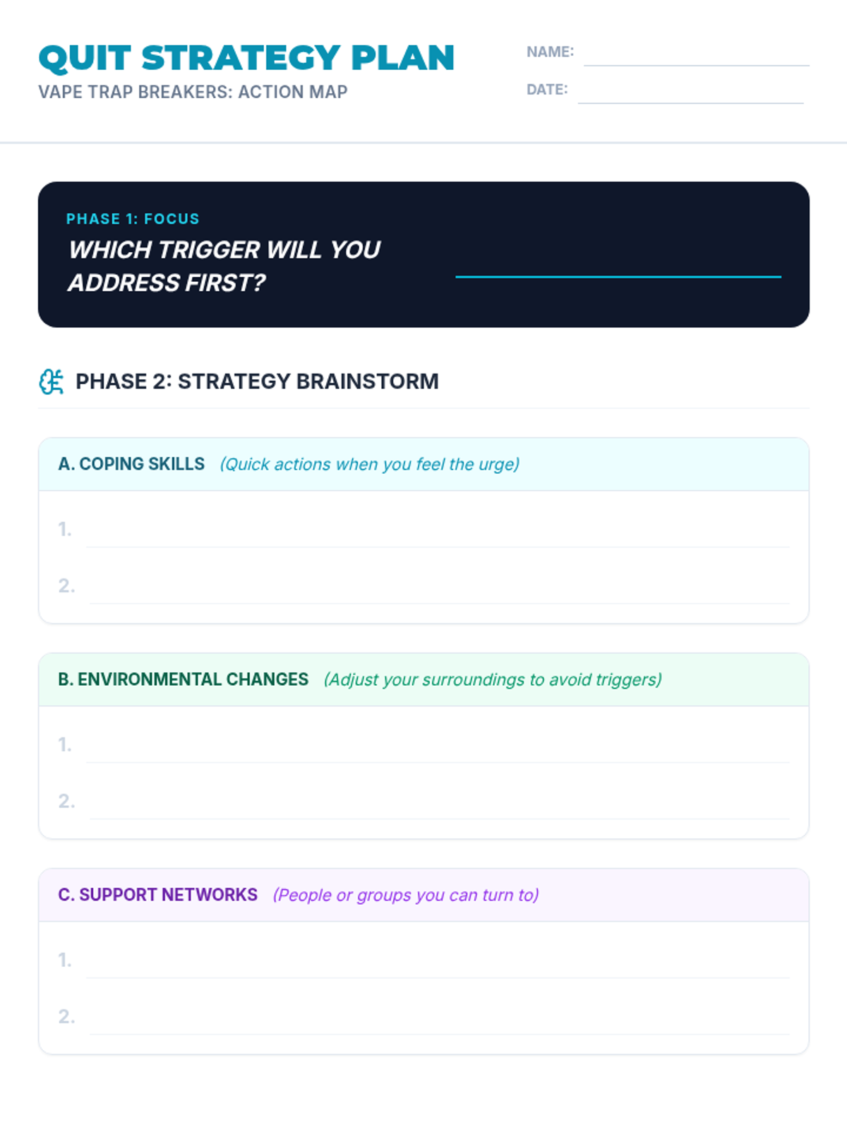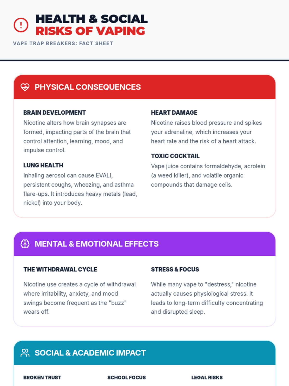 A 45-minute Tier 2 intervention for 10th graders to identify vaping risks, personal triggers, and actionable quit strategies through peer support and reflection.