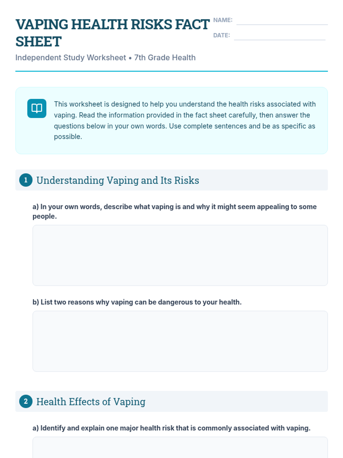 A self-guided exploration for 7th graders into the health risks and societal pressures of vaping, empowering them to make informed, healthy decisions.
