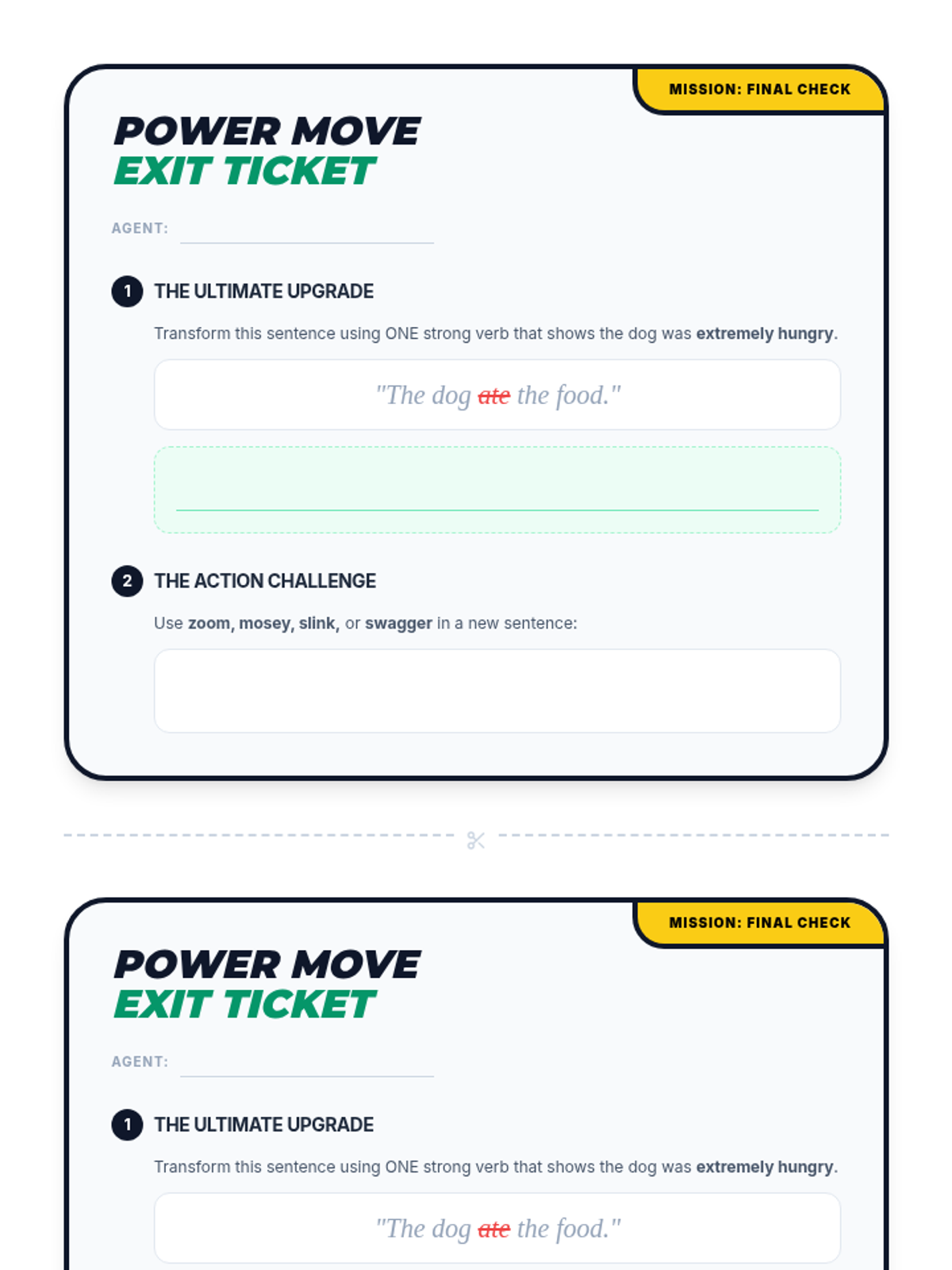 A high-stakes grammar escape room where students act as secret agents to solve mysteries using their knowledge of parts of speech and subject-verb agreement.
