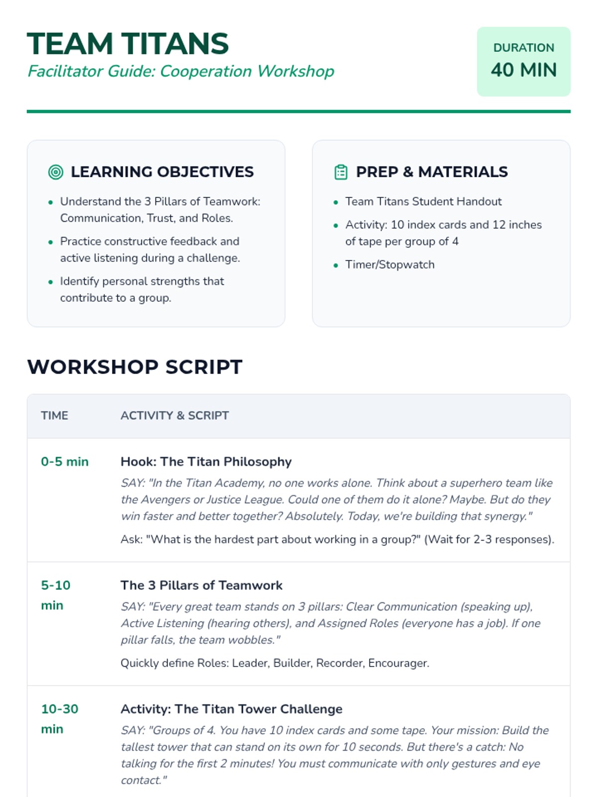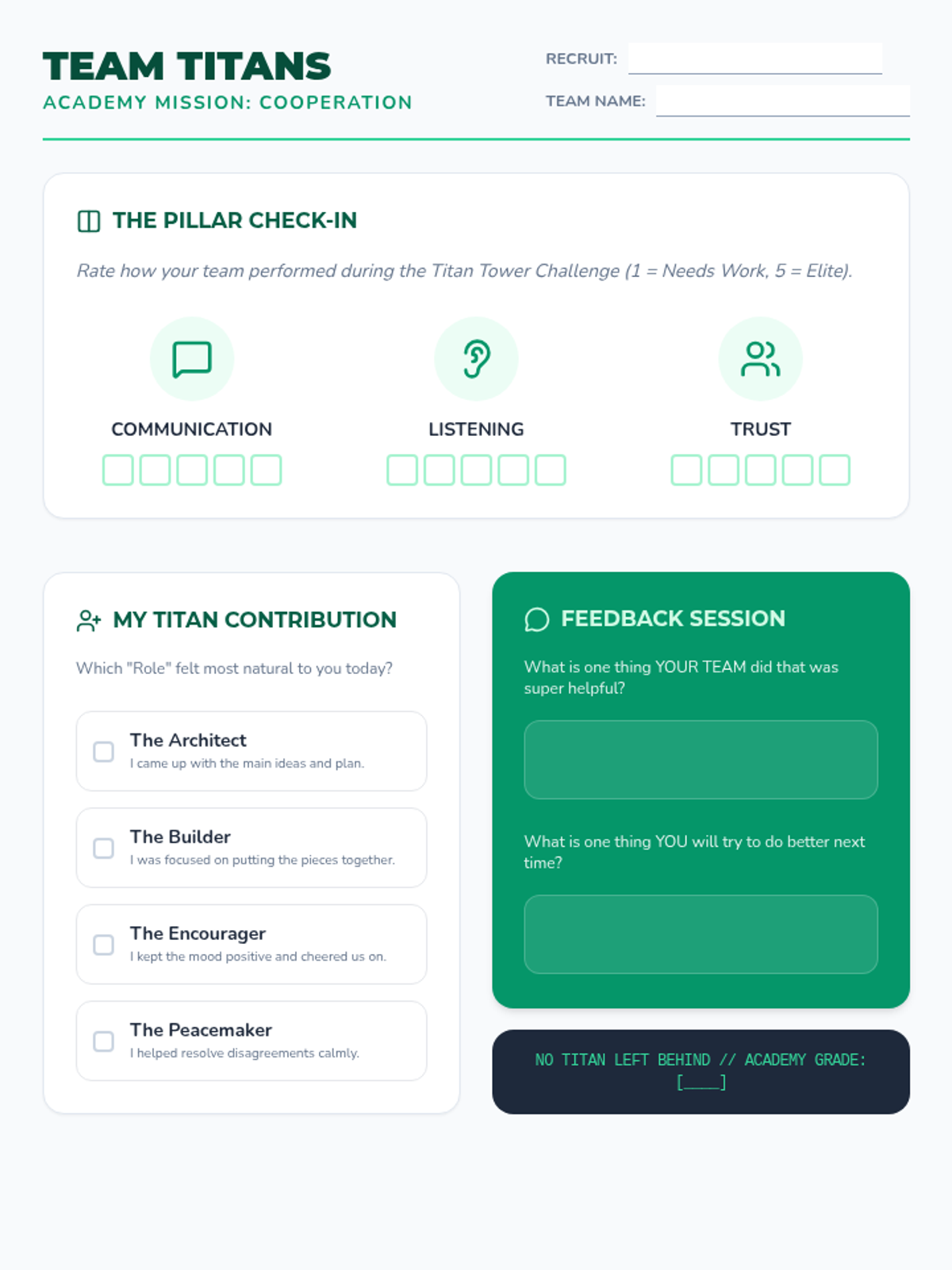 An active workshop centered on teamwork, effective communication, and collaborative problem-solving. Students engage in physical and creative challenges that require collective effort and role-sharing.