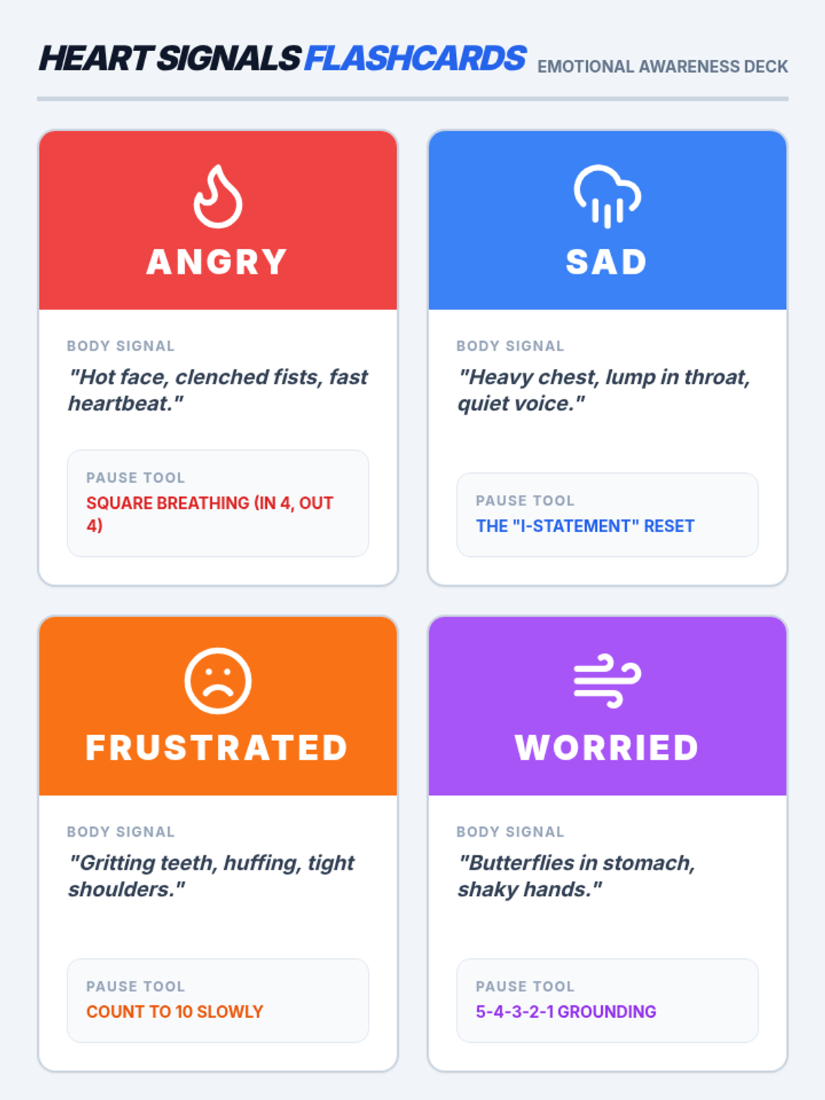 A lesson focused on emotional regulation, helping students identify the physical signs of anger and sadness and use calming strategies to prevent hurtful speech.