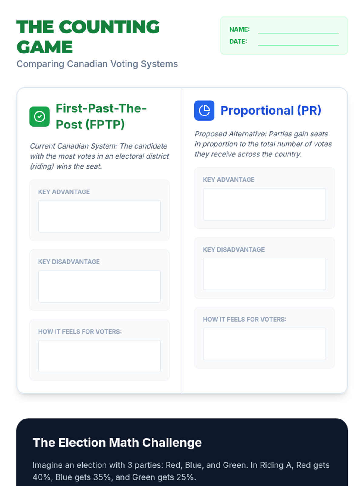 Apply knowledge of governance and political issues by designing a new Canadian political party.