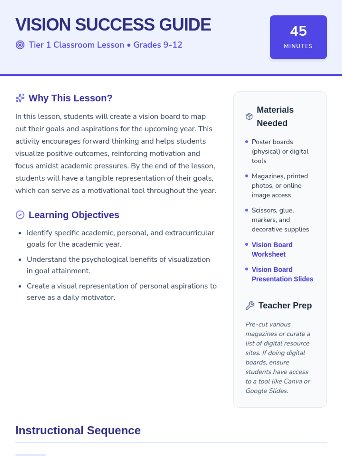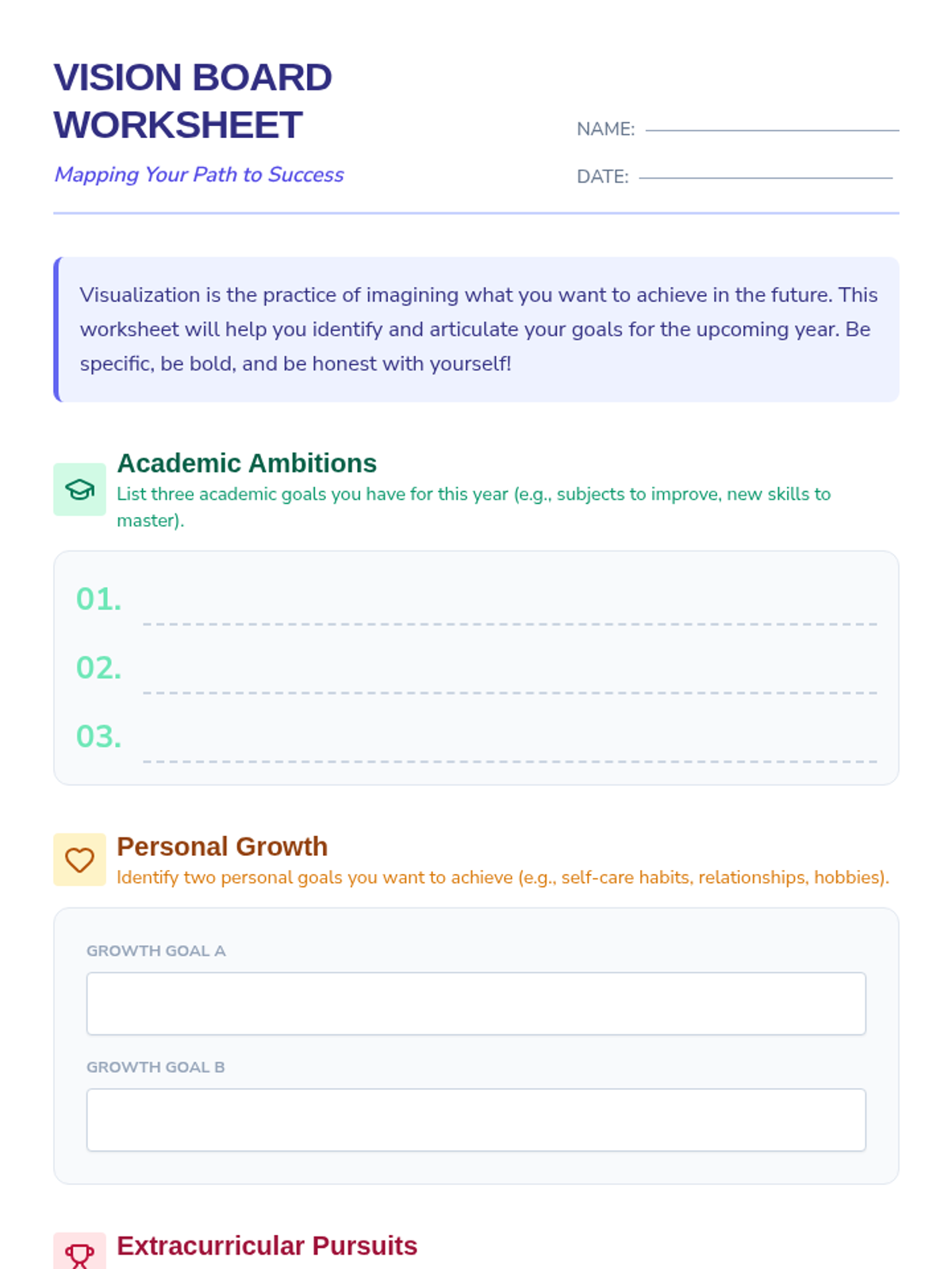 Students will explore the power of visualization by setting personal and academic goals and creating a physical or digital vision board to maintain focus and motivation throughout the school year.