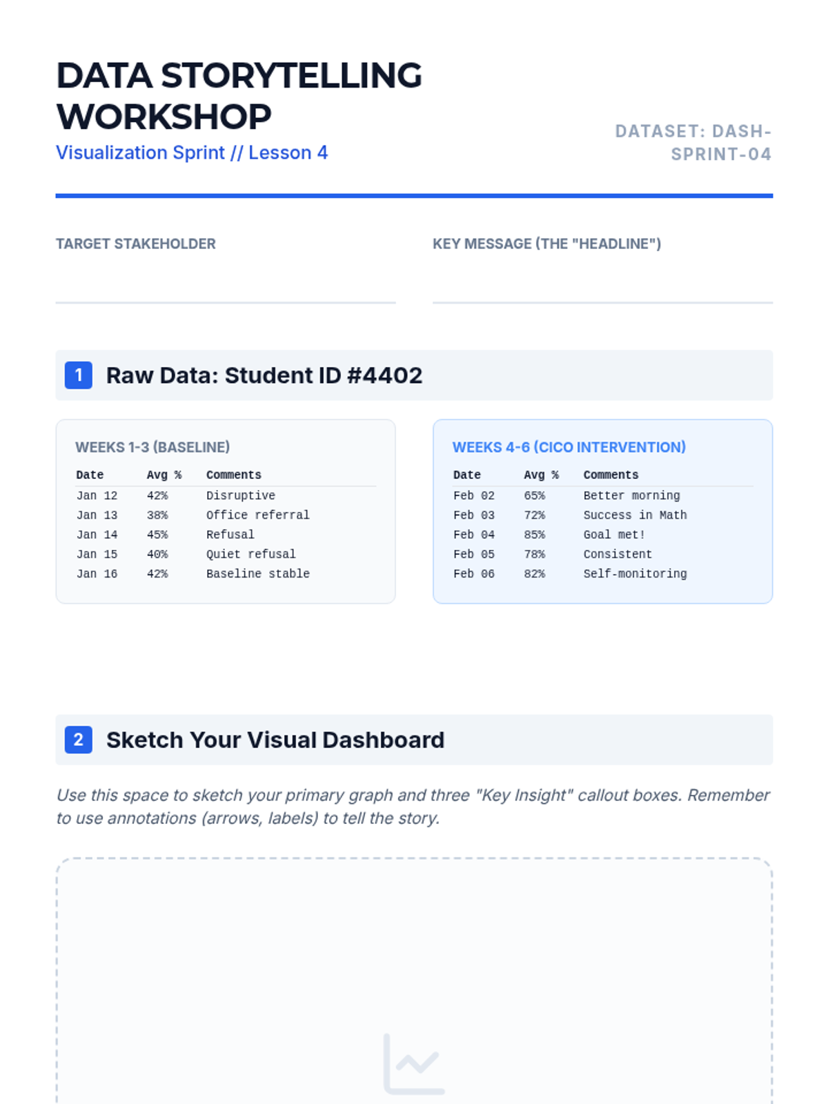 Trains students in transforming raw behavioral data into compelling visual narratives for various stakeholders, including parents and administrators.