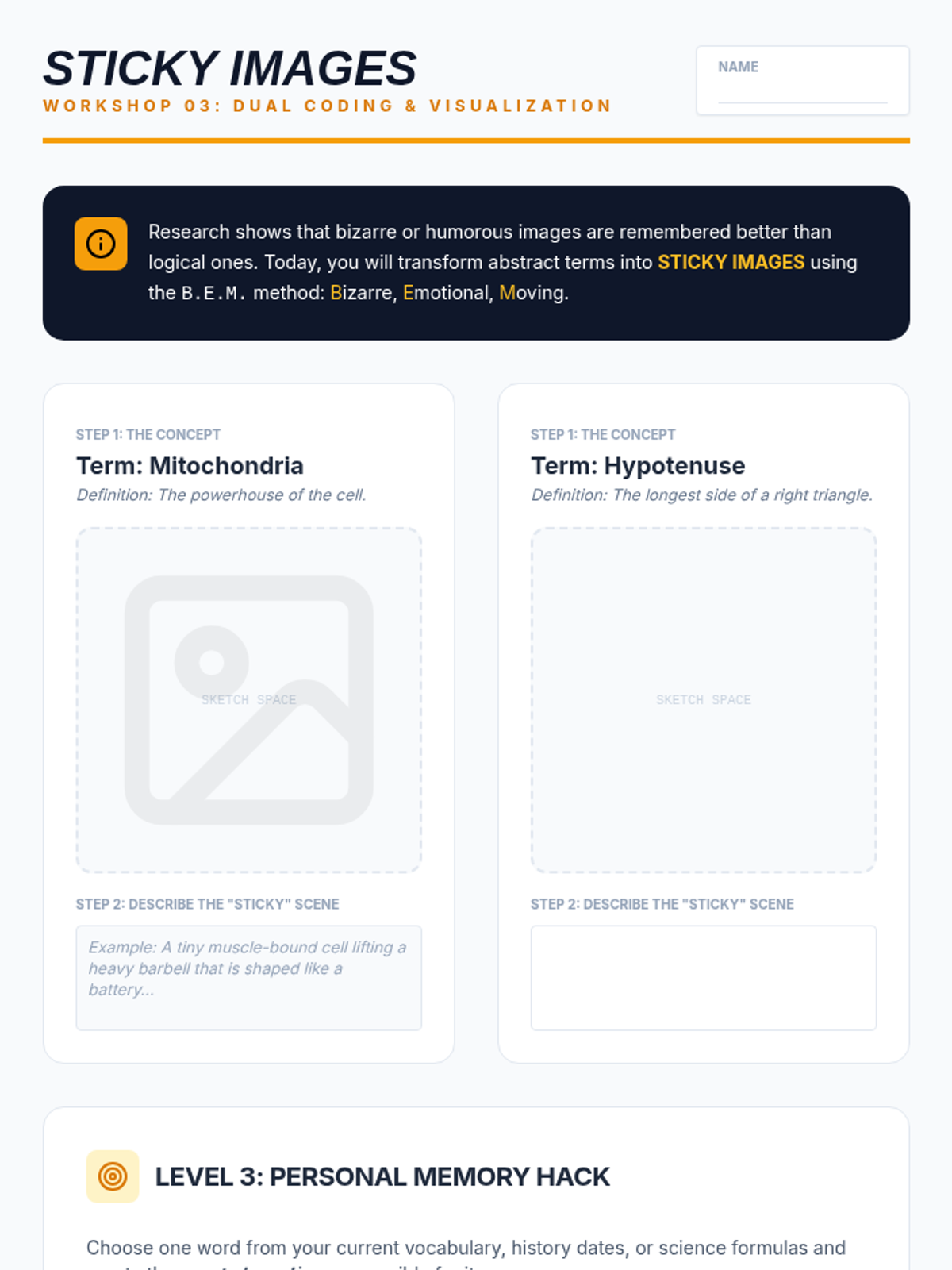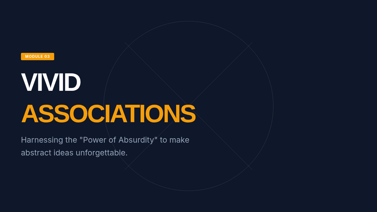 Introduces dual coding and the power of bizarre, emotional visualization. Students learn to associate abstract terms with vivid mental imagery to enhance recall through the 'Power of Absurdity.'