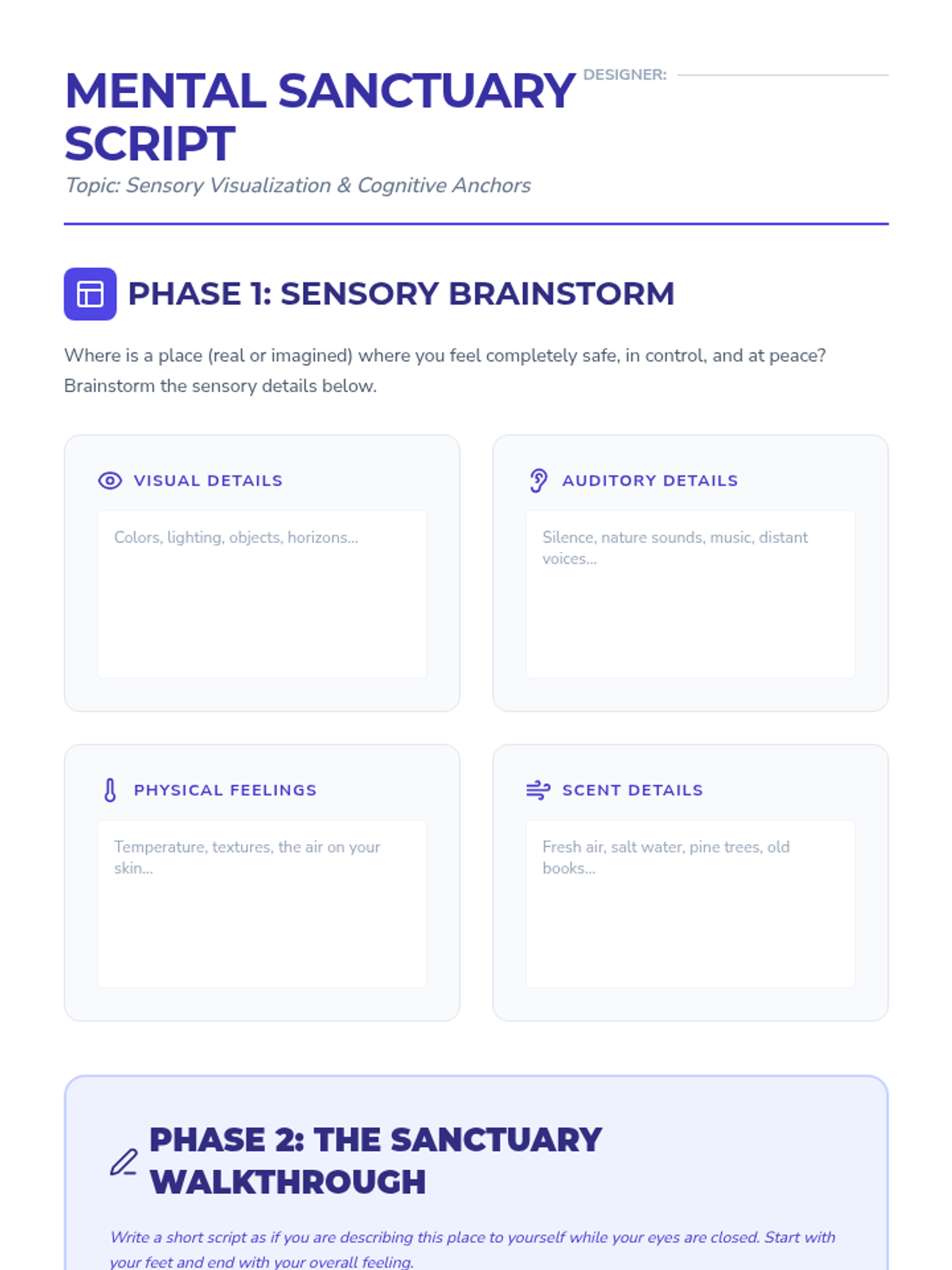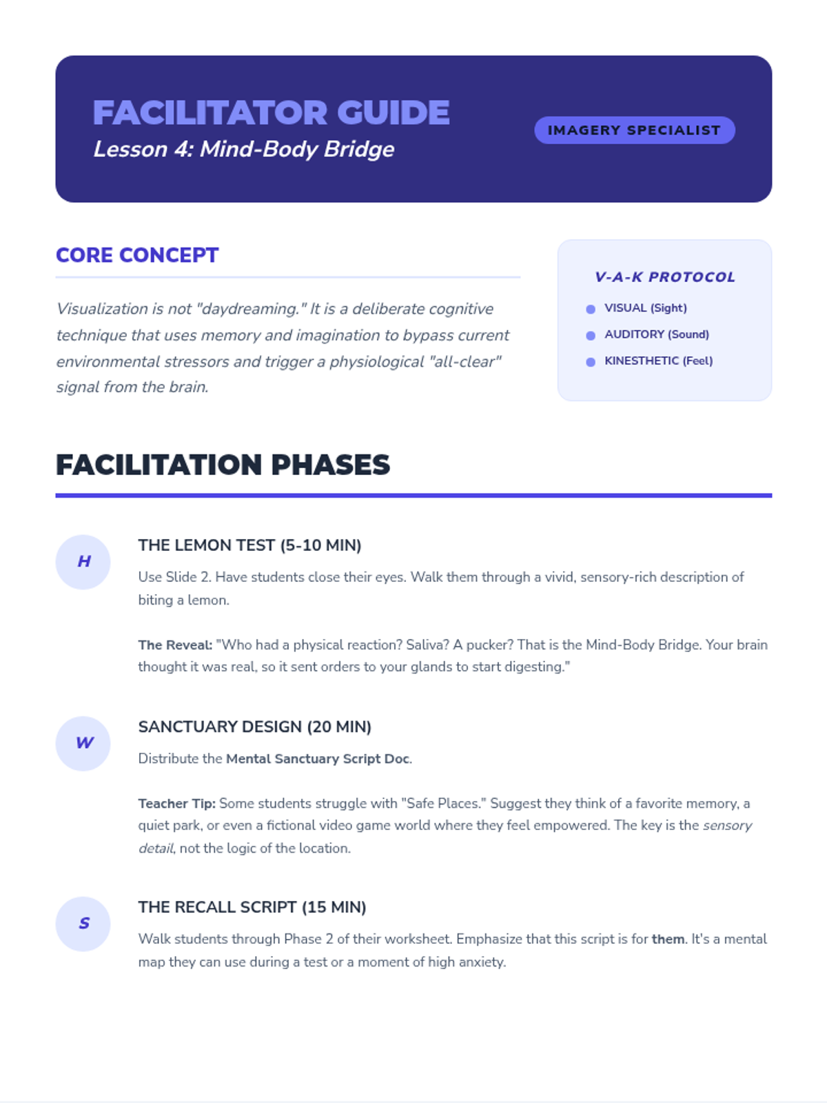 Moving beyond physical mechanics, this lesson incorporates cognitive focal points through guided imagery combined with steady breathing. Students explore how mental environments impact physical heart rate and muscle tension. They will write a short 'mental sanctuary' script that they can recall during stressful moments.