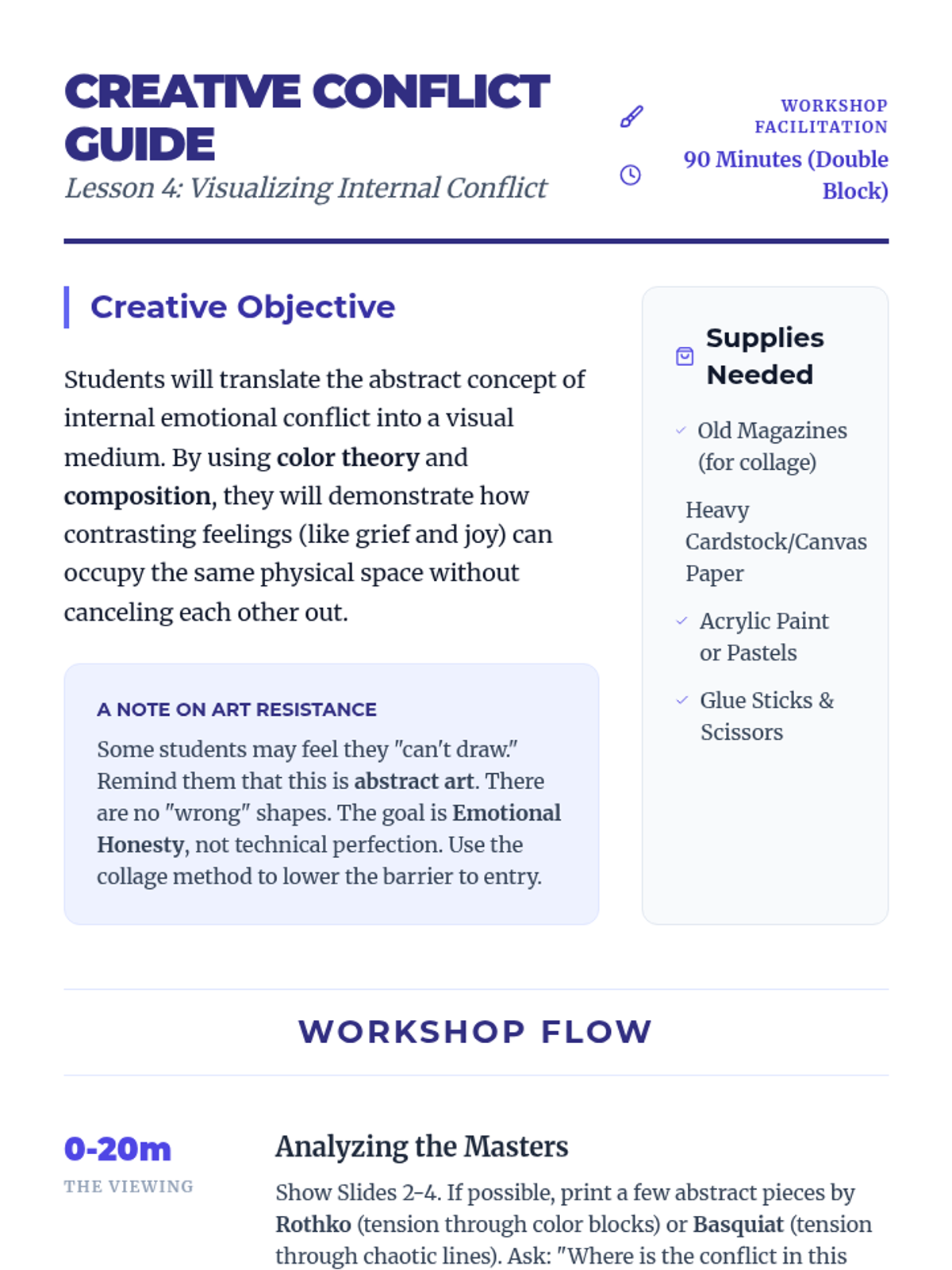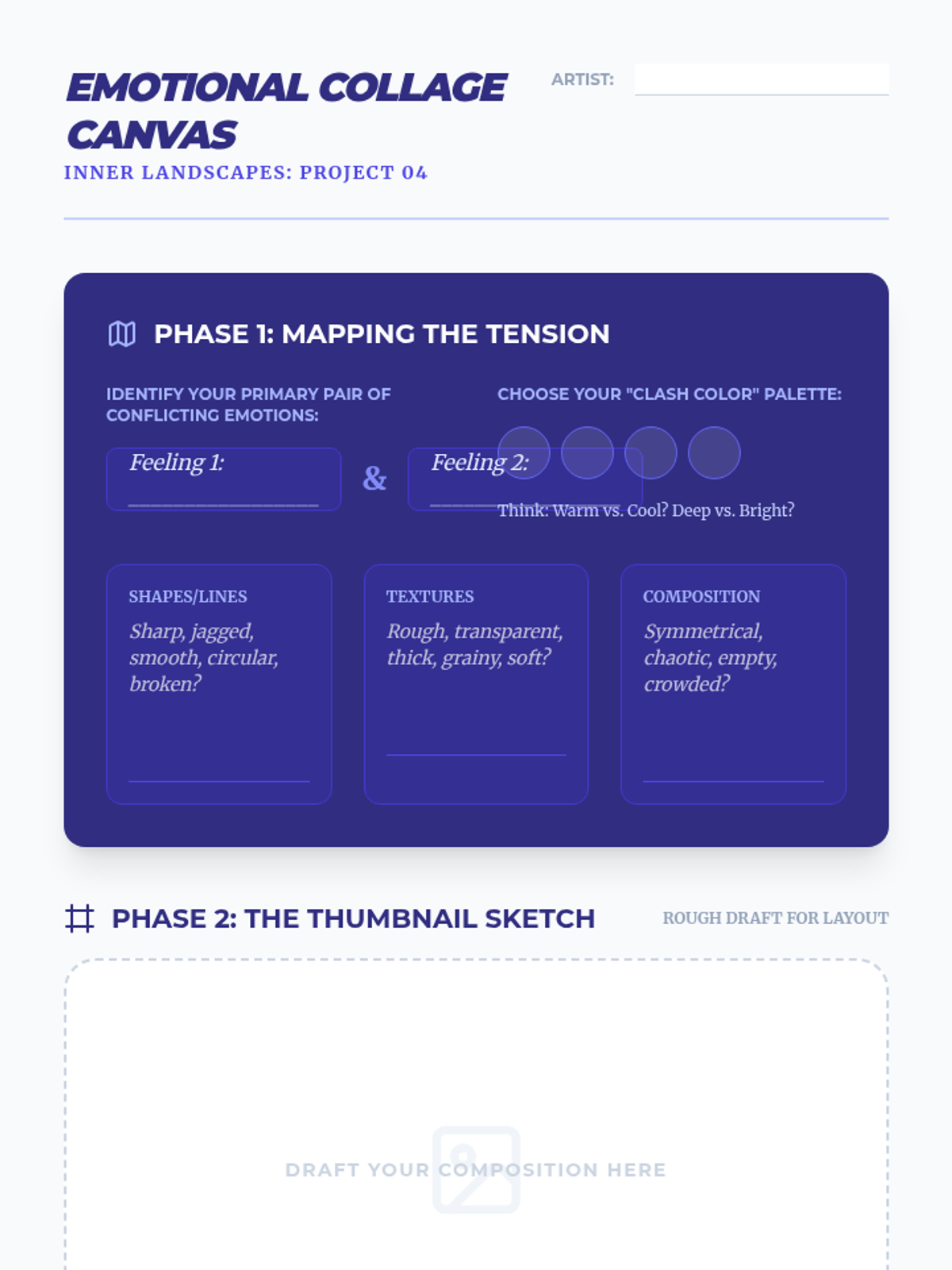 A creative workshop focused on visually representing internal emotional tension through abstract art and collage.