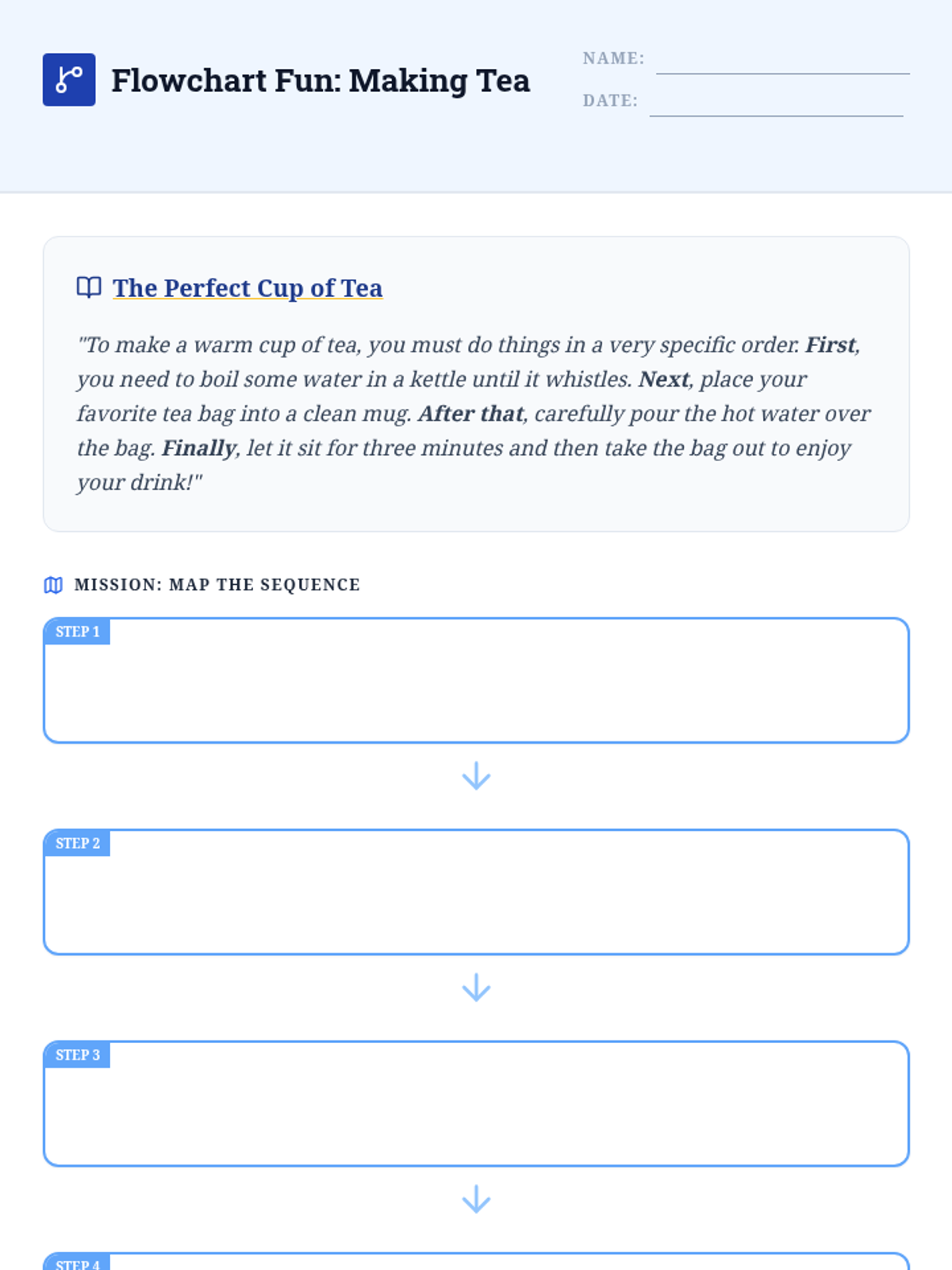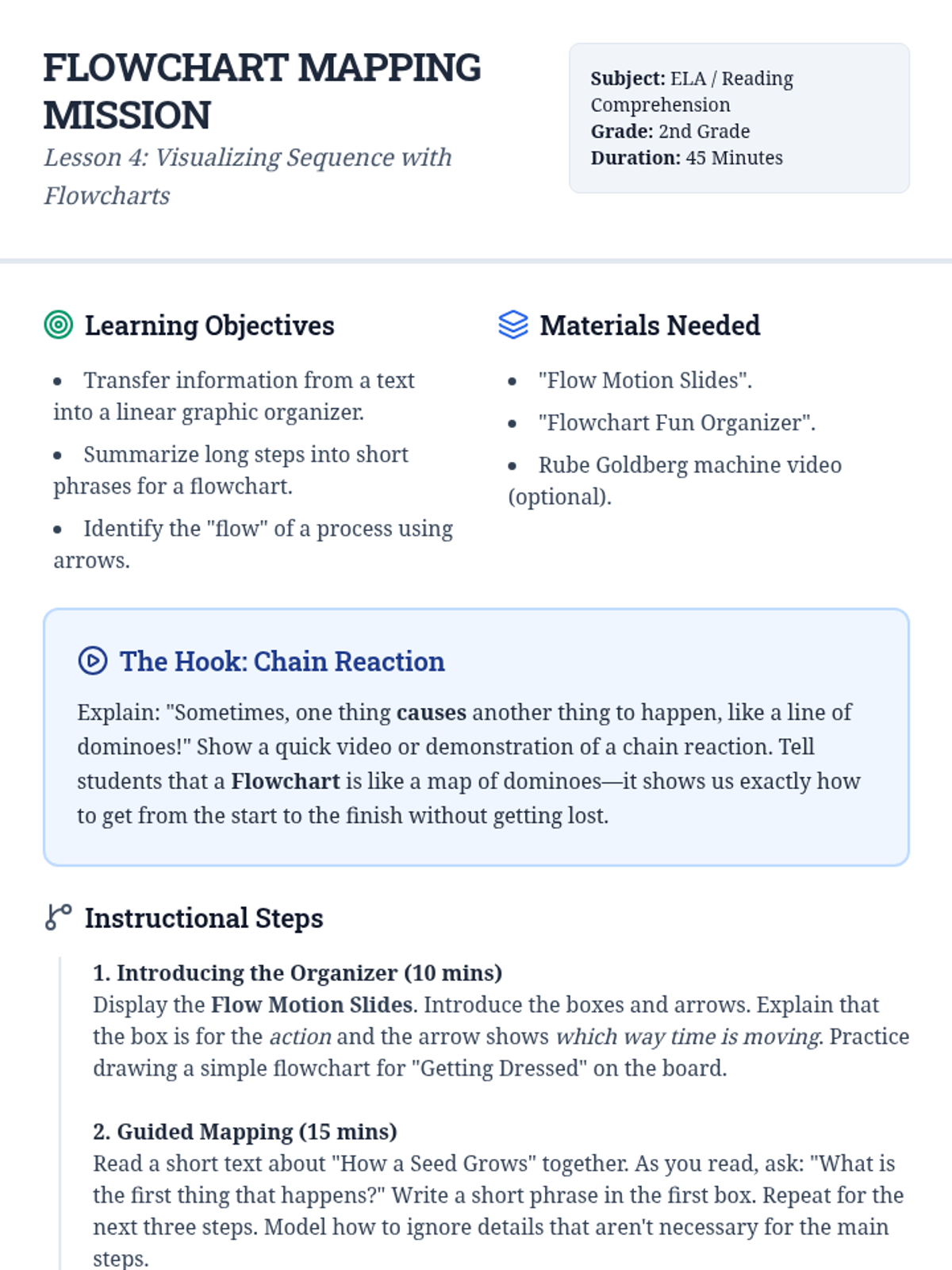 Students practice visualizing procedural steps by transferring text information into flowcharts and graphic organizers.
