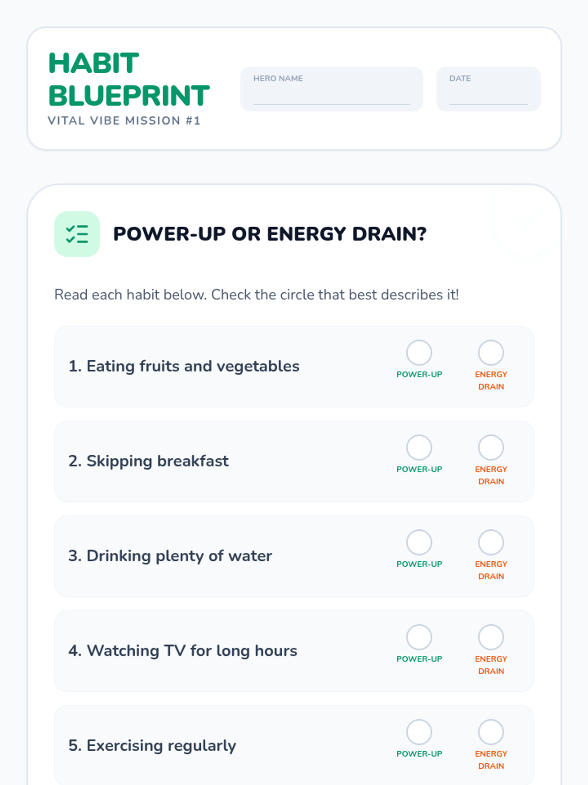 A lesson focused on helping students track and analyze their sleep patterns to understand the impact of rest on their daily energy and mood.
