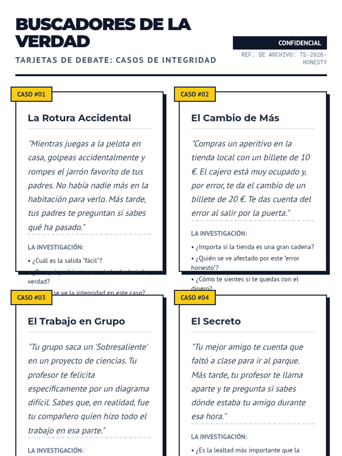 A lesson focused on the value of honesty through real-world scenarios and critical thinking exercises. Students explore what it means to be a person of integrity in difficult situations.