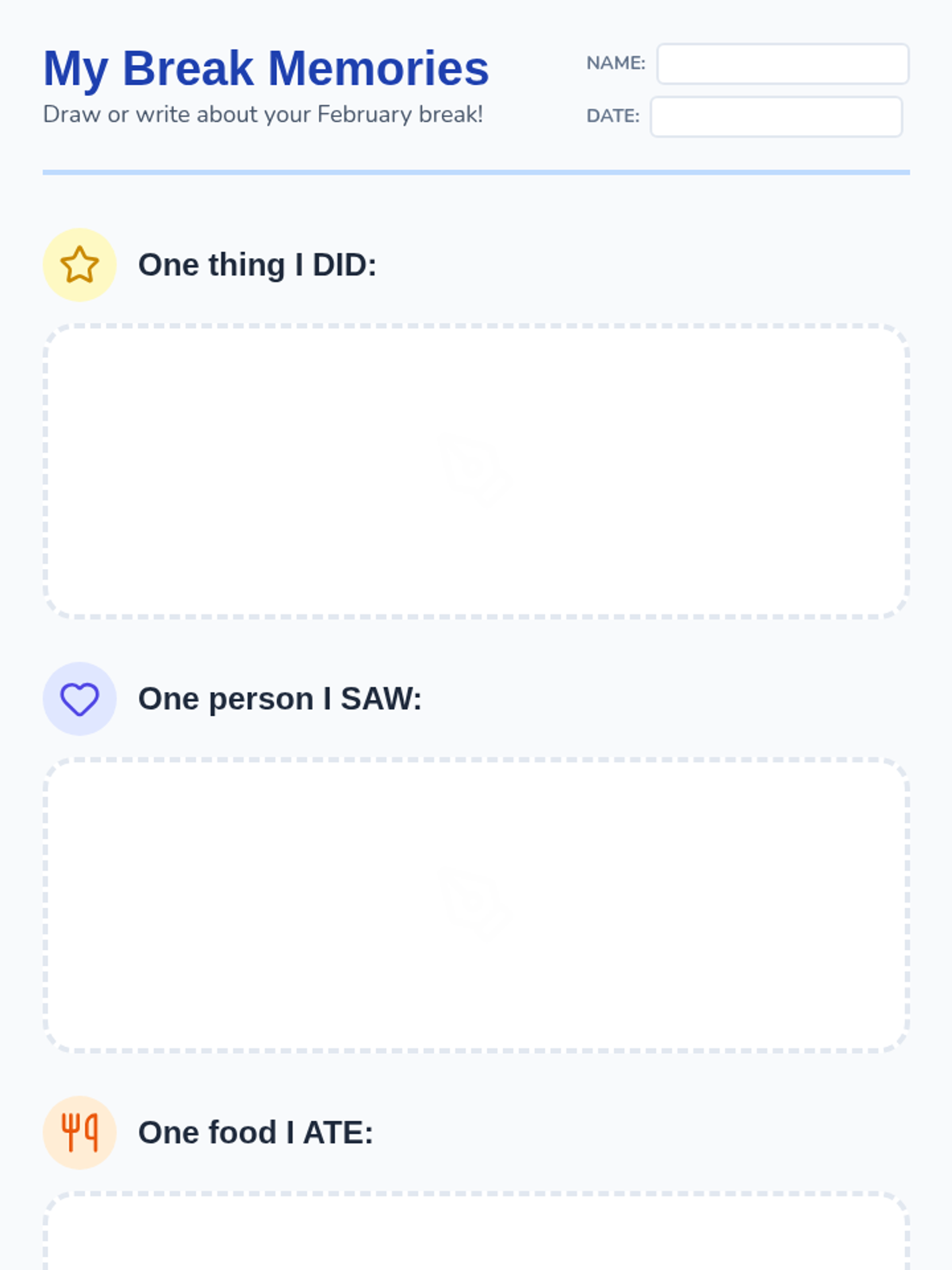 A short, interactive discussion lesson designed for 18-22 year old students with IDD to share their experiences from February break and recent snow days.