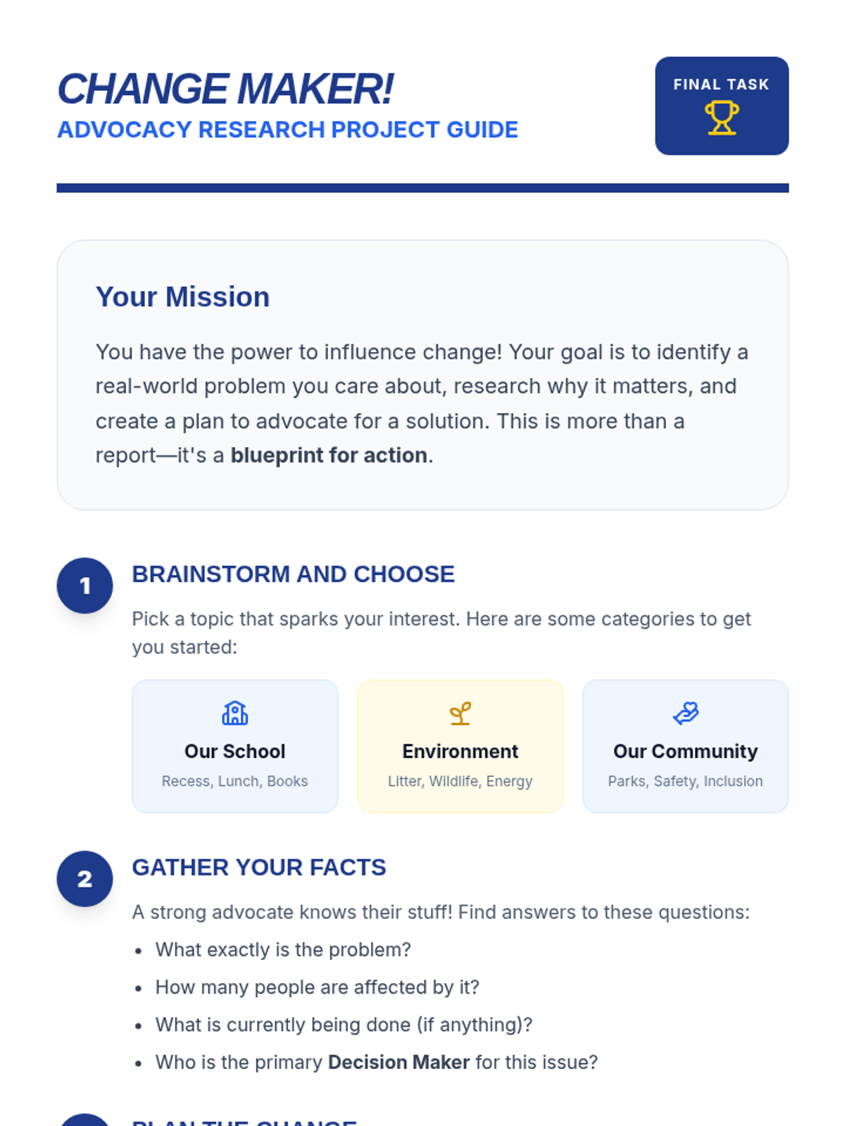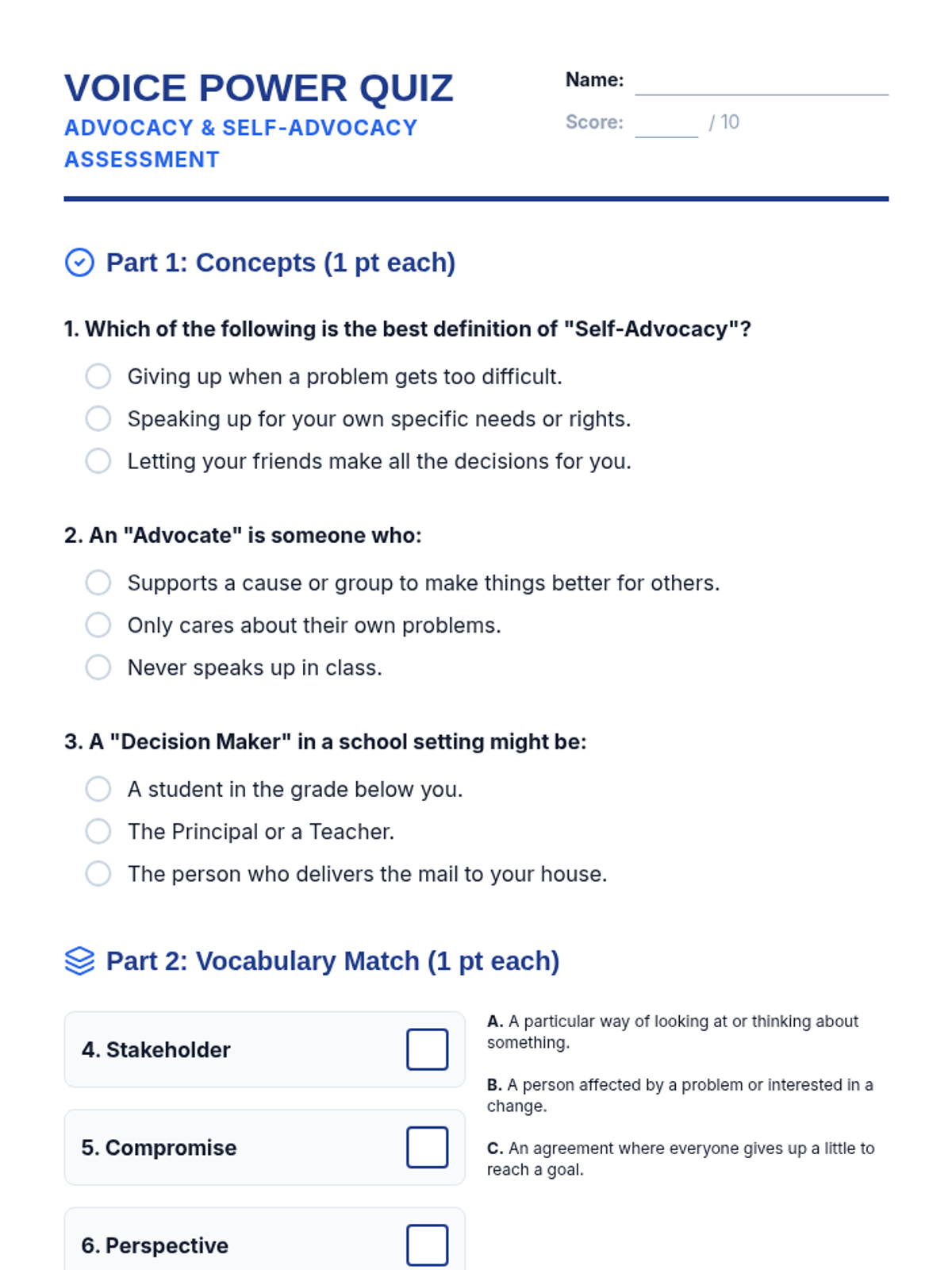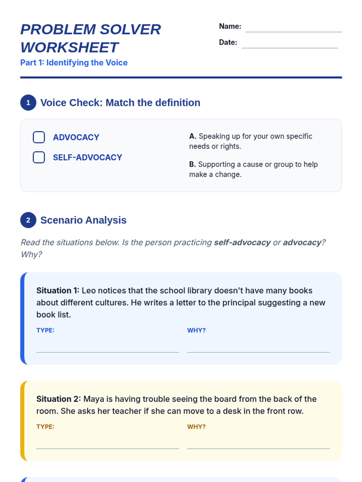 A comprehensive lesson on self-advocacy and problem-solving for 5th graders, teaching them how to use their voices to create positive change in their lives and communities.
