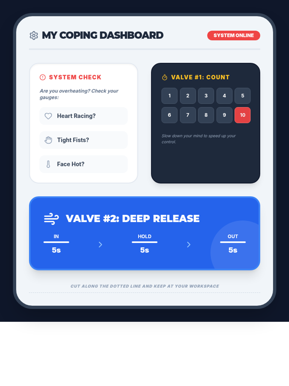 Introduction to physical coping strategies, specifically deep breathing and counting to ten, as tools for managing immediate frustration.