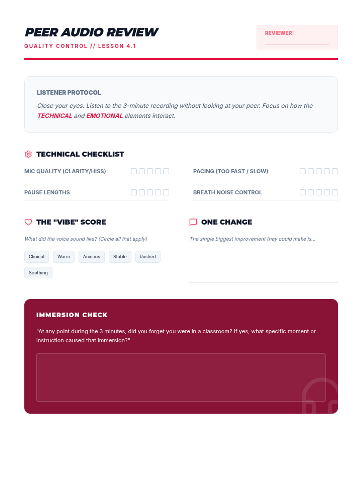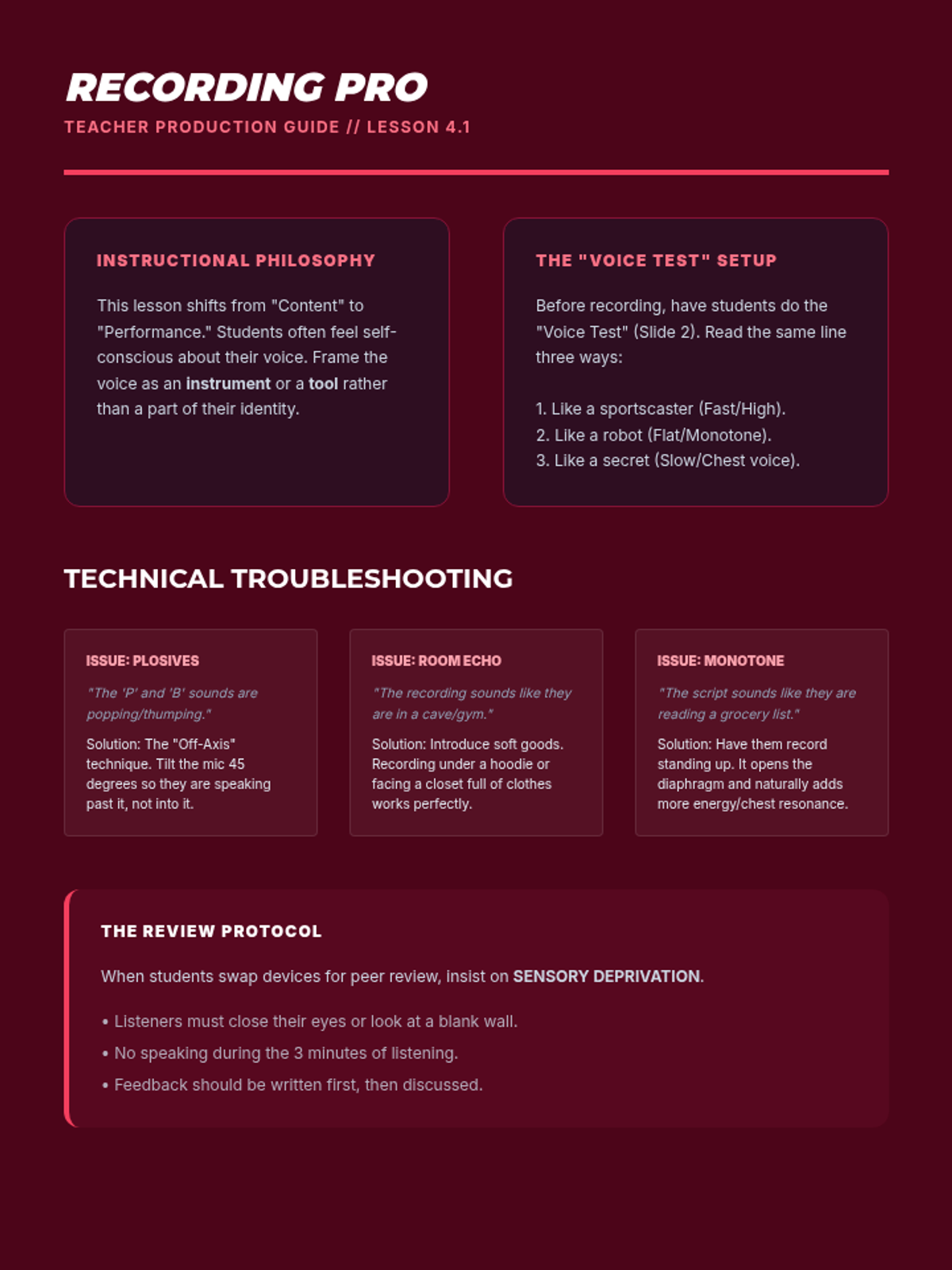 Record and refine a guided meditation, focusing on pacing, tone, and peer feedback.