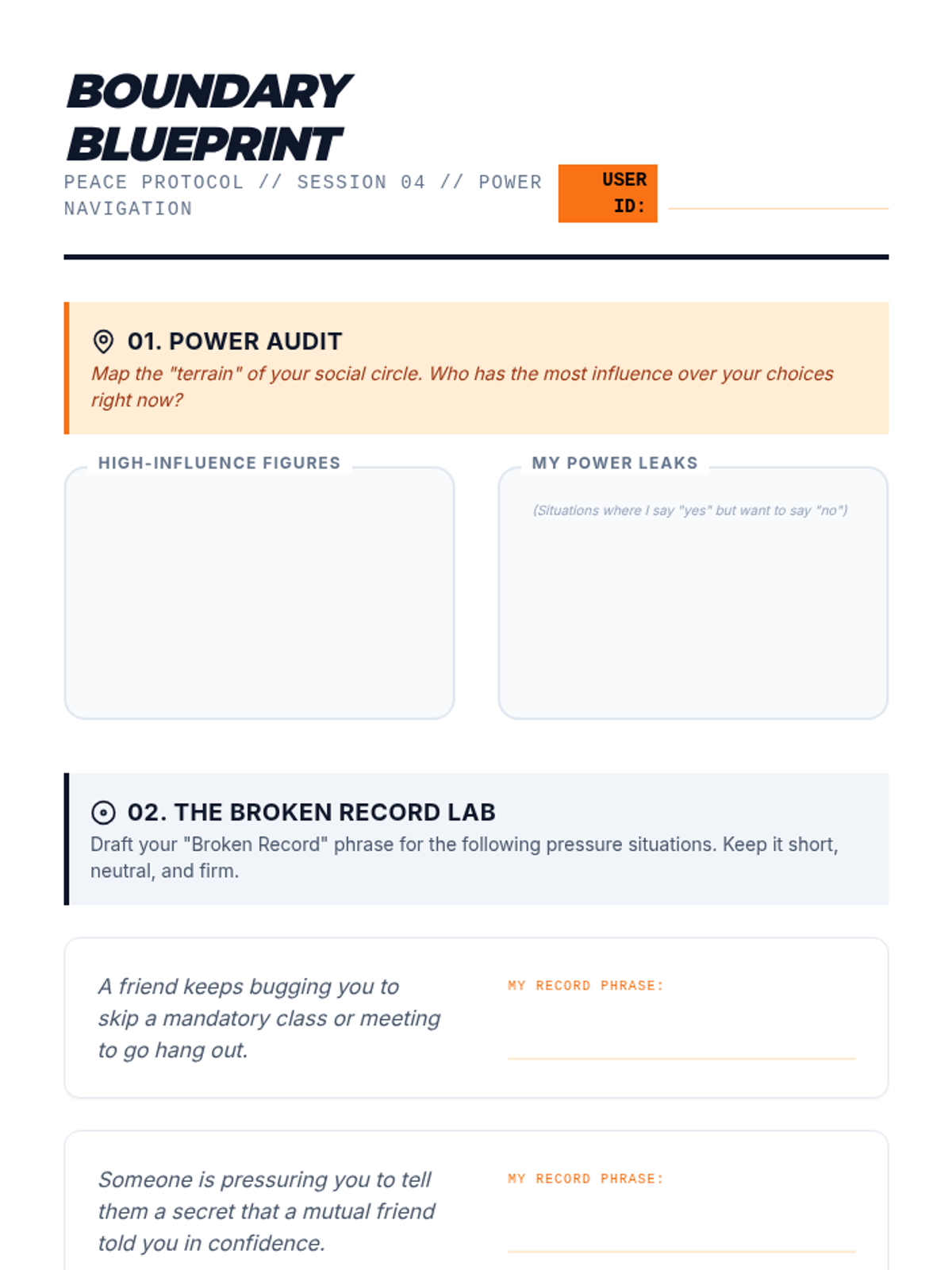 A mindfulness group therapy session for high school girls focused on identifying, communicating, and maintaining healthy boundaries in relationships. Includes a facilitator guide, visual aids, and journaling prompts.