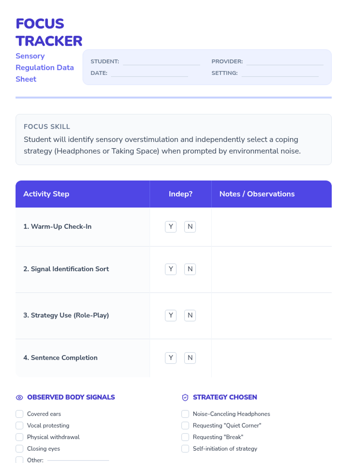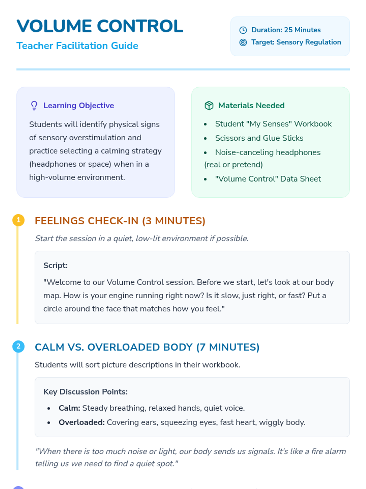 A 25-minute social-emotional learning lesson designed to help students recognize the signs of sensory overstimulation and practice proactive coping strategies like using headphones and taking space.