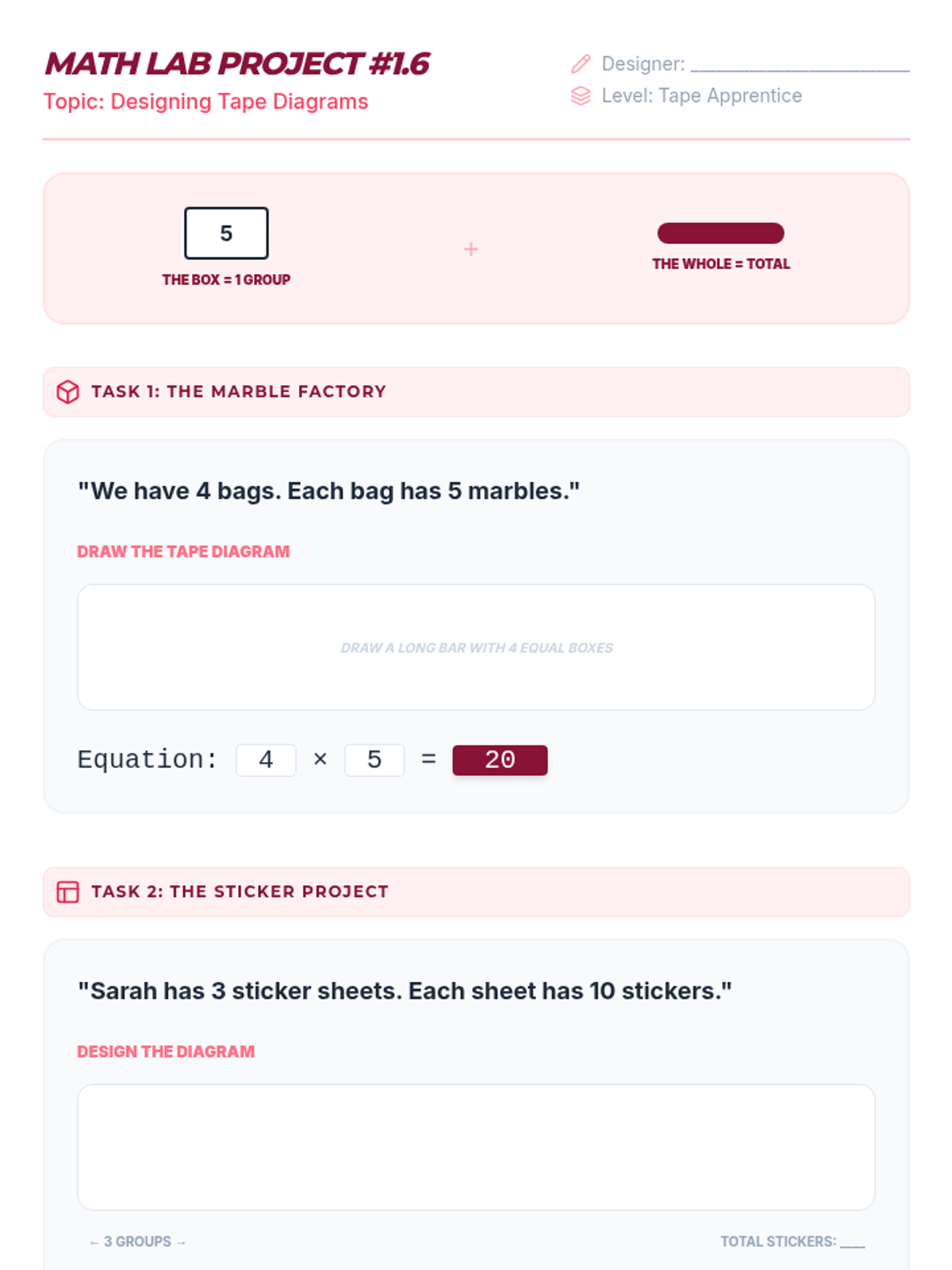 A cumulative review and hands-on design task where students apply all area skills learned in the sequence.
