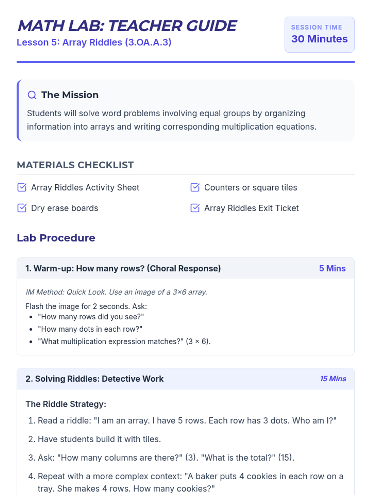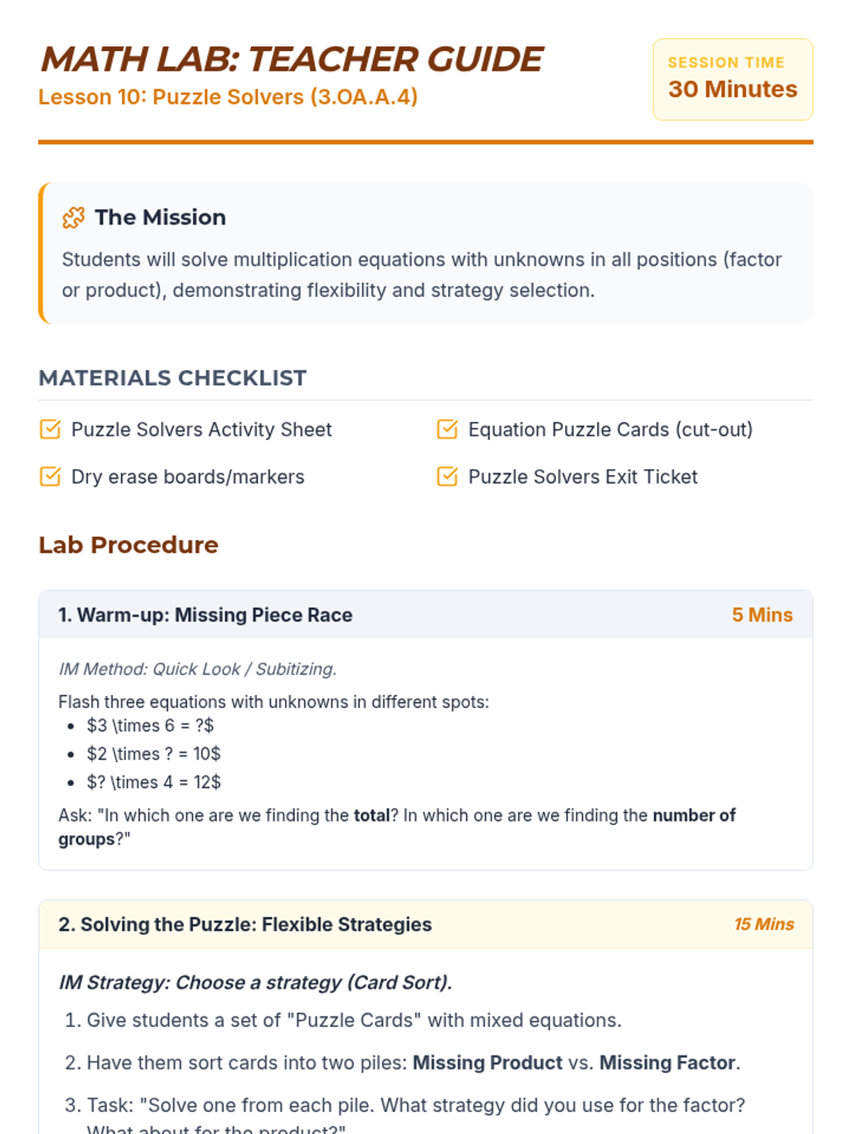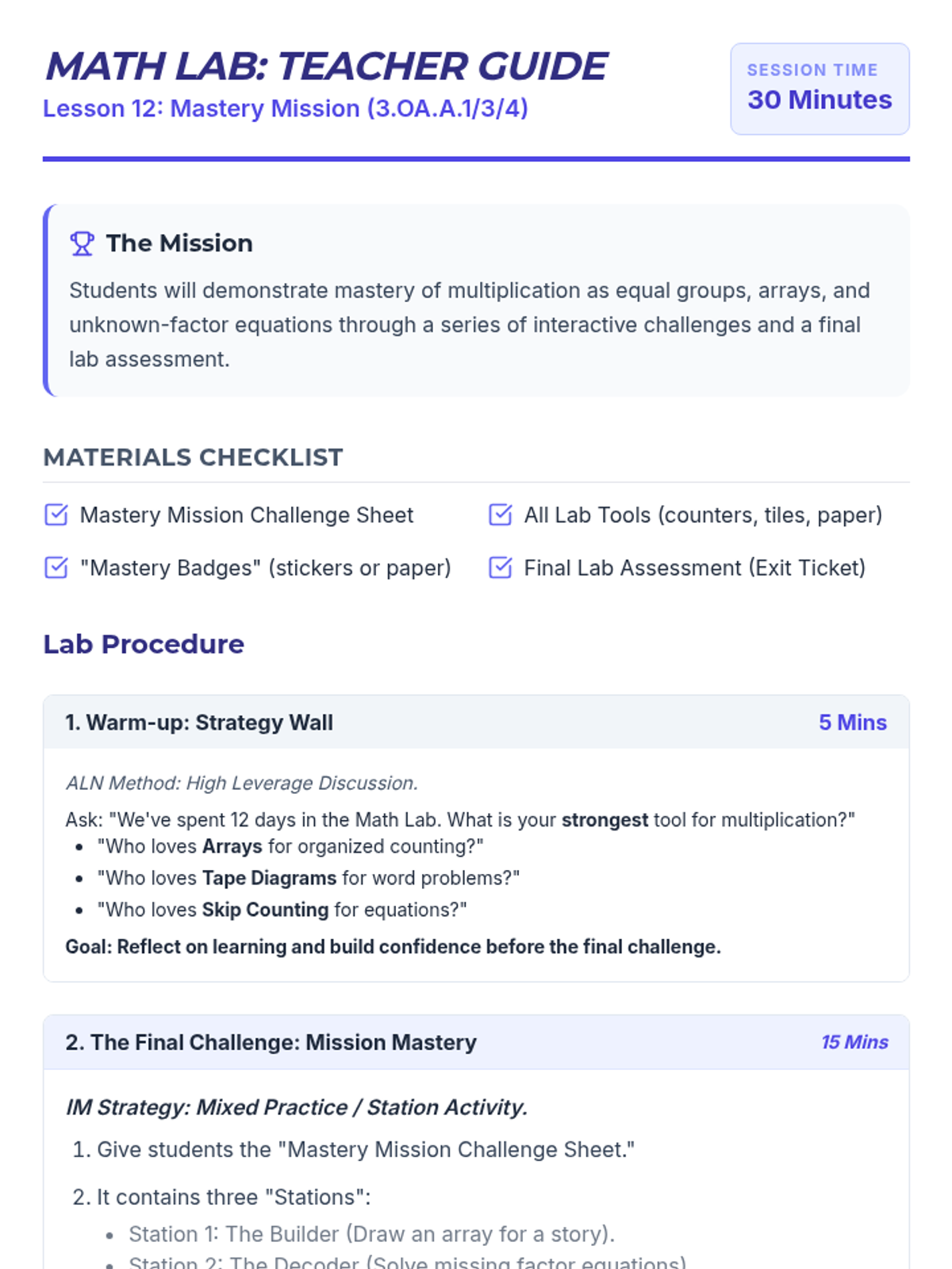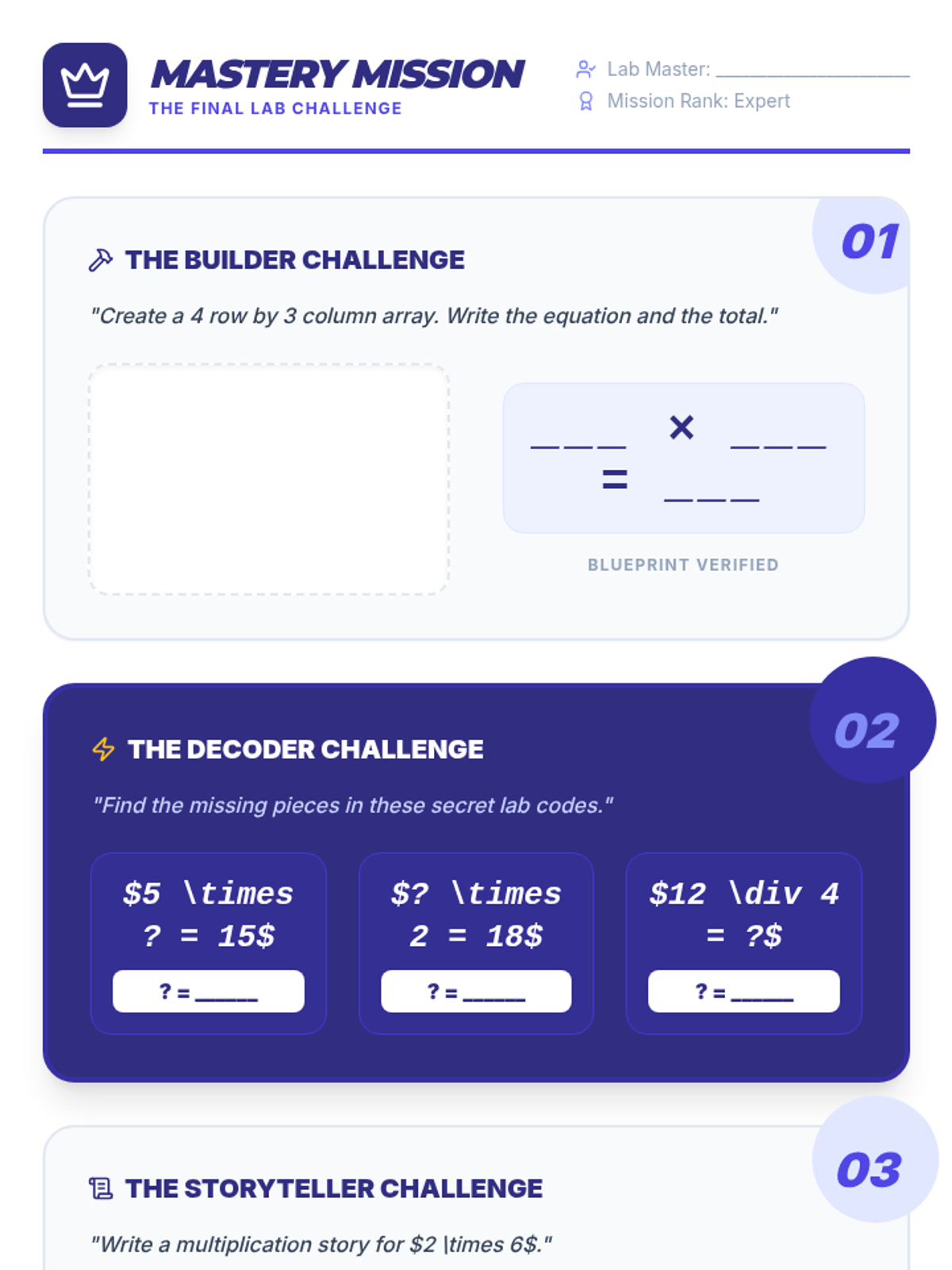 A culminating session where students demonstrate mastery of 3.OA standards through interactive challenges.