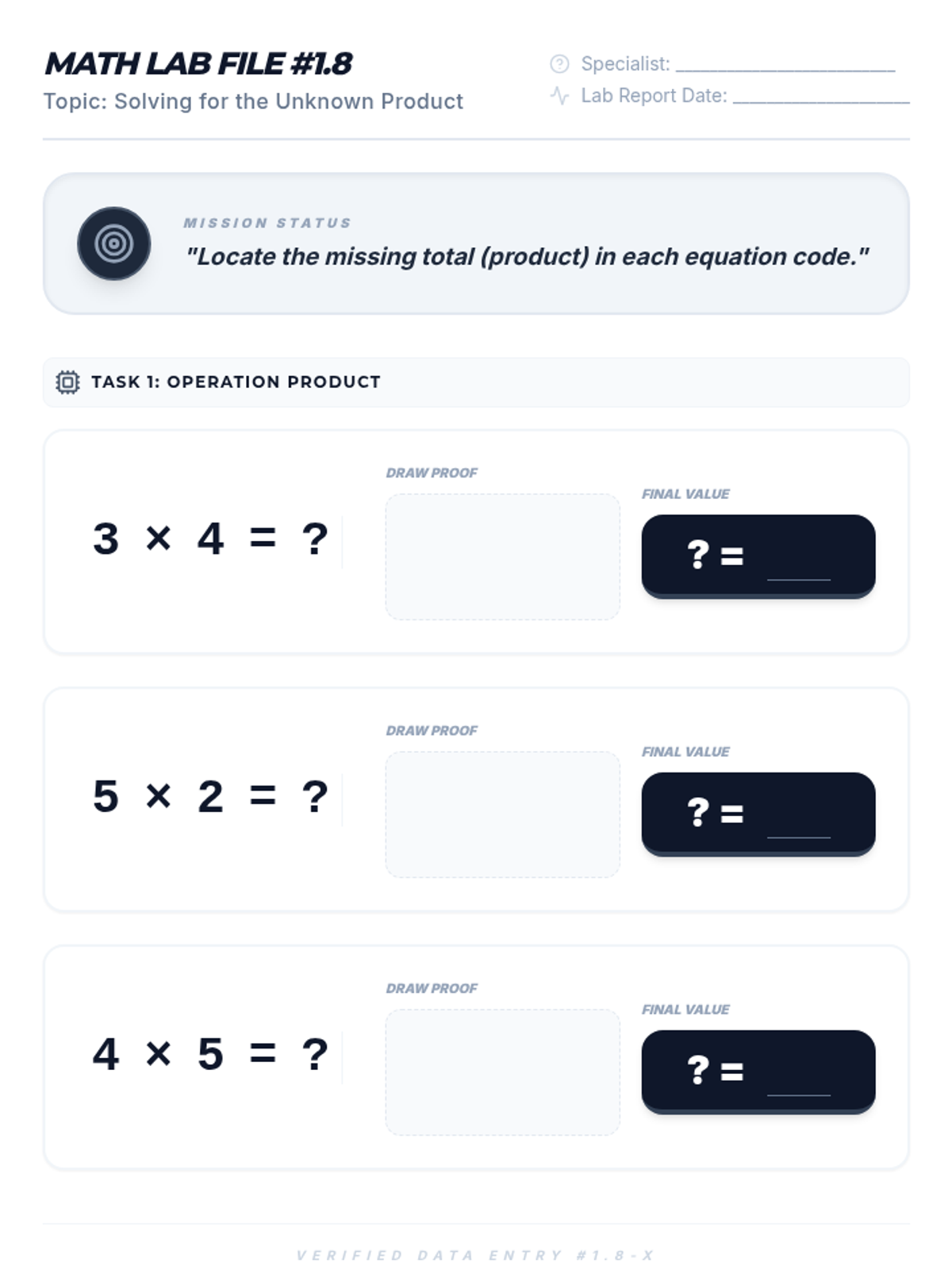 Understanding the meaning of '?' or '_' in multiplication equations and finding the product.