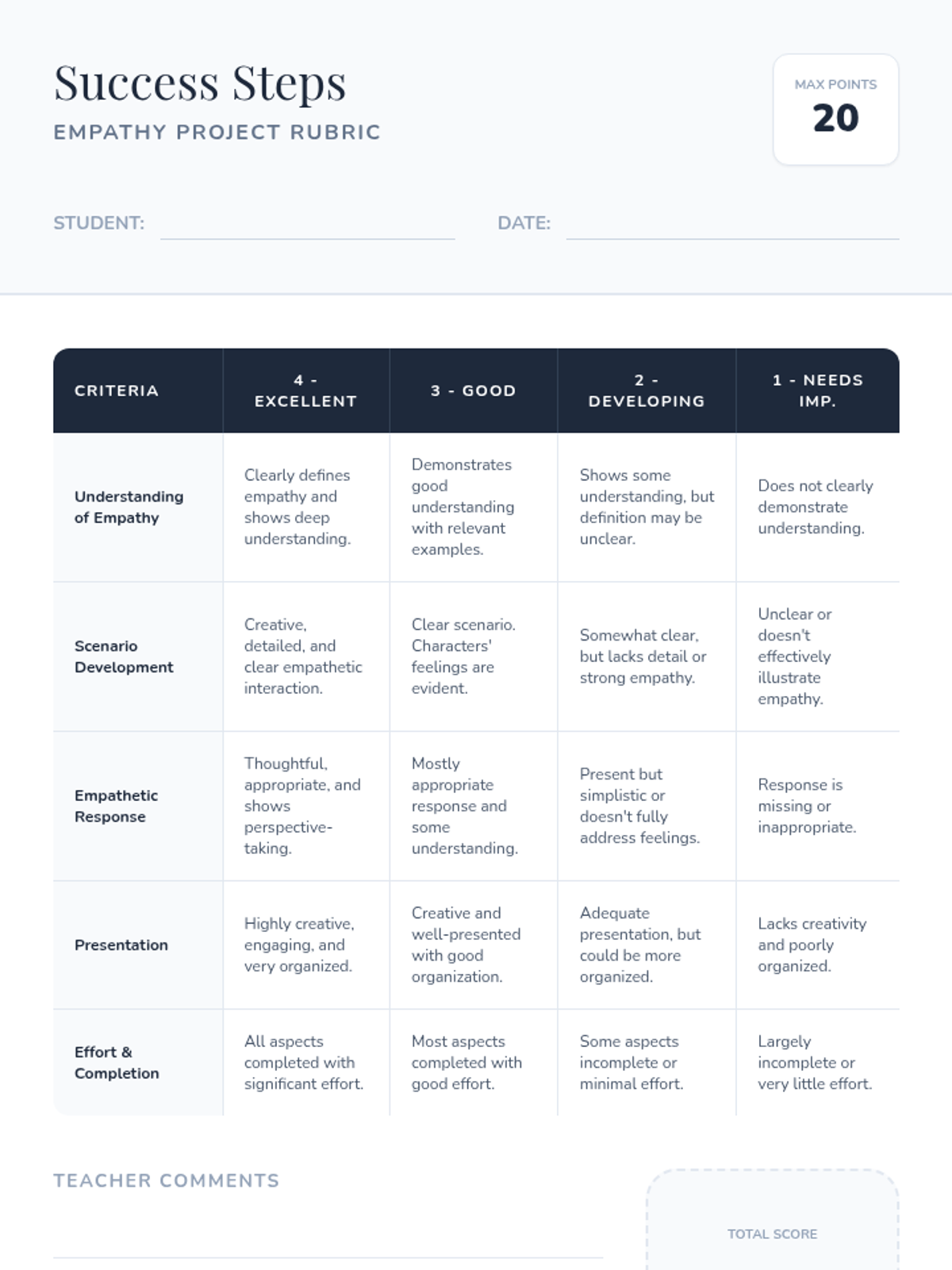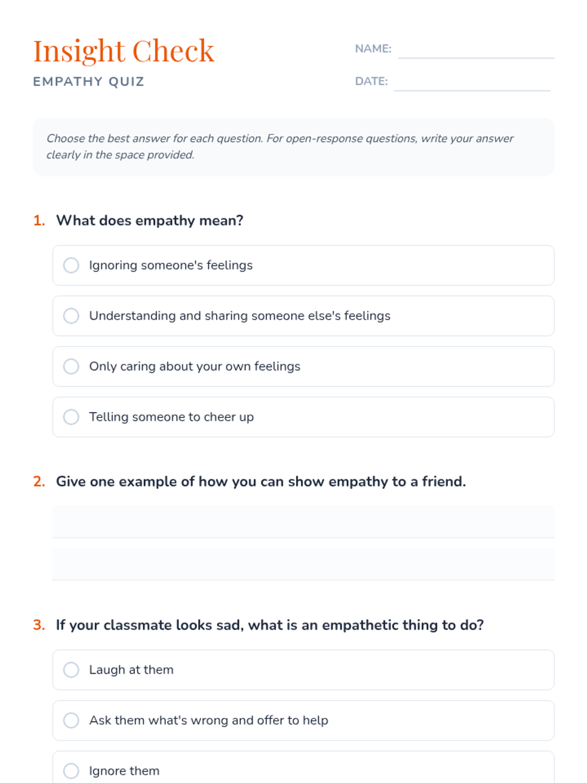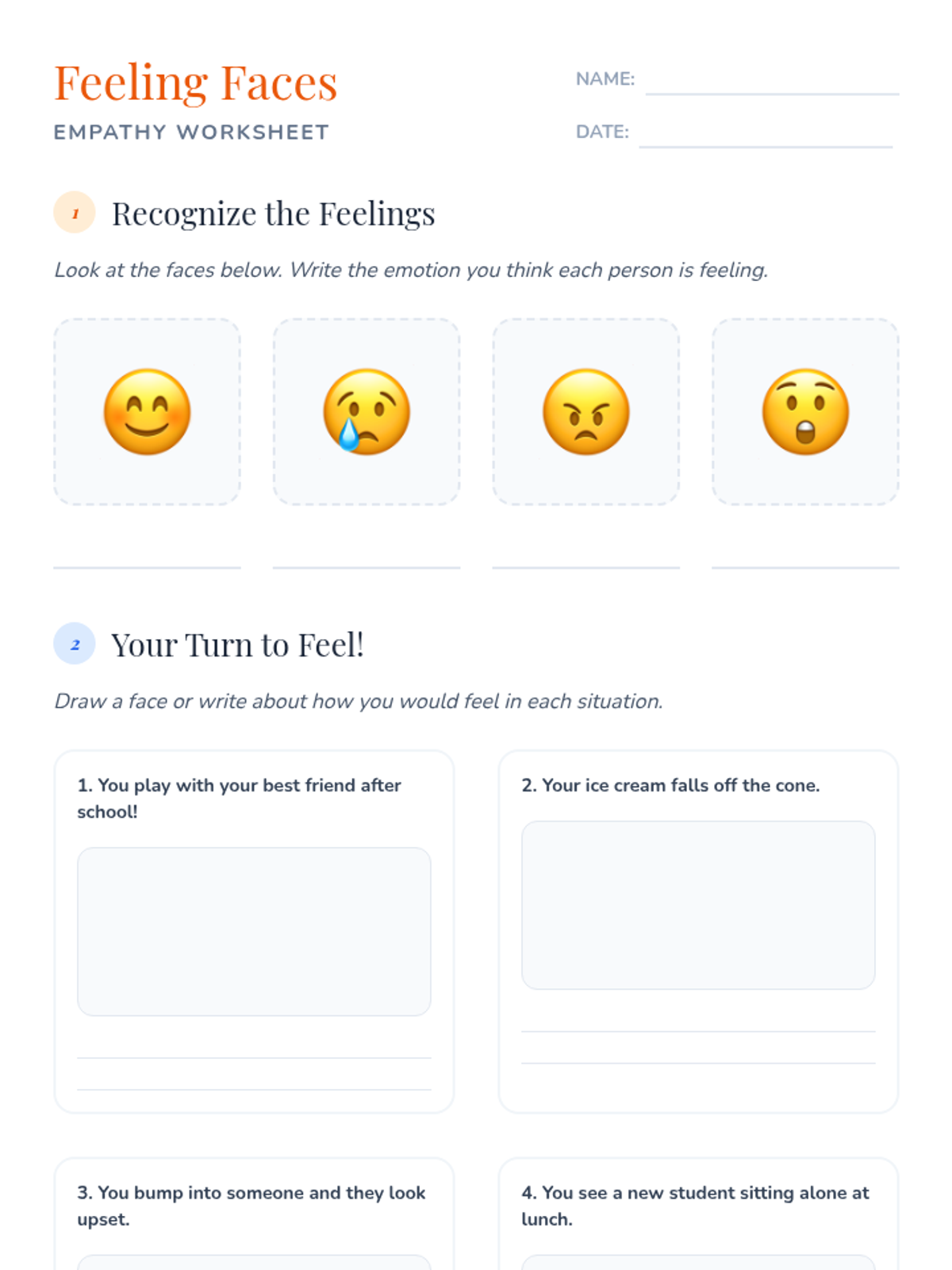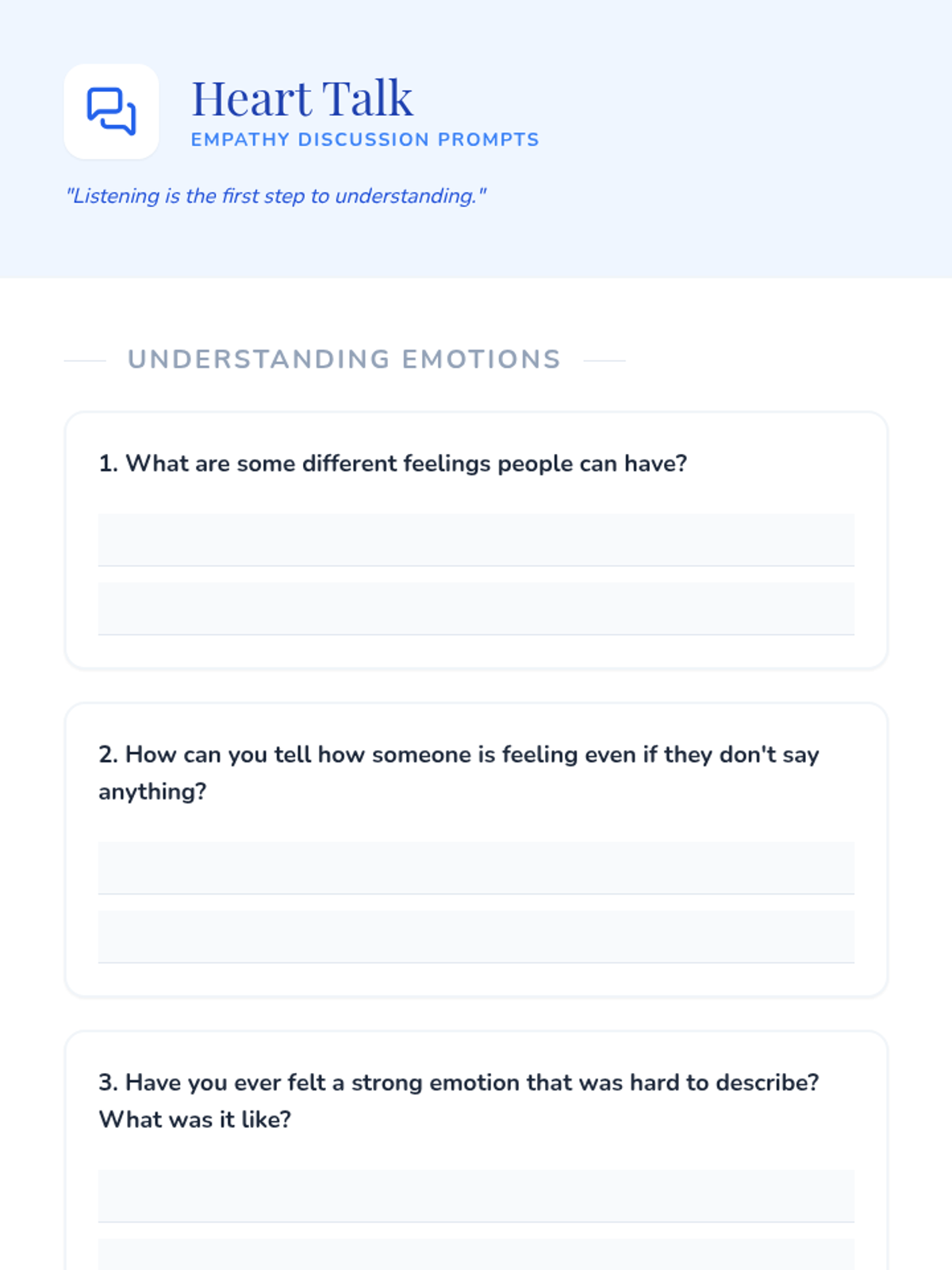 A one-hour lesson for K-12 students to develop empathy through perspective-taking, emotion recognition, and interactive activities. Students will learn to 'walk a mile' in others' shoes to build stronger, kinder relationships.