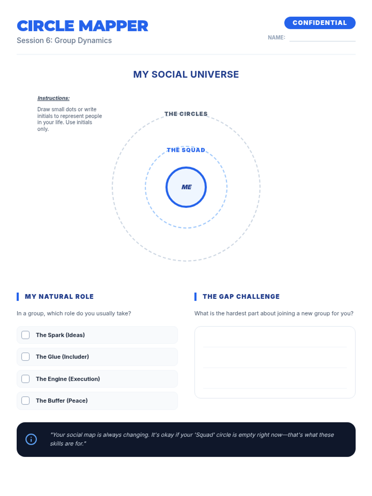 The opening session of the Social Skill Squad series. Students get to know each other through interactive games, reflect on their current friendship habits through a self-assessment, and preview the 8-week roadmap to social mastery.