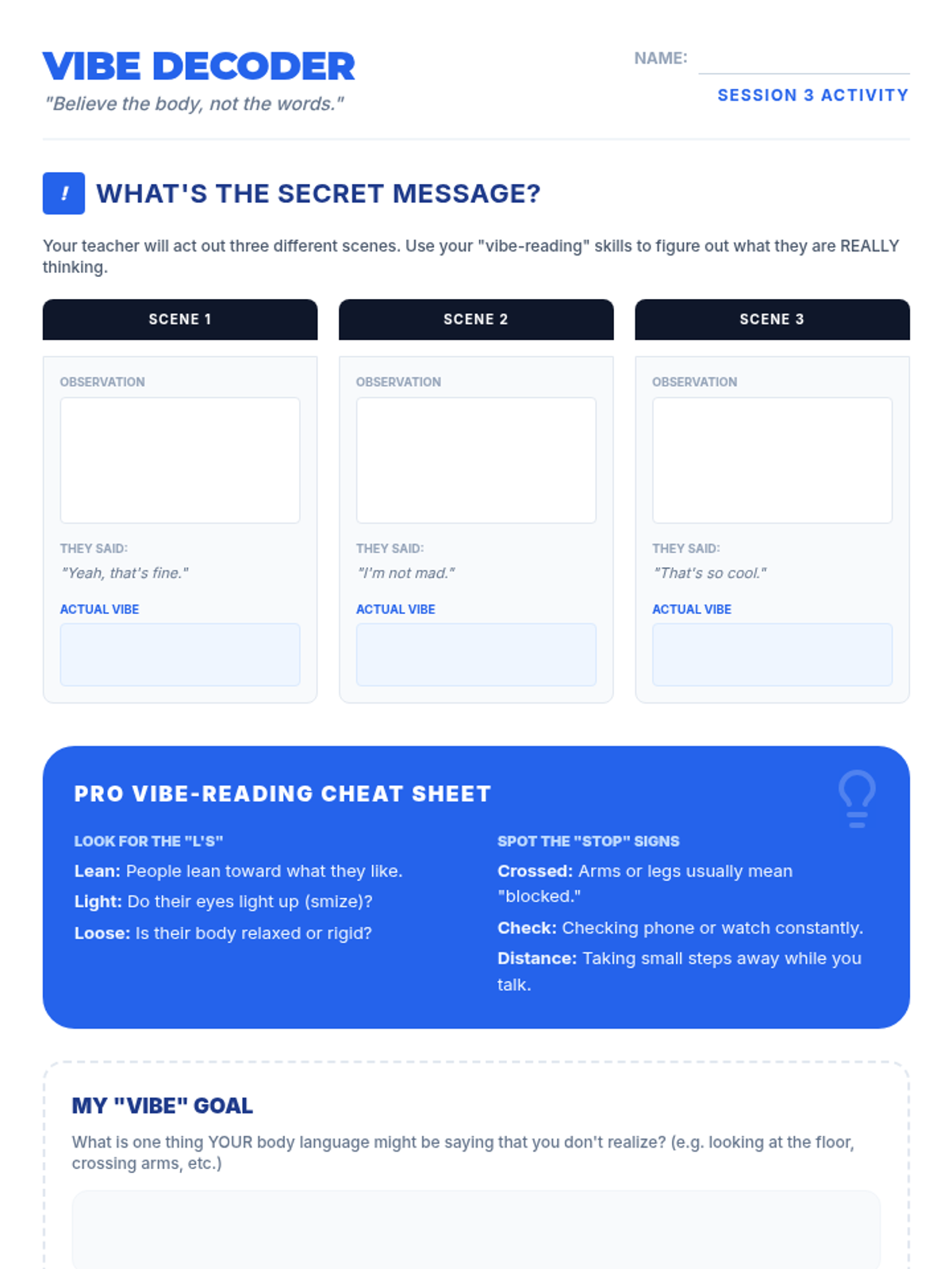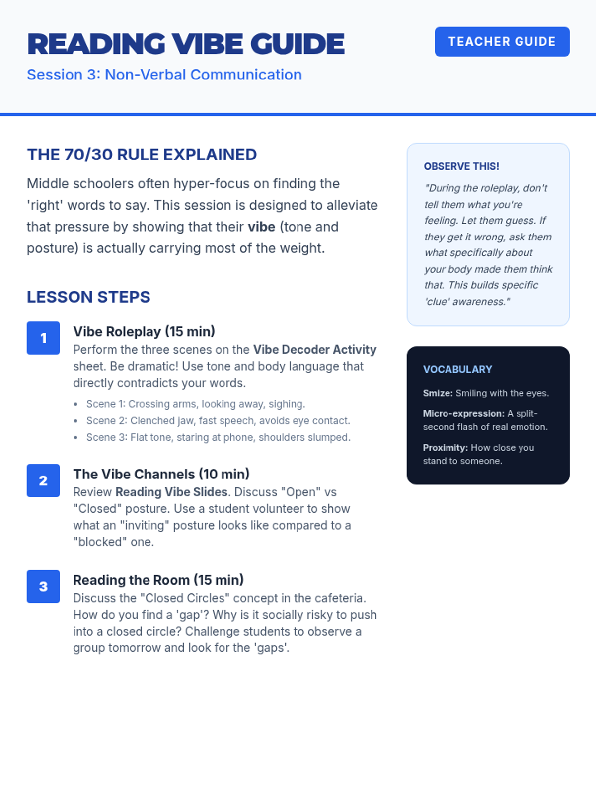 A deep dive into non-verbal communication, where students learn to decode body language, tone of voice, and facial expressions to better 'read the room'.