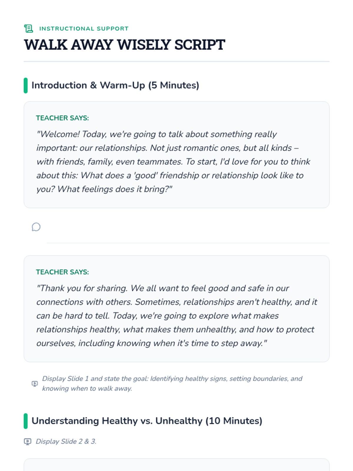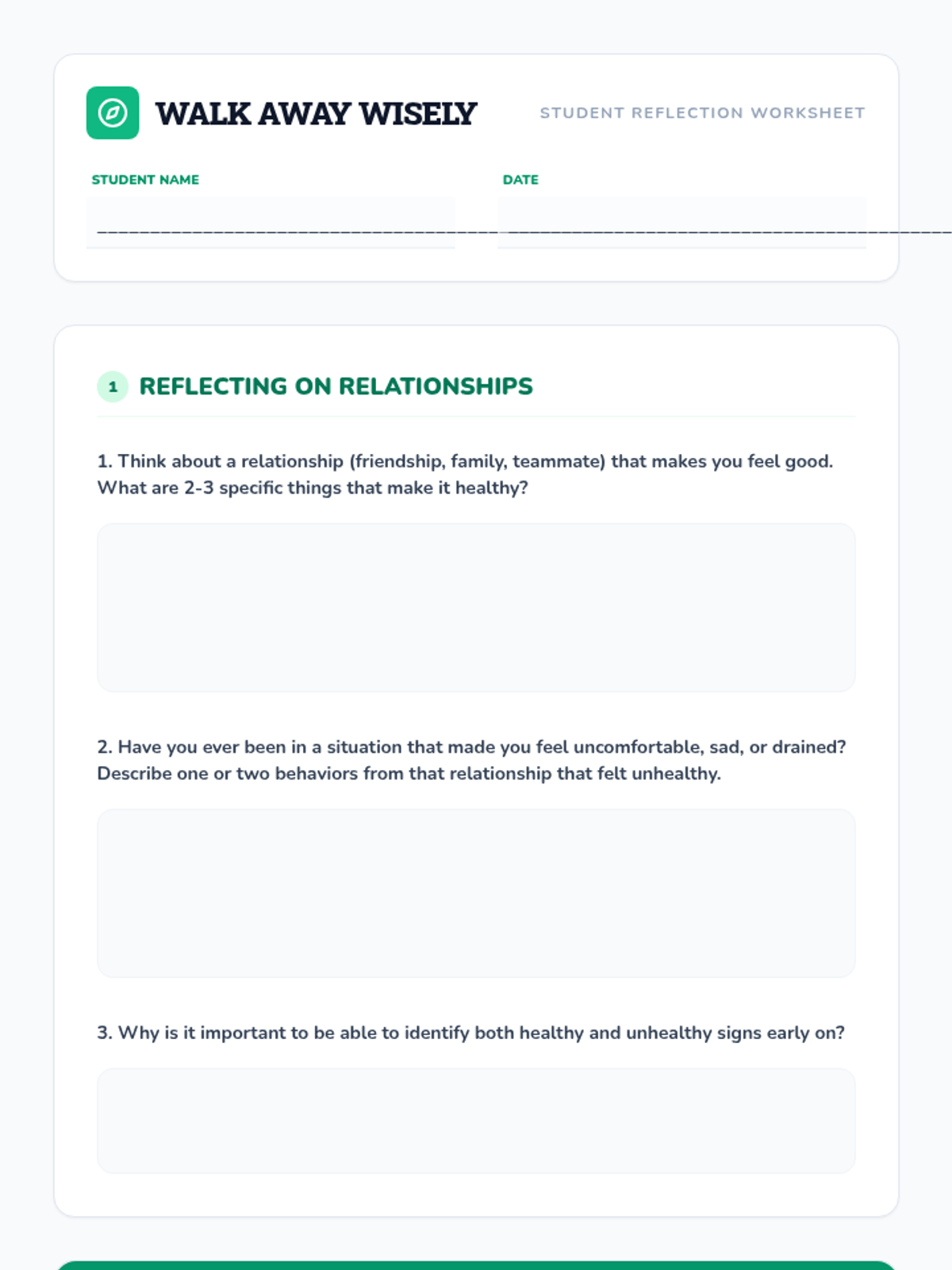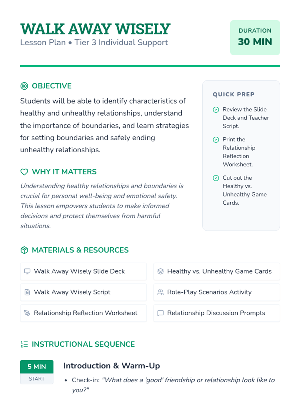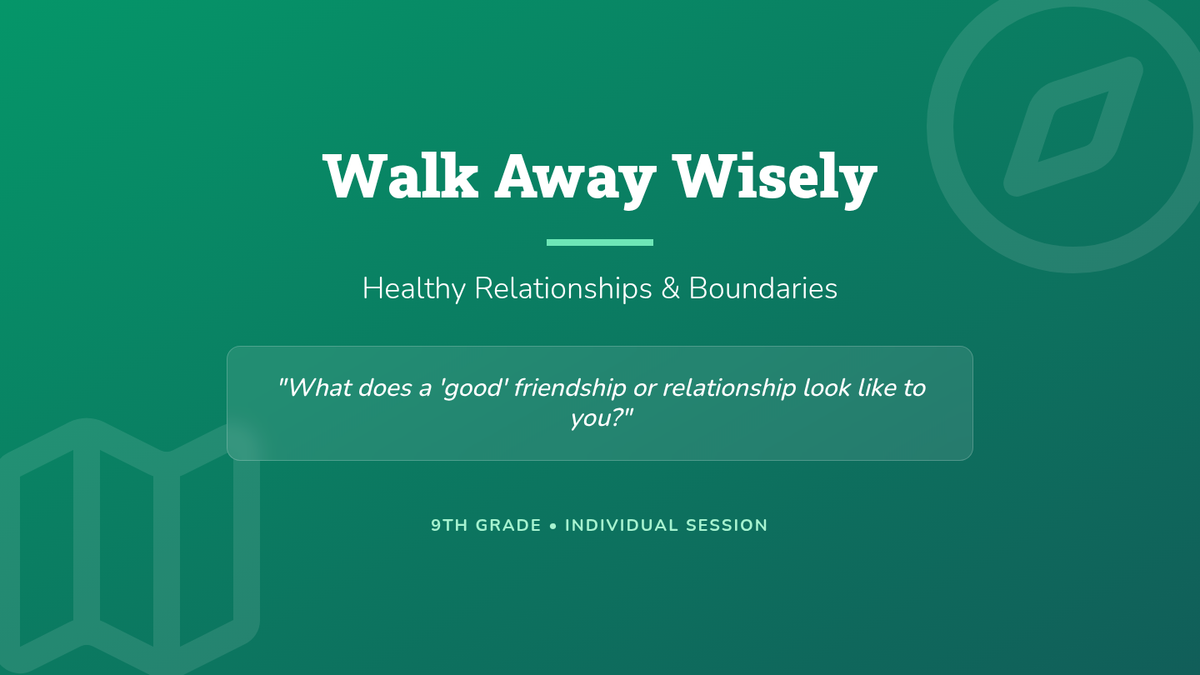 An individualized Tier 3 session for 9th-grade students focused on identifying healthy and unhealthy relationship dynamics, establishing personal boundaries, and safely navigating the decision to end harmful connections.