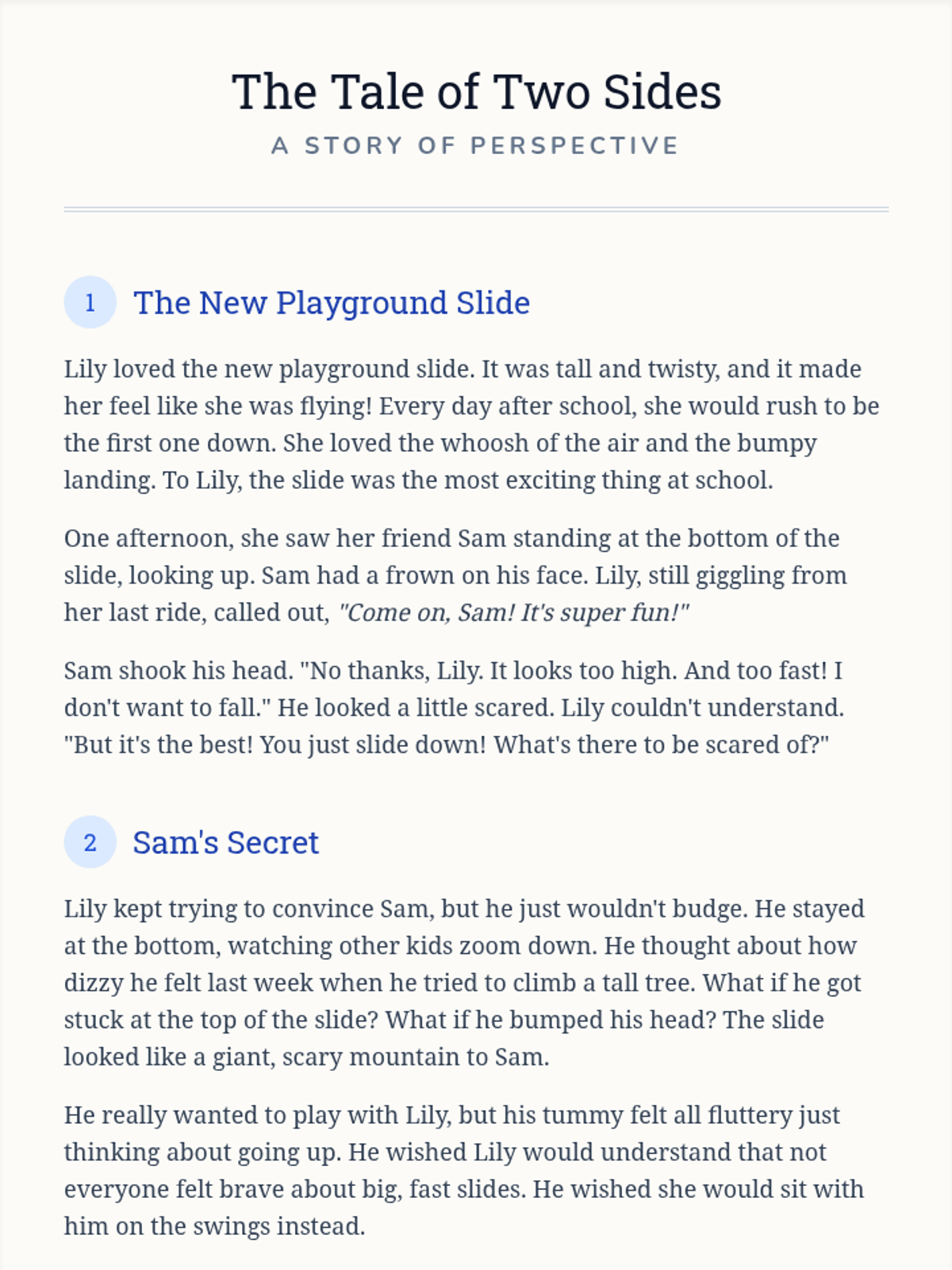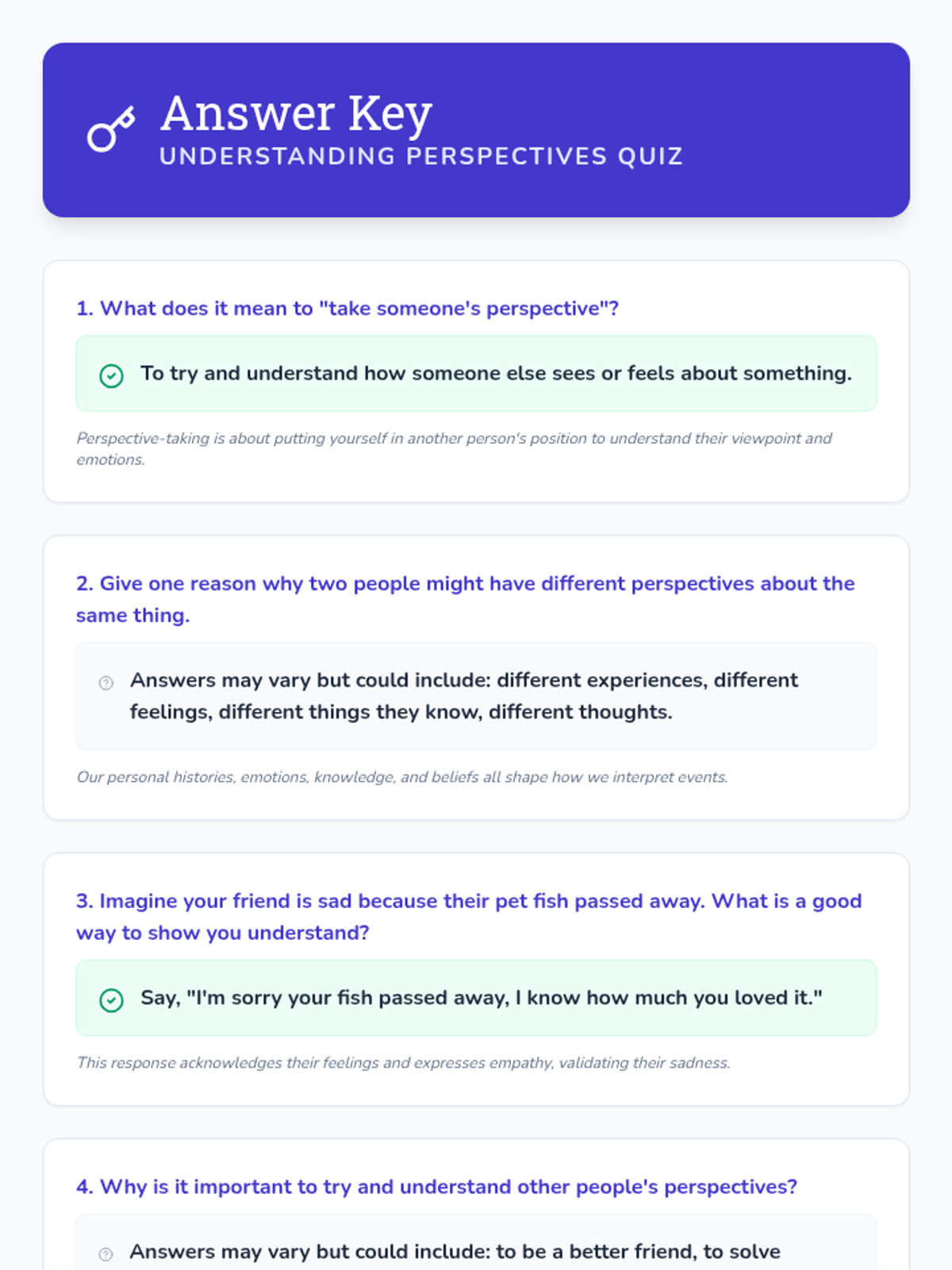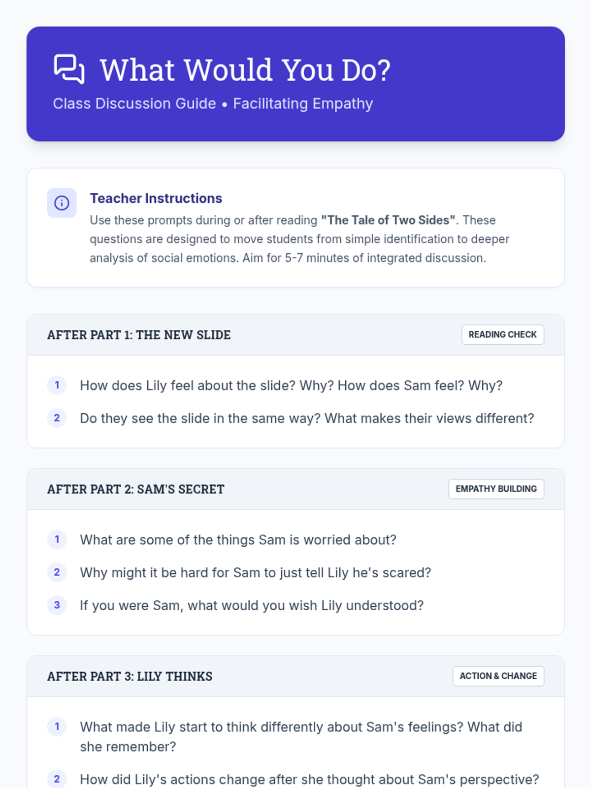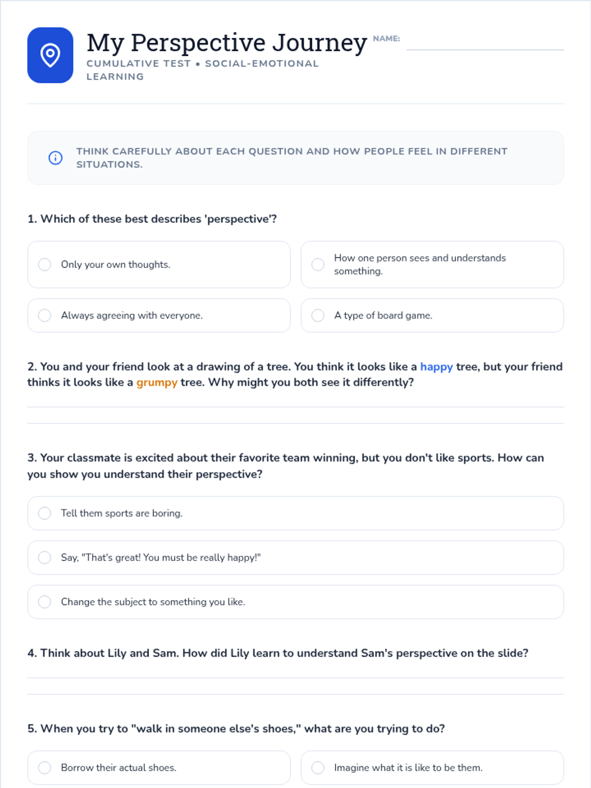 A comprehensive lesson for Primary 3 and 4 students to develop perspective-taking and empathy skills through interactive stories, role-play, and creative projects.